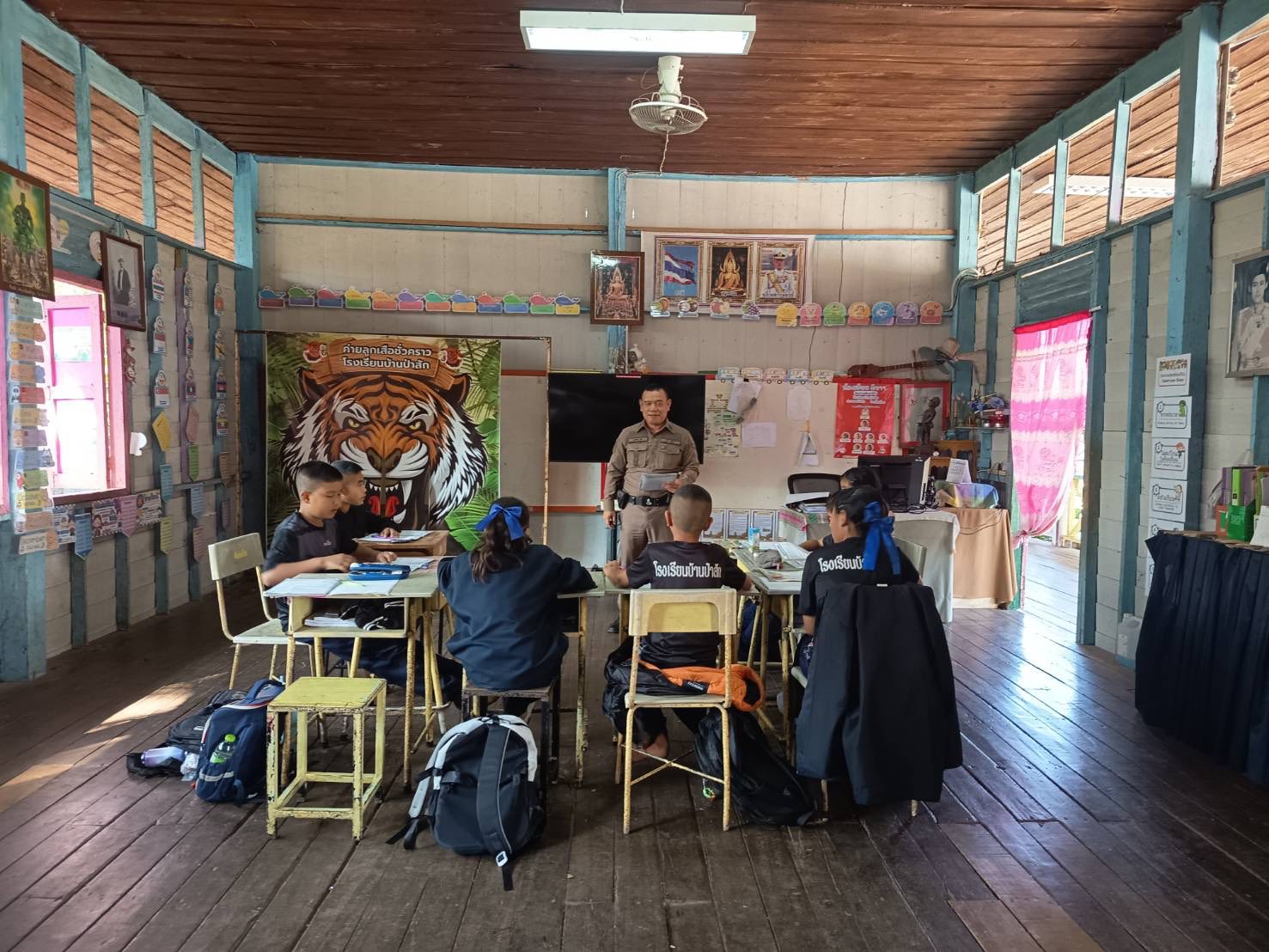สภ.แม่จริม ภ.จว.น่าน วันนี้ (19 ก.พ.69 เวลา 09.00 - 10.00 น.) โดยการอํานวยการของ พ.ต.อ.วสันติ์ หมั่นสลุง ผกก.สภ.แม่จริม, พ.ต.ท.ประทีป แปงเขียว รอง ผกก.ป.สภ.แม่จริม, พ.ต.ท.มนตรี ขอดเตชะ สวป.สภ.แม่จริม มอบหมายให้ ร.ต.อ.พงศ์พันธุ์ มีสา รอง สวป.สภ.แม่จริม ครูตำรวจแดร์ เข้าทำการสอนตามโครงการศึกษาเพื่อต่อต้านการใช้ยาเสพติดในเด็กนักเรียน ณ โรงเรียนบ้านป่าสัก ได้รับความร่วมมือจากทางโรงเรียนเป็นอย่างดี