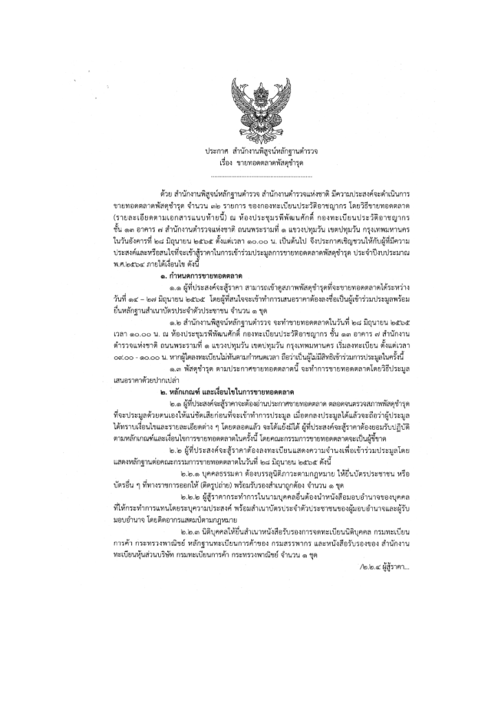กองทะเบียนประวัติอาชญากร ประกาศขายทอดตลาดพัสดุของทางราชการ
