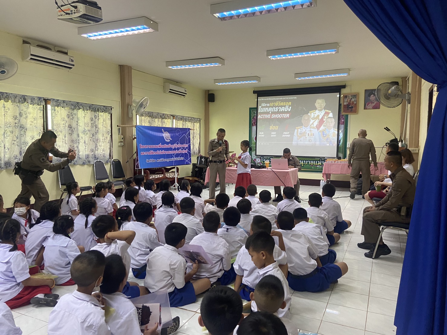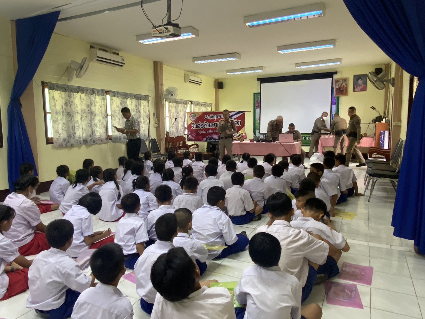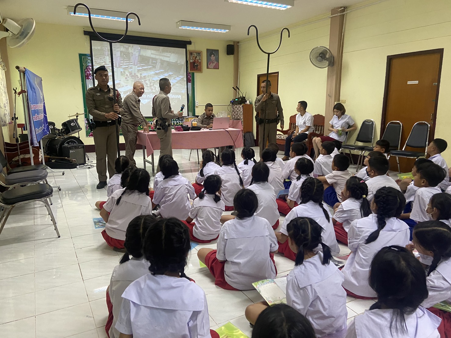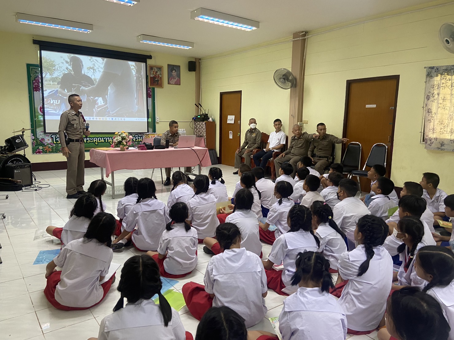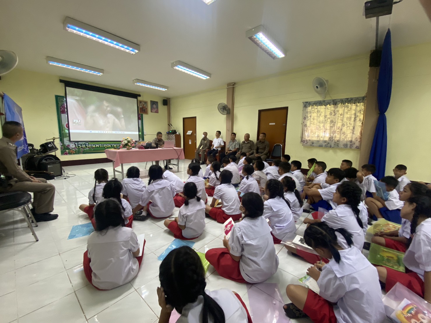 สภ.แม่จริม ภ.จว.น่าน วันนี้ (10 ก.ค.66) เวลา 10.00 - 12.00 น. โดยการอำนวยการของ พ.ต.อ.ปรีชา เนตรประชา ผกก.สภ.แม่จริม มอบหมายให้ พ.ต.ท.บุญมาก กันบุญ สวป.สภ.แม่จริม หัวหน้าชุดปฎิบัติการชุมชนและมวลชนสัมพันธ์ พร้อมด้วย ร.ต.อ.วิชาญ ชินายศ รอง สวป.สภ.แม่จริม , ร.ต.อ.พงศ์พันธุ์ มีสา รอง สวป.สภ.แม่จริม (ร้อยเวร 20) พร้อมด้วย ครูตำรวจแดร์ , เจ้าหน้าที่ตำรวจจราจร , สายตรวจ และชุดปฎิบัติการชุมชนและมวลชนสัมพันธ์ ร่วมกับผู้อำนวยการโรงเรียนพระคุณานุบาล พร้อมด้วยคณะครูโรงเรียนพระคุณานุบาล จัดกิจกรรมโครงการอบรมให้ความรู้เพื่อเสริมสร้างภูมิคุ้มกันทางสังคมและเทคโนโลยีสารสนเทศอย่างสร้างสรรค์ แก่เด็กนักเรียน ณ โรงเรียนพระคุณานุบาล