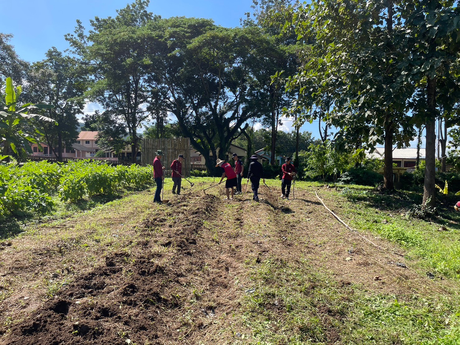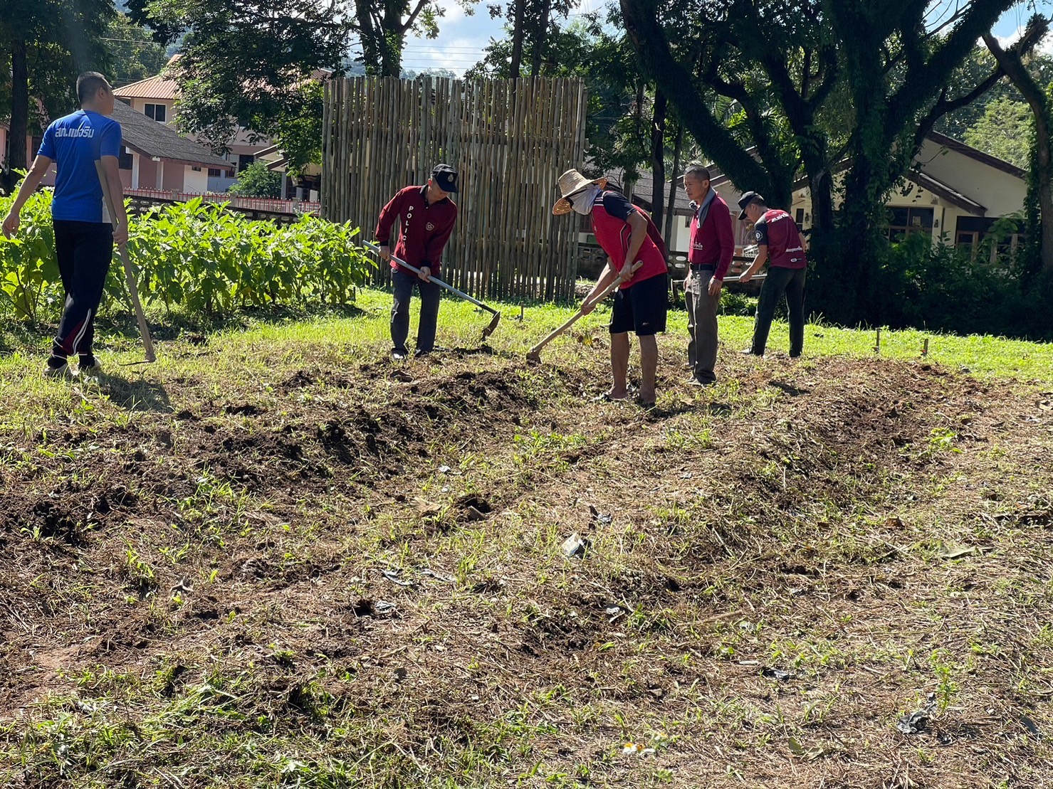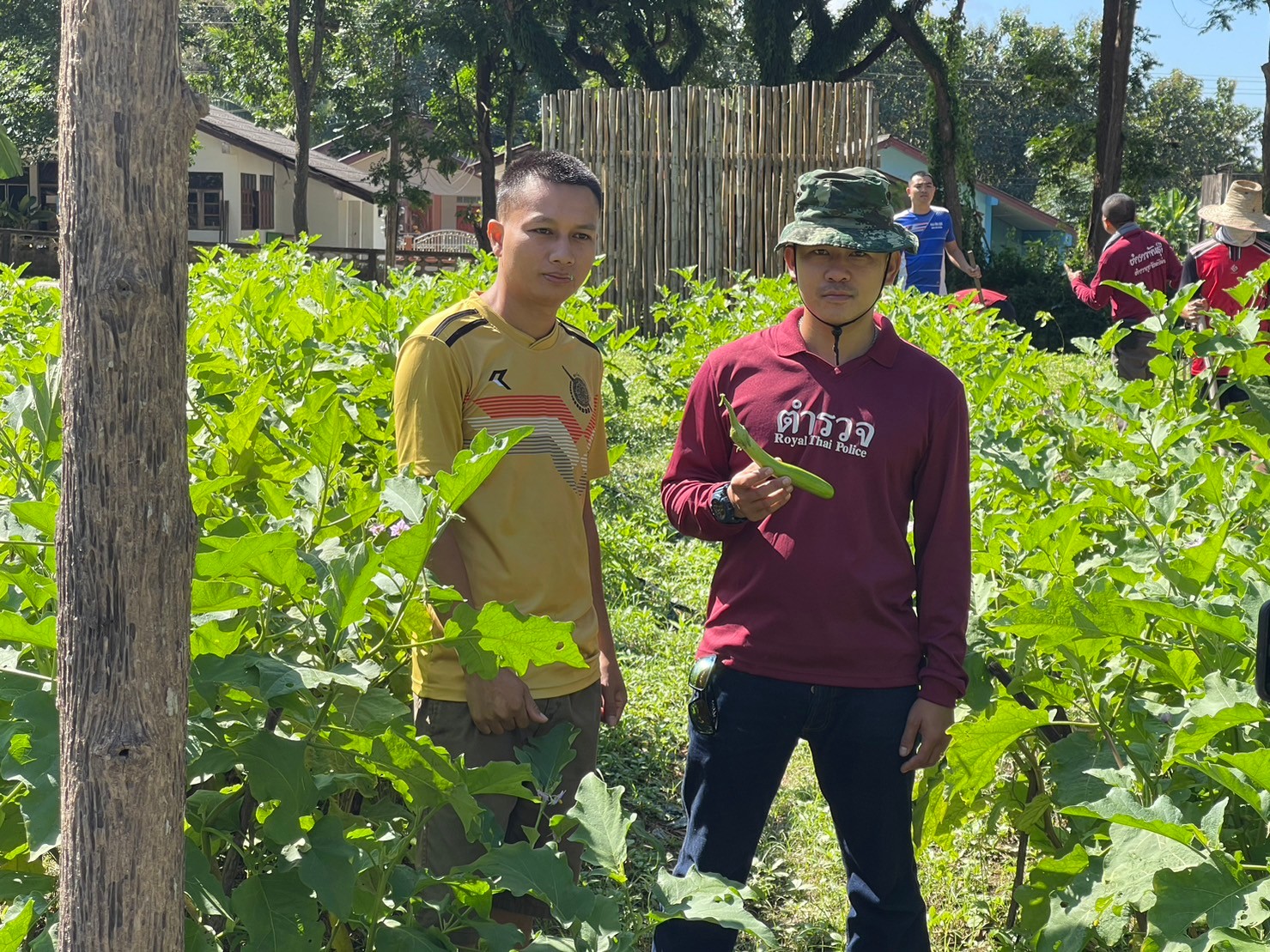 สภ.แม่จริม ภ.จว.น่าน วันนี้ (26 ต.ค.2566) เวลา 08.30 น. พ.ต.อ.ปรีชา เนตรประชา ผกก.สภ.แม่จริม พร้อมด้วย พ.ต.ท.บุญมาก กันบุญ สวป.สภ.แม่จริม , ร.ต.อ.วิชาญ ชินายศ รอง สวป.สภ.แม่จริม นำข้าราชการตำรวจในสังกัด ร่วมกันขับเคลื่อนโครงการตำรวจพันธุ์ดี "บ้านนี้มีรัก ปลูกผักกินเอง" ปลูกต้นมะเขือเจ้าพระยาและมะเขือม่วง บริเวณสวนข้างที่ทำการสถานีตำรวจ เพื่อให้ข้าราชการตำรวจสามารถเพาะปลูกพืชผักสวนครัว พร้อมนำผลผลิตกลับไปบริโภคภายในครัวเรือน ตามแนวพระราชดำริของสมเด็จพระกนิษฐาธิราชเจ้า กรมสมเด็จพระเทพรัตนราชสุดาฯสยามบรมราชกุมารี