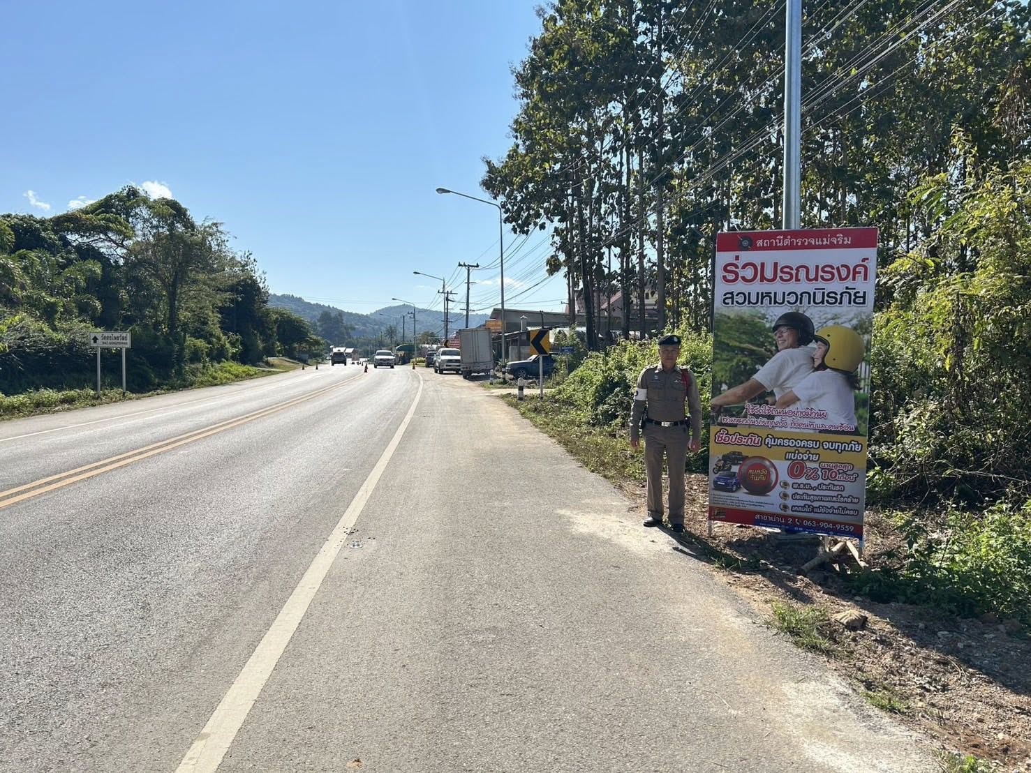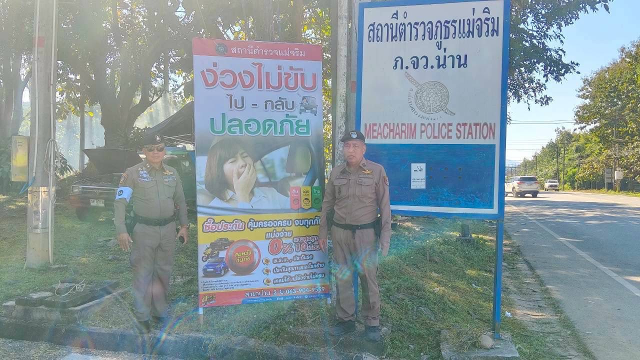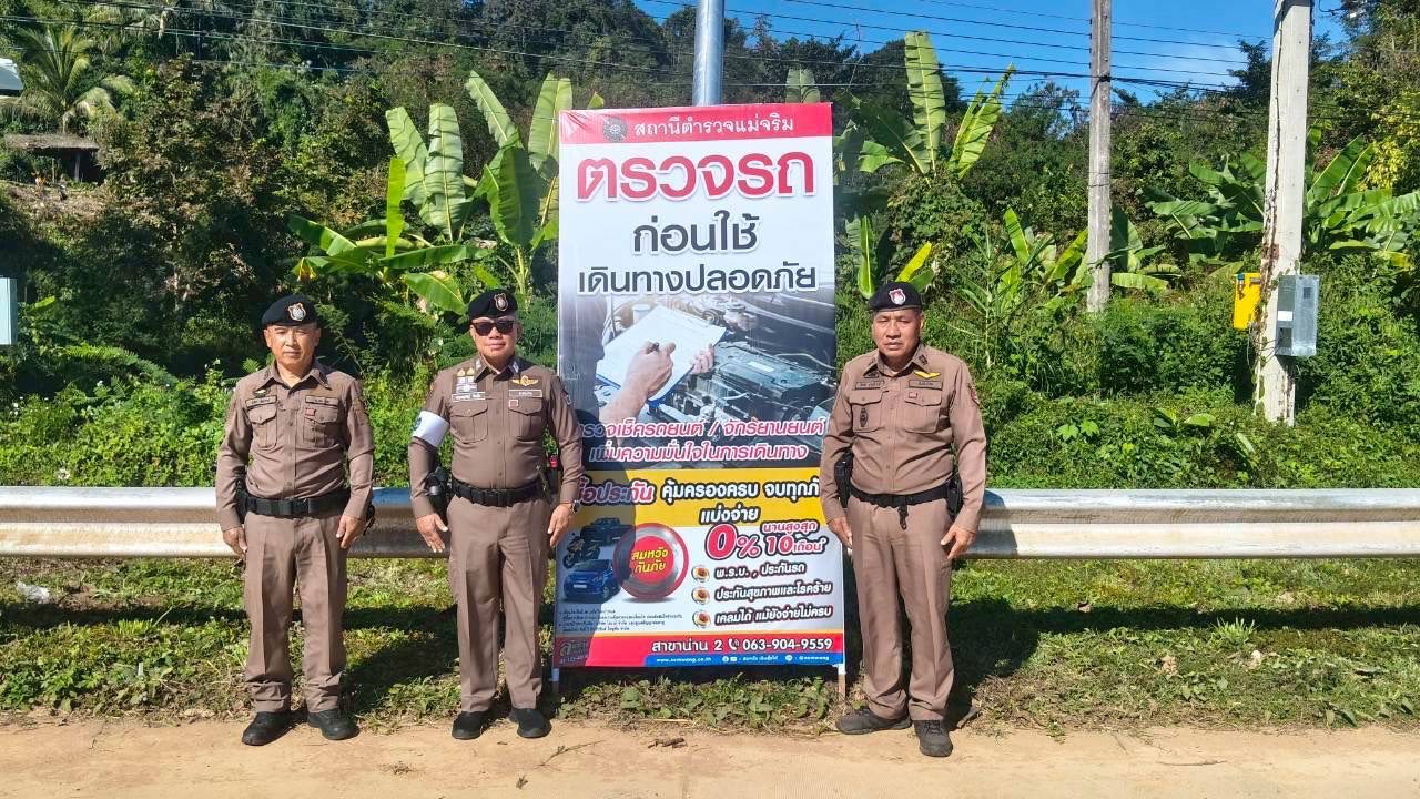 สภ.แม่จริม ภ.จว.น่าน วันนี้ (30 ธ.ค.68 เวลา 09.30 น.) โดยการอำนวยการของ พ.ต.อ.วสันติ์ หมั่นสลุง ผกก.สภ.แม่จริม, พ.ต.ท.ประทีป แปงเขียว รอง ผกก.ป.สภ.แม่จริม, พ.ต.ท.มนตรี ขอดเตชะ สวป.สภ.แม่จริม มอบหมายให้ ร.ต.อ.ชิดชัย ปานต๊ะระษี รอง สวป.สภ.แม่จริม (ร้อยเวร 20) พร้อมด้วยชุดสายตรวจรถยนต์ ชุดจราจร และชุดจิตอาสา ได้ร่วมติดตั้งป้ายประชาสัมพันธ์ ป้ายเตือน บริเวณทางร่วมทางแยก เขตชุมชน ทางโค้ง จุดเสี่ยงจุดอันตรายที่จะเกิดอุบัติเหตุ เพื่อป้องกันและลดการเกิดอุบัติเหตุทางถนน ห้วงเทศกาลปีใหม่ พ.ศ.2569 ในเขตพื้นที่รับผิดชอบ