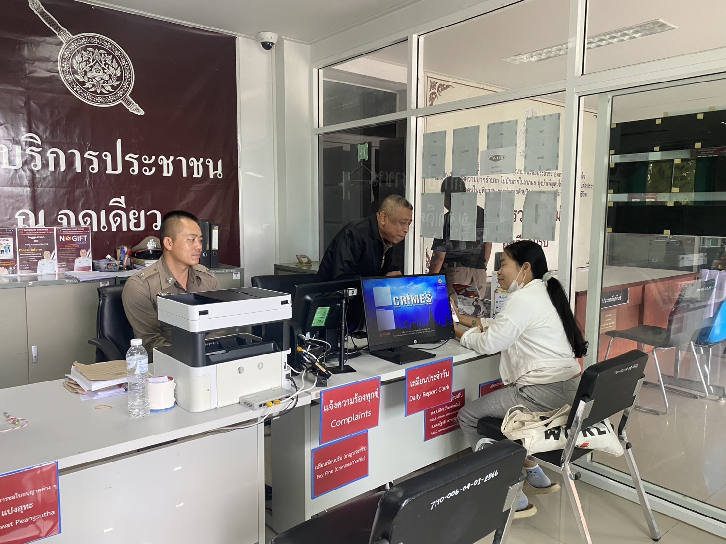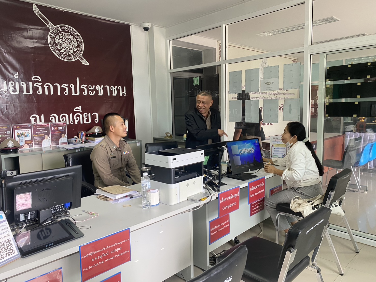 ร.ต.อ.อดุลย์ พรหมสกุลปัญญา รอง สว.(สอบสวน) สภ.แม่จริม ให้บริการประชาชนแจ้งความร้องทุกข์ ที่สถานีตำรวจ