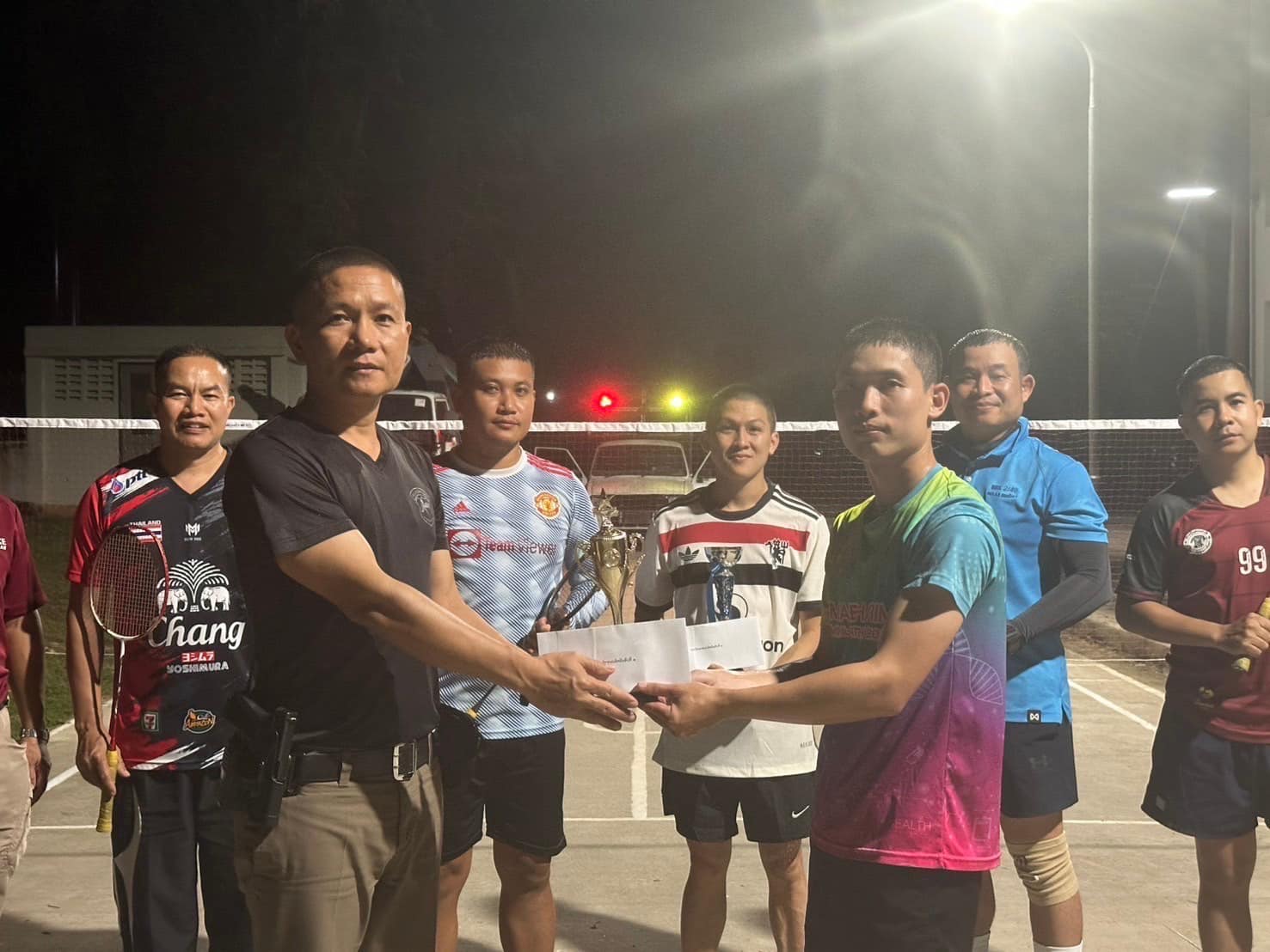 สภ.แม่จริม ภ.จว.น่าน วันนี้ (4 ธ.ค.67) เวลา 14.30 น. โดยการอำนวยการของ พ.ต.อ.วสันติ์ หมั่นสลุง ผกก.สภ.แม่จริม ได้มอบหมายให้ พ.ต.ท.พรเทพ ป่าหวาย รรท.ฯ รอง ผกก.(สอบสวน) สภ.แม่จริม, พ.ต.ท.วีฬเวชน์ ร้านชิตวงศ์ รอง ผกก.ป.สภ.แม่จริม, พ.ต.ท.มนตรี ขอดเตชะ สวป.สภ.แม่จริม, พ.ต.ท.ประทีป ต๊อดแก้ว สว.อก.สภ.แม่จริม จัดกิจกรรมการแข่งขันกีฬาแบดมินตัน (ชายเดี่ยว) เพื่อให้ข้าราชการตำรวจในสังกัดได้มีโอกาสพบปะสังสรรค์ แลกปลี่ยนประสบการณ์ สร้างความสัมพันธ์อันดีระหว่างหน่วยงานและสร้างความสามัคคีในหมู่คณะ ซึ่งจะช่วยส่งเสริมให้การประสานงานระหว่างหน่วยงานมีประสิทธิภาพมากยิ่งขึ้น ตลอดจนสนับสนุนให้บุคคลากรในหน่วยงานเห็นความสำคัญของการออกกำลังกาย เล่นกีฬา เพิ่มมากขึ้น เพื่อเสริมสร้างสุขภาพร่างกายให้แข็งแรง และมีคุณภาพชีวิตที่ดียิ่งขึ้น