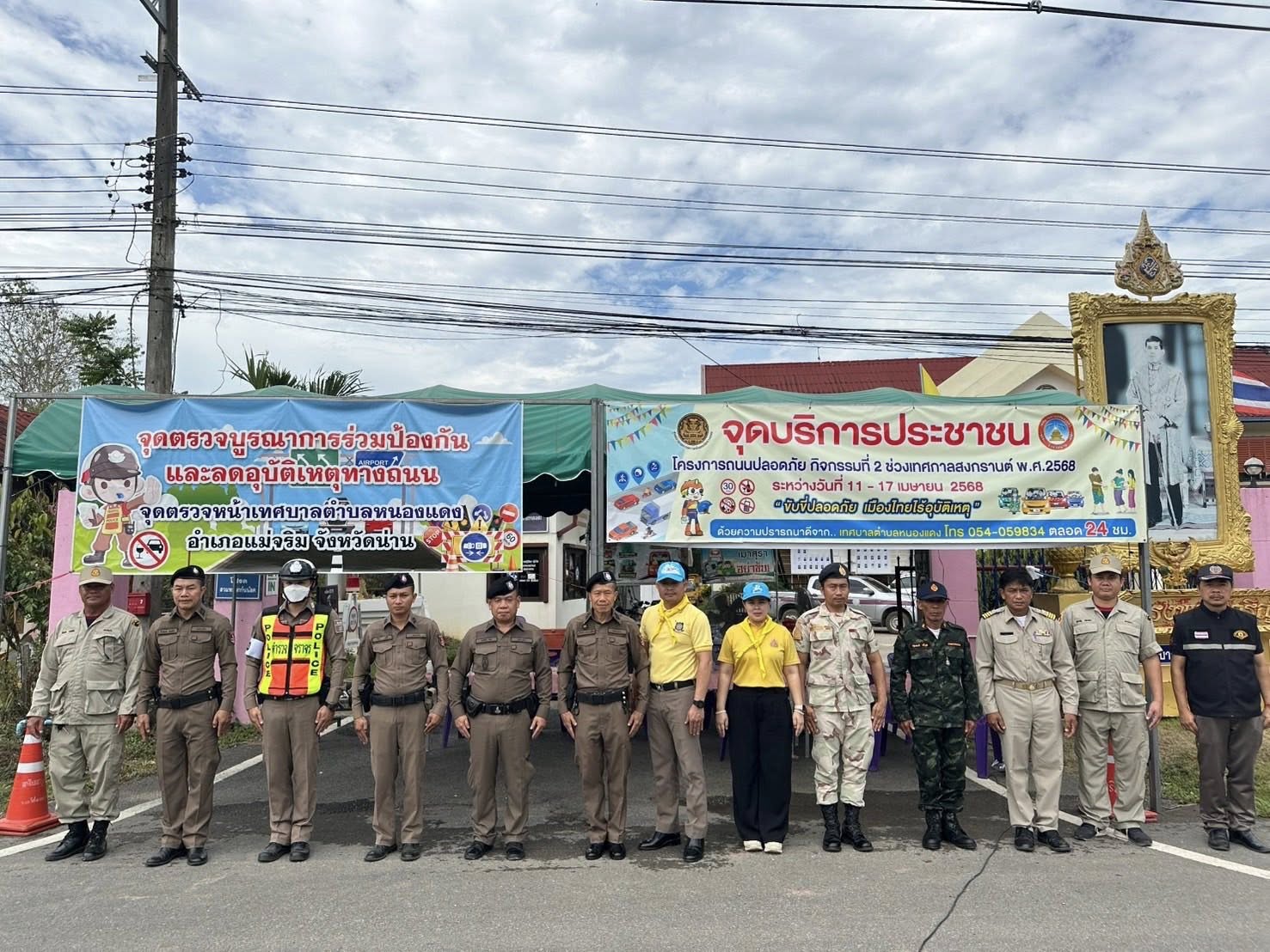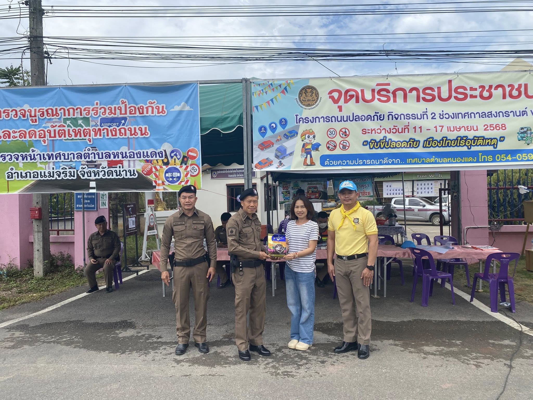 สภ.แม่จริม ภ.จว.น่าน วันนี้ (16 เม.ย.2568 เวลา 09.00 น.) โดยการอำนวยการของ พ.ต.อ.วสันต์ หมั่นสลุง ผกก.สภ.แม่จริม, พ.ต.ท.ธวัชชัย คำชื่น รอง ผกก.ป.สภ.นาหมื่น ช่วยราชการ สภ.แม่จริม, พ.ต.ท.มนตรี ขอดเตชะ สวป.สภ.สภ.แม่จริม มอบหมายให้ ร.ต.ท.ภูมิวิกรณ์ สอนนนท์ฐีกูล รอง สว.(ป.) สภ.แม่จริม พร้อมข้าราชการตำรวจจิตอาสา สภ.แม่จริม ร่วมทำกิจกรรมจิตอาสาช่วงเทศกาลสงกรานต์ 2568 กิจกรรมประชาสัมพันธ์ให้กับนักท่องเที่ยวที่เดินทางเข้ามาในพื้นที่ แจ้งช่องทางในการติดต่อขอความช่วยเหลือ/แจ้งเหตุหมายเลขโทรศัพท์ ๑๙๑ , ประชาสัมพันธ์ Line@191 , แจกแผ่นพับ , แนะนำการขับขี่ยานพาหนะให้ขับขี่ด้วยความระมัดระวัง , สวมหมวกกันน็อค 100% เมาไม่ขับ พร้อมกันนี้ได้ดำเนินการโครงการจิตอาสาจราจร รณรงค์การขับขี่ปลอดภัย สวมหมวกนิรภัย เพื่อลดอุบัติเหตุจราจร โดยได้มีการอบรมให้ความรู้แก่ประชาชนที่ไม่สวมหมวกนิรภัย และได้มอบหมวกนิรภัยให้แก่ผู้รับการอบรม ตลอดจนให้ขยายผลการรณรงค์ให้คนในครอบครัว บุคคลใกล้ชิด คนในชุมชนได้ตระหนักถึงความสำคัญของหมวกนิรภัยต่อไป ณ จุดตรวจบูรณาการร่วมหน้าเทศบาลตำบลหนองแดง ต.หนองแดง อ.แม่จริม จว.น่าน