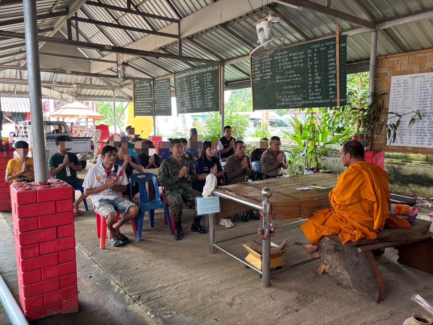 สภ.แม่จริม ภ.จว.น่าน วันนี้ ( 4 ก.ค.2568 เวลา 09.00 น. ) โดยการอำนวยการของ พ.ต.อ.วสันติ์ หมั่นสลุง ผกก.สภ.แม่จริม, พ.ต.ท.ธวัชชัย คำชื่น รอง ผกก.ป.สภ.นาหมื่น ช่วยราชการ สภ.แม่จริม มอบหมายให้ พ.ต.ท.มนตรี ขอดเตชะ สวป.สภ.แม่จริม หัวหน้าชุดชุมชนยั่งยืนฯ และ ร.ต.อ.พงศ์พันธุ์ มีสา รอง สวป.สภ.แม่จริม พร้อมด้วยชุดปฏิบัติการ ร่วมดำเนินโครงการตำบลยั่งยืนฯ ดังนี้ - ดำเนินการกิจกรรมบำบัด CBTx ตรวจปัสสาวะของผู้เข้าร่วมบำบัดตามโครงการ จำนวน 25 ราย เข้ารับการตรวจ 20 ราย - พบสารเสพติด (เป็นบวก) - ราย - ไม่พบสารเสพติด (เป็นลบ) 20 ราย - ขาดตรวจ 5 ราย ในส่วนผู้ที่ขาดหรือไม่มาร่วมโครงการฯ คณะทำงานชุมชนยั่งยืนของ สภ.แม่จริม จะได้ติดตามตัวเพื่อเข้ารับการบำบัดต่อไป - ดำเนินกิจกรรมศาสนาบำบัด โดยได้นำผู้เข้ารับการบำบัด จำนวน 20 คนเข้าร่วมกิจกรรมโดยมีการทำบุญถวายสังฆทาน ฟังพระเทศน์ และให้หลักธรรมะ แนวคิดในการปฏิบัติตนเป็นคนดีของสังคม ณ วัดบ้านก้อ ต.แม่จริม อ.แม่จริม จ.น่าน