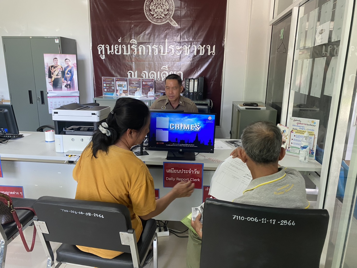 ด.ต.อนุวัฒน์ แปงสุทะ ผบ.หมู่ (ป.) สภ.แม่จริม ปฏิบัติหน้าที่เจ้าหน้าที่เสมียนประจำวันให้บริการประชาชนมาแจ้งความที่สถานีตำรวจ