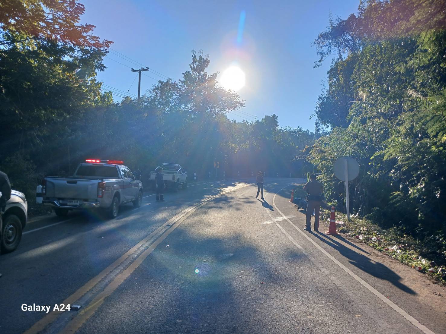ตรวจสถานที่เกิดเหตุ ว.40 รถจักรยานยนต์ชนท้ายรถยนต์ ถนนระหว่างบ้านนาเซีย - บ้านน้ำว้า ต.หมอเมือง อ.แม่จริม จ.น่าน มีผู้ได้รับบาดเจ็บเล็กน้อย