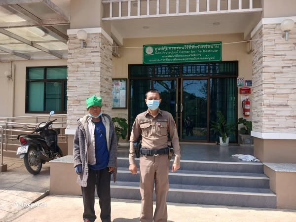 ร้อยเวร 20 พร้อมด้วยสายตรวจรถยนต์ ออกปฏิบัติหน้าที่ให้ความช่วยเหลือชายเร่ร่อน นำตัวส่งศูนย์คุ้มครองคนไร้ที่พึ่ง จังหวัดน่าน