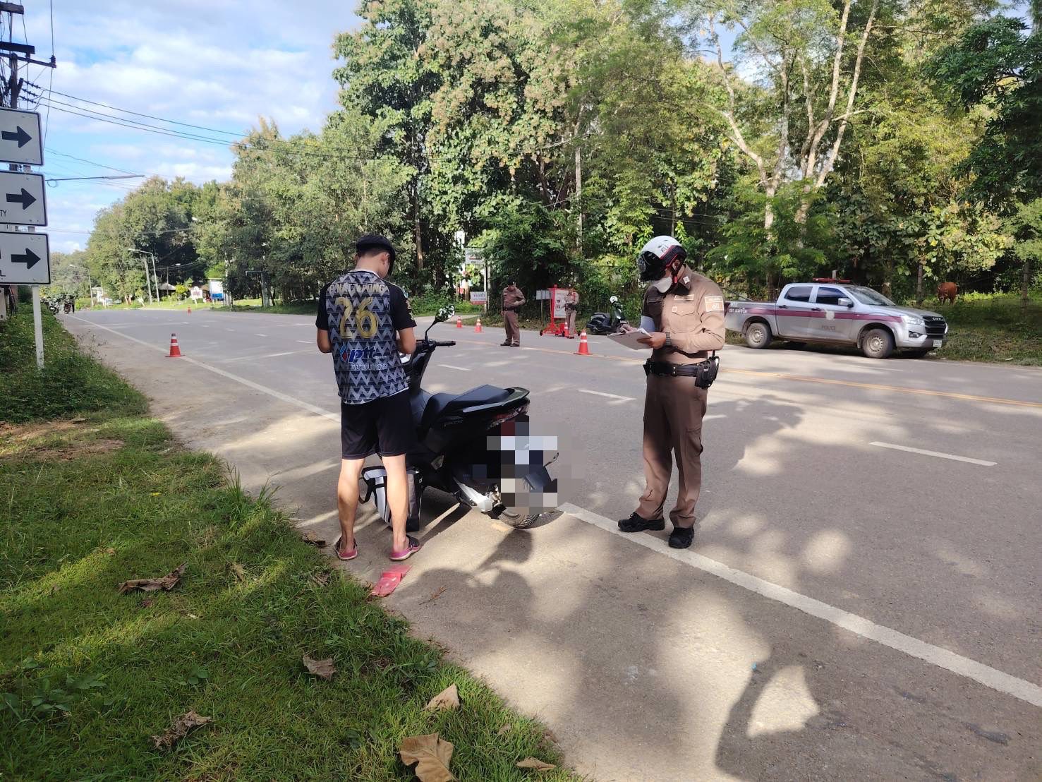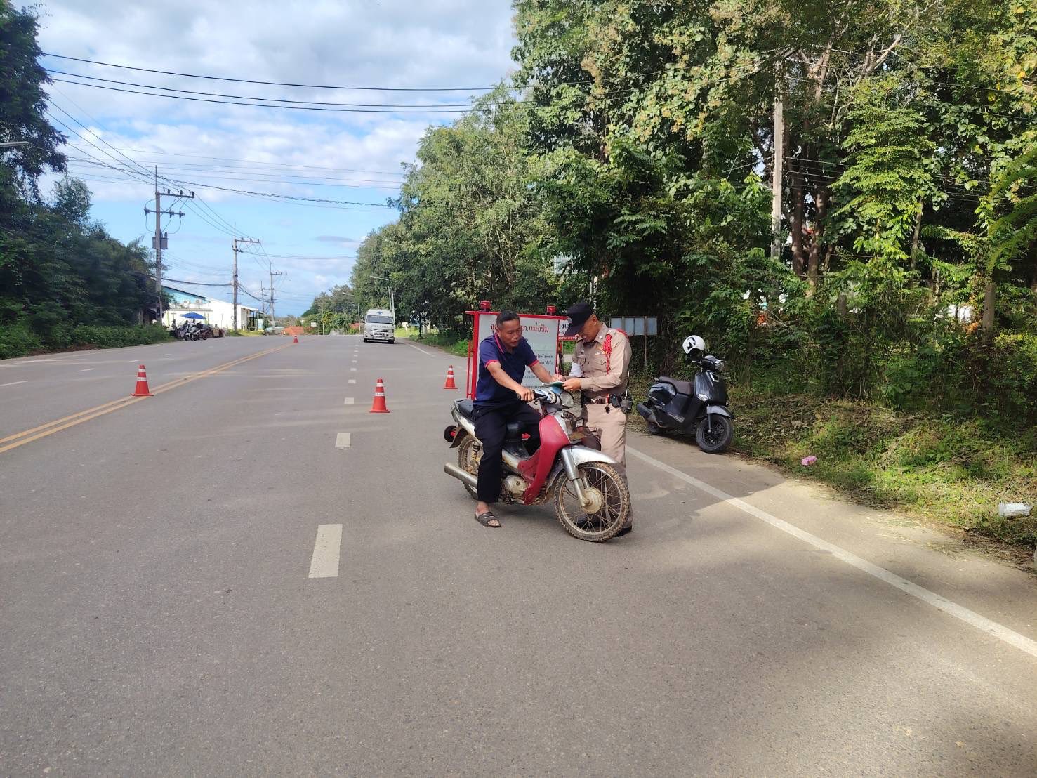 สภ.แม่จริม ภ.จว.น่าน วันนี้ (28 ต.ค. 2568 เวลา 15.00 น.-17.00 น.) โดยการอำนวยการของ พ.ต.อ.วสันติ์ หมั่นสลุง ผกก.สภ.แม่จริม, พ.ต.ท.ธวัชชัย คำชื่น รอง ผกก.ป.สภ.นาหมื่น ช่วยราชการ สภ.แม่จริม, พ.ต.ท.มนตรี ขอดเตชะ สวป.สภ.แม่จริม มอบหมายให้ ร.ต.อ.พงศ์พันธุ์ มีสา รอง สวป.สภ.แม่จริม ปฏิบัติหน้าที่ ร้อยเวร 20 พร้อมด้วยสายตรวจรถยนต์ และ ชุดจราจร นำโดย ร.ต.อ.สมศักดิ์ สมทรง รอง สว.(ป.) สภ.แม่จริม, ส.ต.ท.ยุทธพิชัย ณ ลำปาง ผบ.หมู่ (ป.) สภ.แม่จริม ปฏิบัติหน้าที่ตั้งจุดตรวจเพื่อกวดขันวินัยจราจรและป้องกันปราบปรามอาชญากรรม ณ จุดตรวจหน้า สภ.แม่จริม ต.หนองแดง อ.แม่จริม ตามแผนการขออนุมัติตั้งจุดตรวจในระบบ TPCC ผลการปฏิบัติ ไม่พบสิ่งของผิดกฎหมาย แต่พบผู้กระทำความผิด พ.ร.บ.จราจรทางบก และได้ว่ากล่าวตักเตือน ลงระบบ PTM ดังนี้ 1.ไม่มีใบอนุญาตขับขี่ 26 ราย 2.ไม่สวมหมวกนิรภัย 25 ราย 3.ใช้รถมอเตอร์ไซค์ไม่ปลอดภัย 2 ราย รวมทั้งหมด 53 ราย