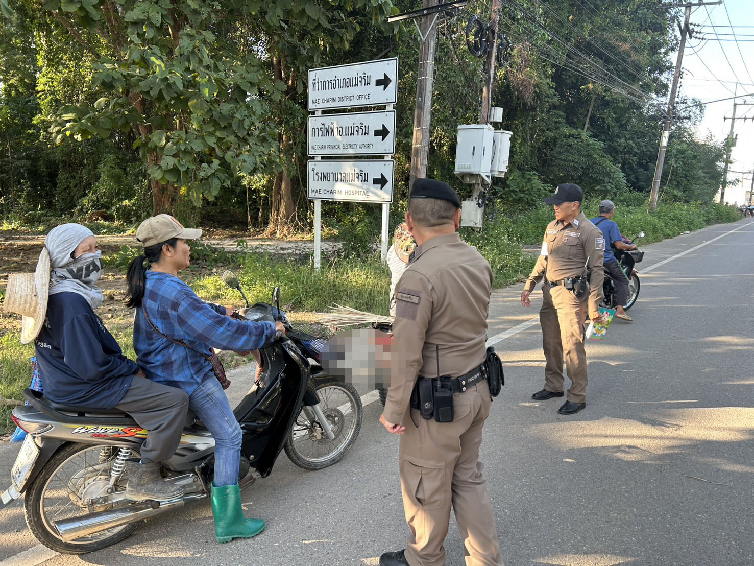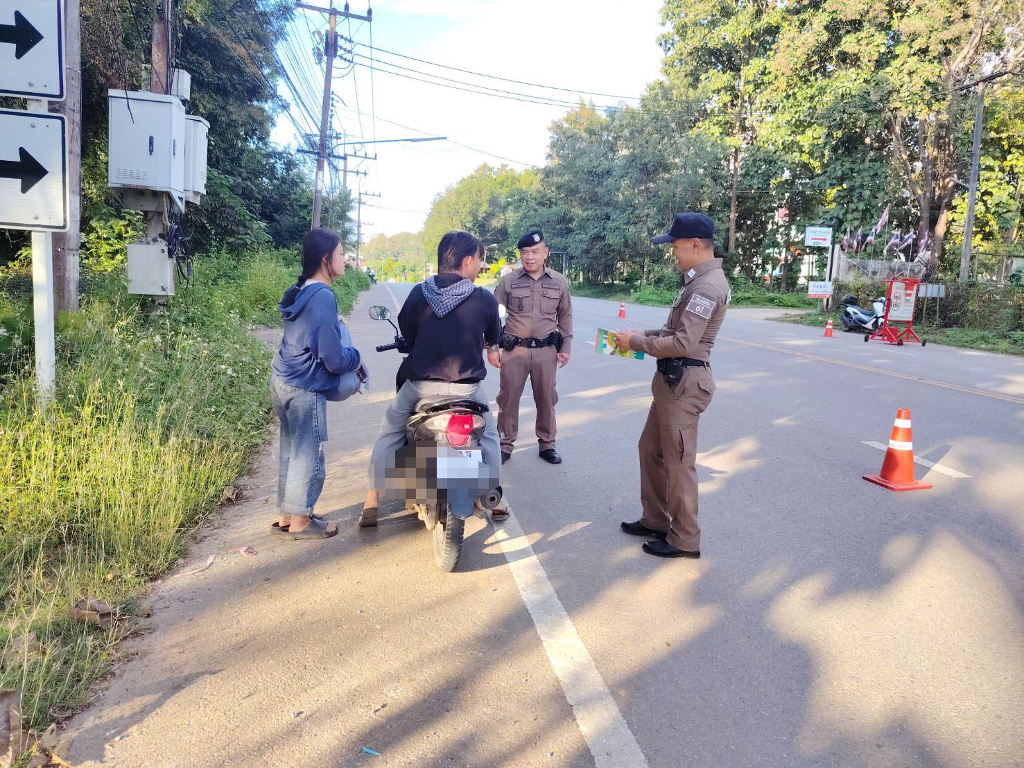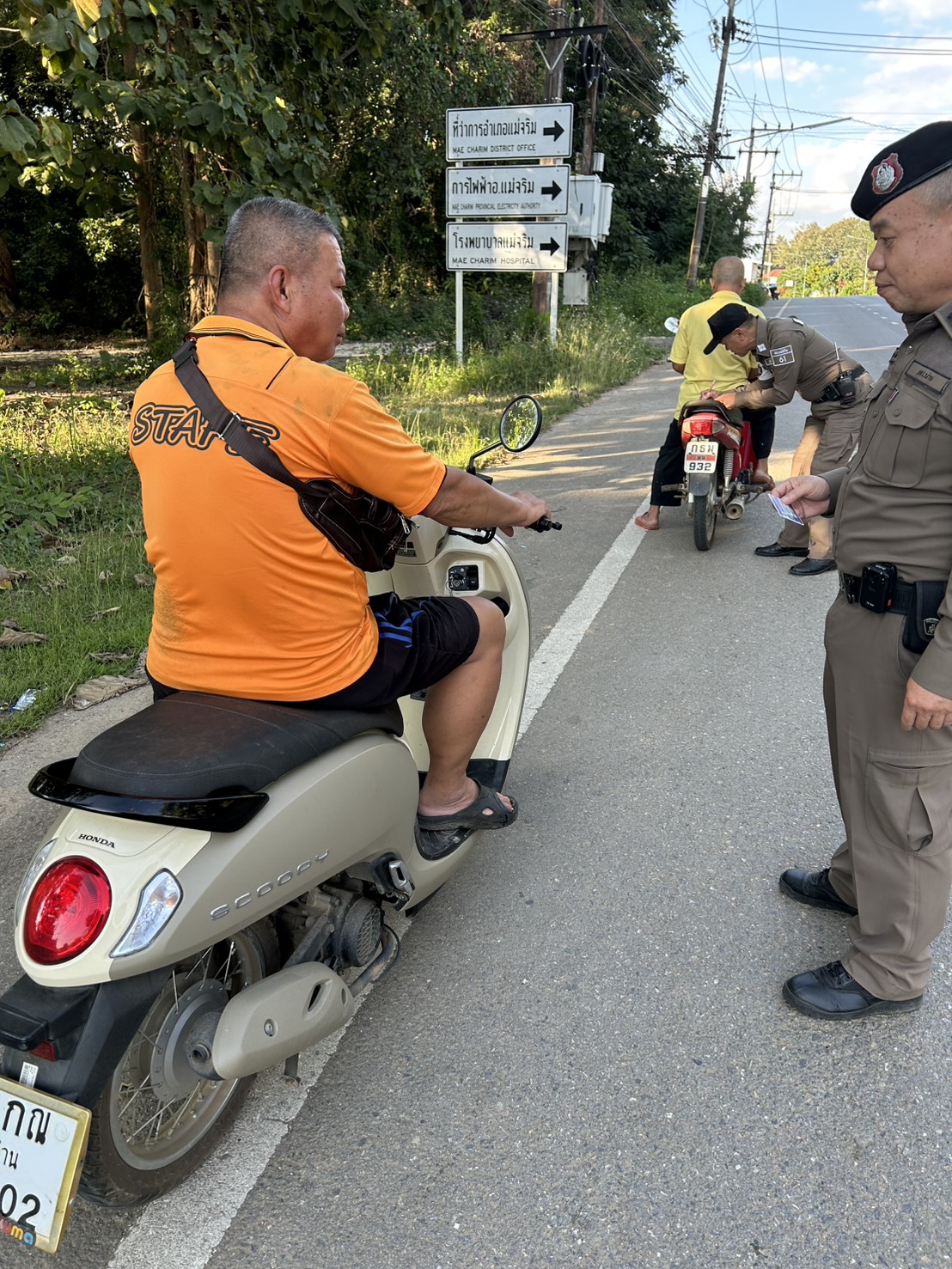 สภ.แม่จริม ภ.จว.น่าน วันนี้ (14 พ.ย. 2568 เวลา 15.00 น. - 17.00 น.) โดยการอำนวยการของ พ.ต.อ.วสันติ์ หมั่นสลุง ผกก.สภ.แม่จริม, พ.ต.ท.ธวัชชัย คำชื่น รอง ผกก.ป.สภ.นาหมื่น ช่วยราชการ สภ.แม่จริม, พ.ต.ท.มนตรี ขอดเตชะ สวป.สภ.แม่จริม มอบหมายให้ ร.ต.อ.สมศักดิ์ สมทรง รอง สว.(ป.).สภ.แม่จริม, ส.ต.ท.ยุทธพิชัย ณ ลำปาง ผบ.หมู่ (ป.)ฯ, ร.ต.อ.พงศ์พันธุ์ มีสา รอง สวป.สภ.แม่จริม (ร้อยเวร 20) พร้อมด้วยเจ้าหน้าที่ตำรวจสายตรวจจำนวน 5 นาย ปฏิบัติหน้าที่ตั้งจุดตรวจเพื่อกวดขันวินัยจราจรและป้องกันปราบปรามอาชญากรรม ณ จุดตรวจหน้า สภ.แม่จริม ต.หนองแดง อ.แม่จริม จ.น่าน ตามแผนการขออนุมัติตั้งจุดตรวจในระบบ TPCC มีผลการปฏิบัติดังนี้ ว่ากล่าวตักเตือนใน PTM 1.ไม่มีใบอนุญาตขับขี่ 16 ราย 2.ไม่สวมหมวกนิรภัย 17 ราย 3.ไม่คาดเข็มขัดนิรภัย 1 ราย
