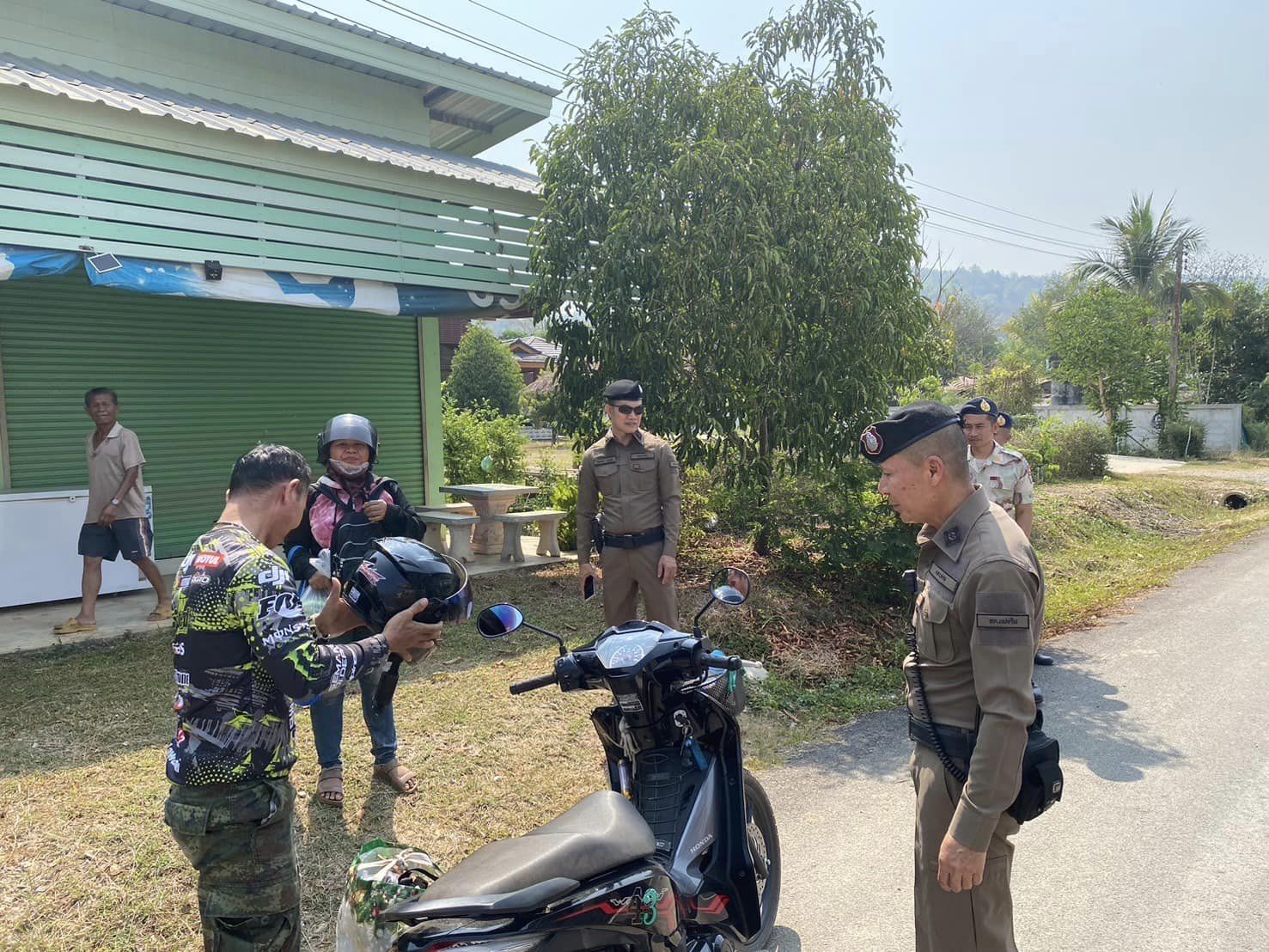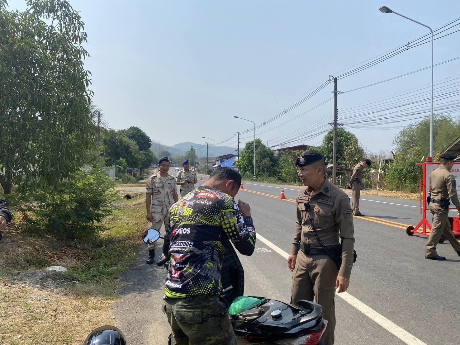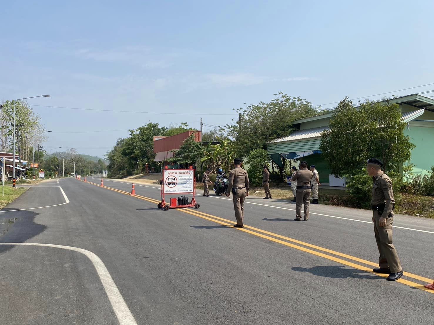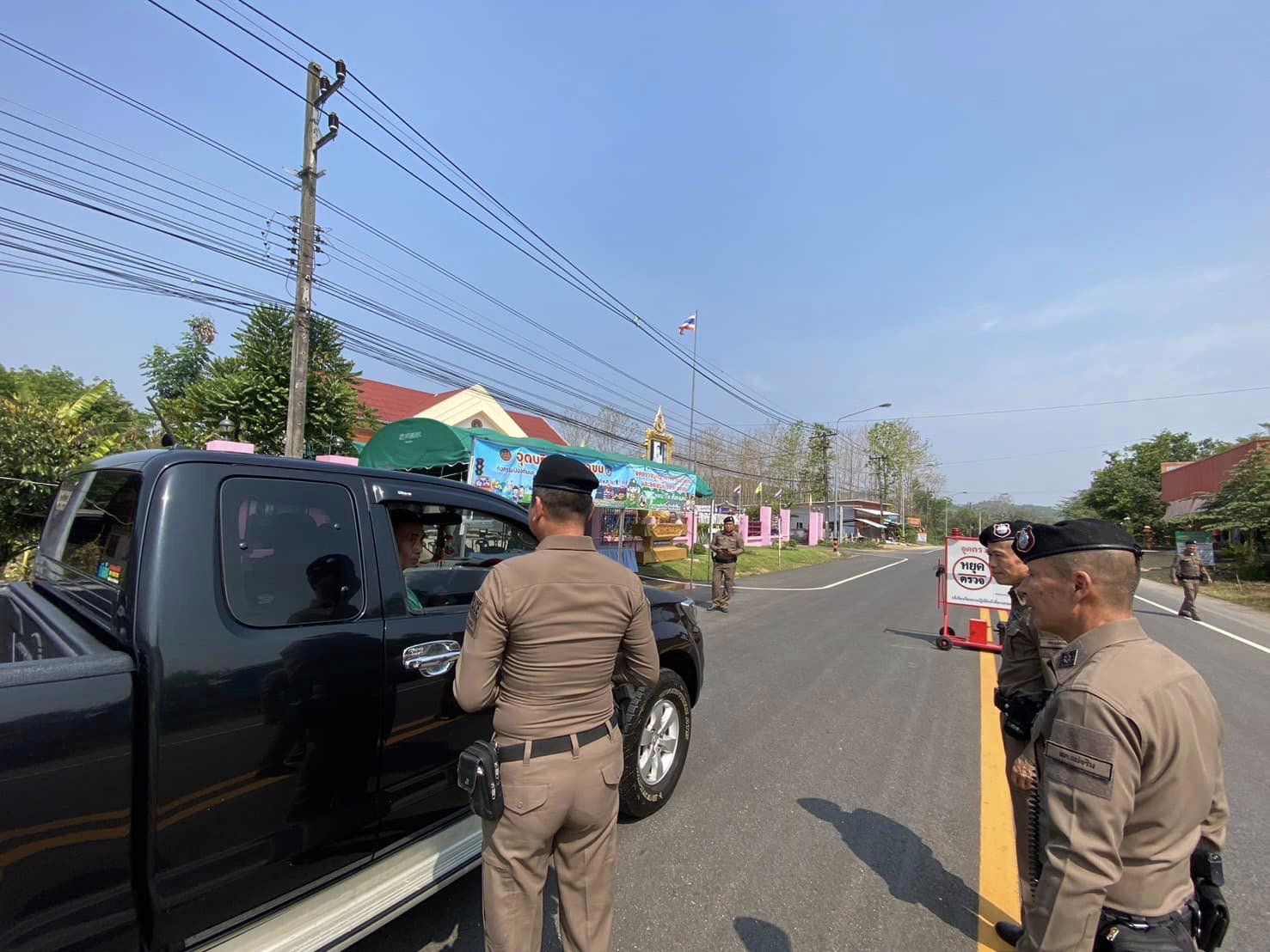 สภ.แม่จริม ภ.จว.น่าน วันนี้ (13 เม.ย. 2567) เวลา 09.00 น. โดยการอำนวยการของ พ.ต.อ.วสันติ์ หมั่นสลุง ผกก.สภ.แม่จริม มอบหมายให้ พ.ต.ท.วีฬเวชน์ ร้านชิตวงศ์ รอง ผกก.ป.สภ.แม่จริม, พ.ต.ท.มนตรี ขอดเตชะ สวป.สภ.แม่จริม, ร.ต.ท.ภูมิวิกรณ์ สอนนนฐีท์กูล รอง สว.(ป.) สภ.แม่จริม นำข้าราชการตำรวจประจำจุดตรวจบูณาการร่วมป้องกันและลดอุบัติเหตุทางถนนช่วงเทศกาลสงกรานต์ ประจำปี 2567 พร้อมด้วยเจ้าหน้าที่ฝ่ายปกครองอำเภอแม่จริม ร่วมกันตั้งจุดตรวจ จุดสกัด ป้องกันและลดอุบัติเหตุทางถนน ช่วงเทศกาลสงกรานต์ ประจำปี 2567 และได้ดำเนินกิจกรรม โครงการจิตอาสา “ชีวิตวิถีใหม่ ขับขี่อย่างปลอดภัย ไร้อุบัติเหตุ” เนื่องในเทศกาลสงกรานต์ ประจำปี 2567 โดยร่วมกันรณรงค์ประชาสัมพันธ์การสร้างวินัยและความปลอดภัยทางถนน เพื่อป้องกันและลดอุบัติเหตุฯ พร้อมกันนี้ได้ แนะนำเส้นทาง แจกน้ำดื่มให้กับประชาชนที่สัญจร ณ จุดตรวจหลักบูรณาการร่วมป้องกันและลดอุบัติเหตุทางถนน ช่วงเทศกาลสงกรานต์ ประจำปี 2567 บริเวณถนนด้านหน้าเทศบาลตำบลหนองแดง อ.แม่จริม จ.น่าน