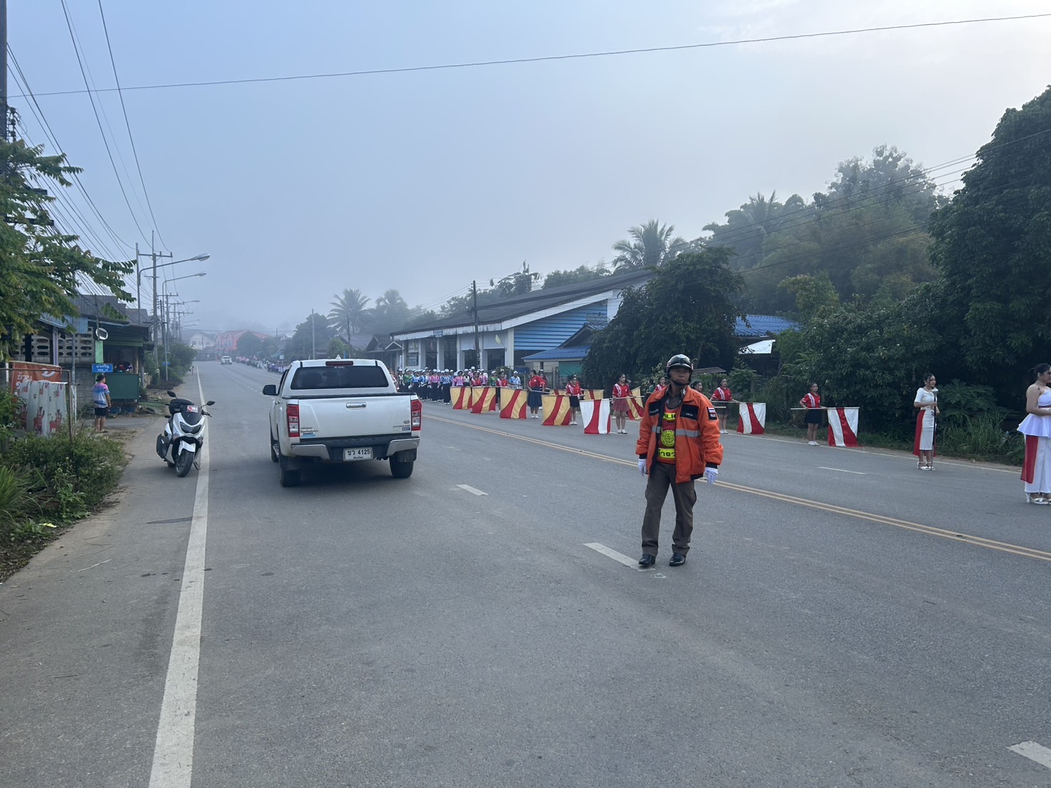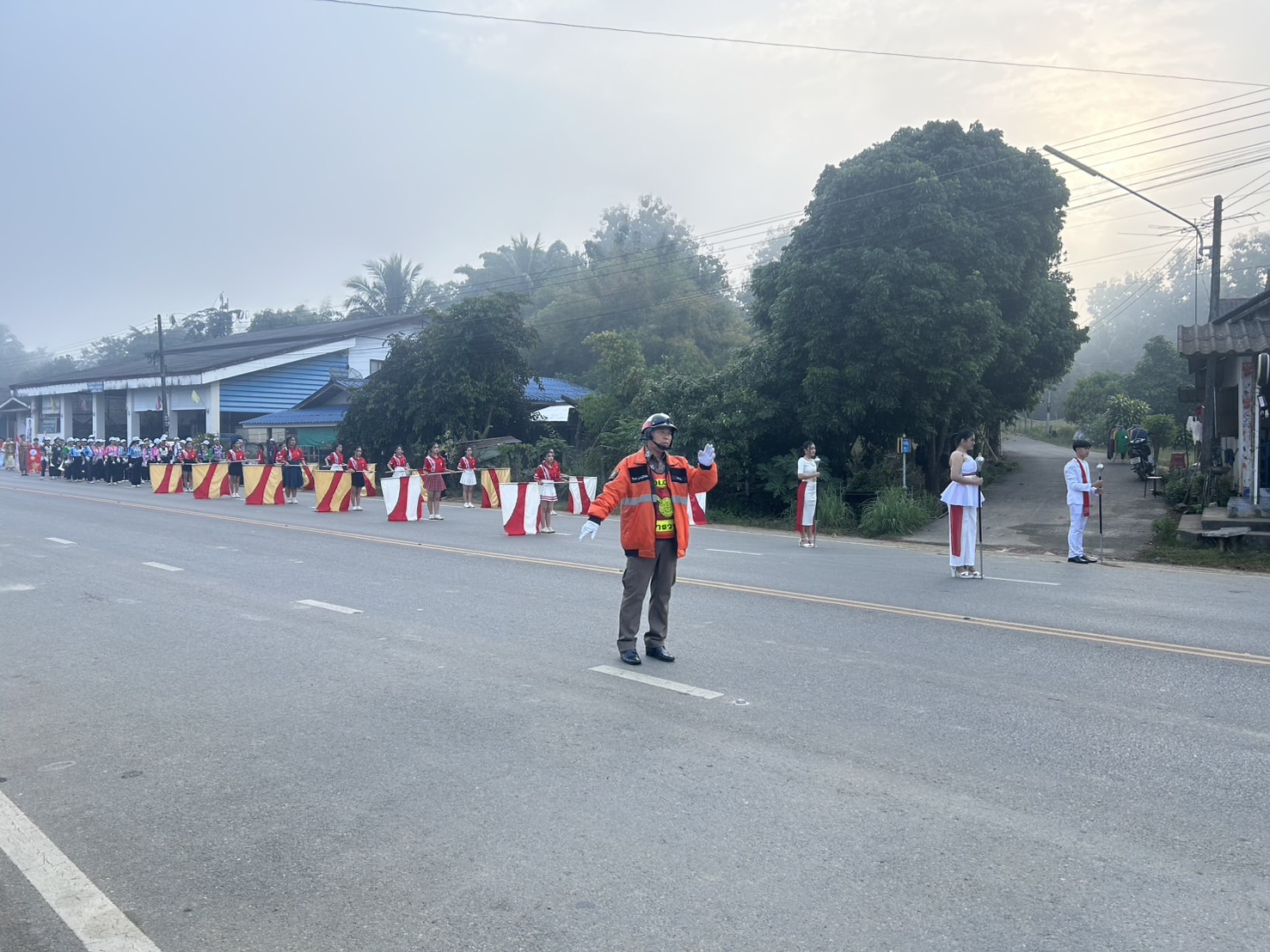 นำขบวนและอำนวยความสะดวกด้านการจราจร ขบวนพาเหรด การจัดกิจกรรมแข่งขันกีฬานักเรียนโรงเรียนแม่จริม อ.แม่จริม จ.น่าน