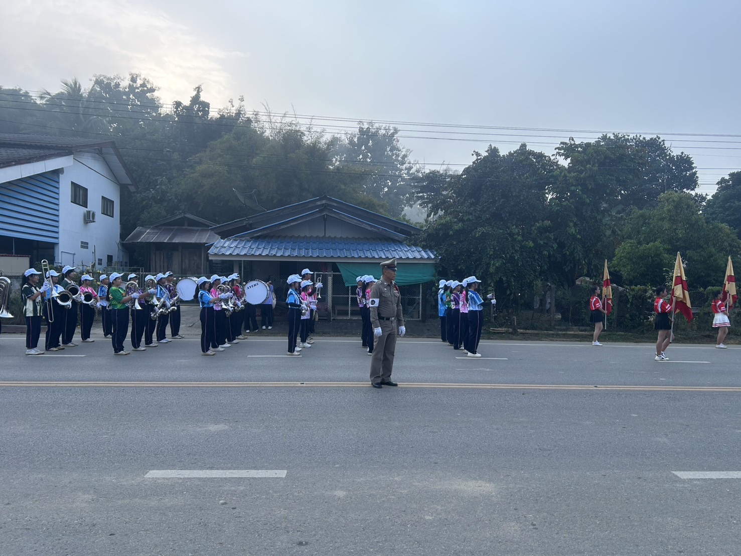 สภ.แม่จริม ภ.จว.น่าน วันนี้ ( 5 ธ.ค.67) เวลา 07.00 น. - 08.00 น. โดยการอำนวยการของ พ.ต.อ.วสันติ์ หมั่นสลุง ผกก.สภ.แม่จริม, พ.ต.ท.วีฬเวชน์ ร้านชิตวงค์ รอง ผกก.ป.สภ.แม่จริม, พ.ต.ท.มนตรี ขอดเตชะ สวป.สภ.แม่จริม มอบหมายให้ ร.ต.อ.สมควร ยศศรี รอง สว.(ป.) สภ.แม่จริม ร้อยเวร 20 พร้อมสายตรวจ และชุดจราจร นำโดย ร.ต.อ.จิรภาส พูนอรุณโสฬส รอง สว.(ป.) สภ.แม่จริม, ร.ต.ท.สมศักดิ์ สมทรง รอง สว.(ป.) สภ.แม่จริม และ ส.ต.ท.ยุทธพิชัย ณ ลำปาง ผบ.หมู่ (ป.) สภ.แม่จริม นำขบวนและอำนวยความสะดวกด้านการจราจร ขบวนพาเหรด การจัดกิจกรรมแข่งขันกีฬานักเรียนโรงเรียนแม่จริม อ.แม่จริม จ.น่าน โดยจัดขบวนตั้งแต่หอประชุมบ้านนาเจริญ ถึงสนามกีฬากลางเทศบาล ต.หนองแดง อ.แม่จริม จ.น่าน