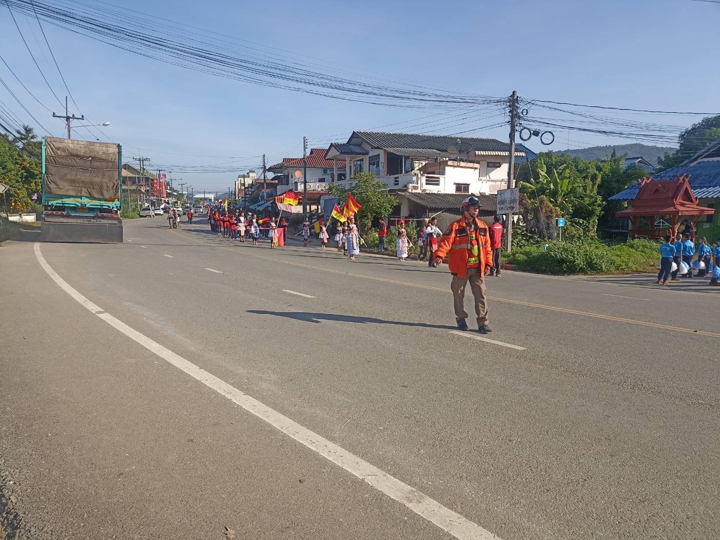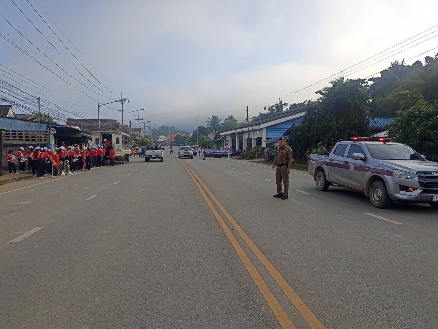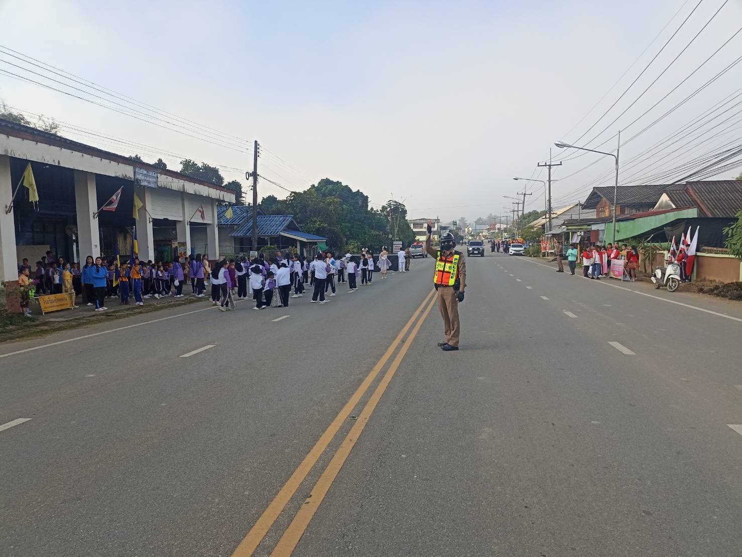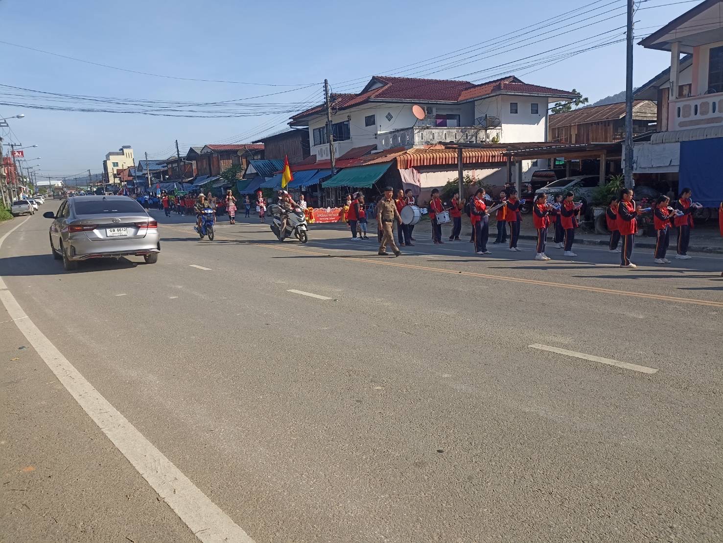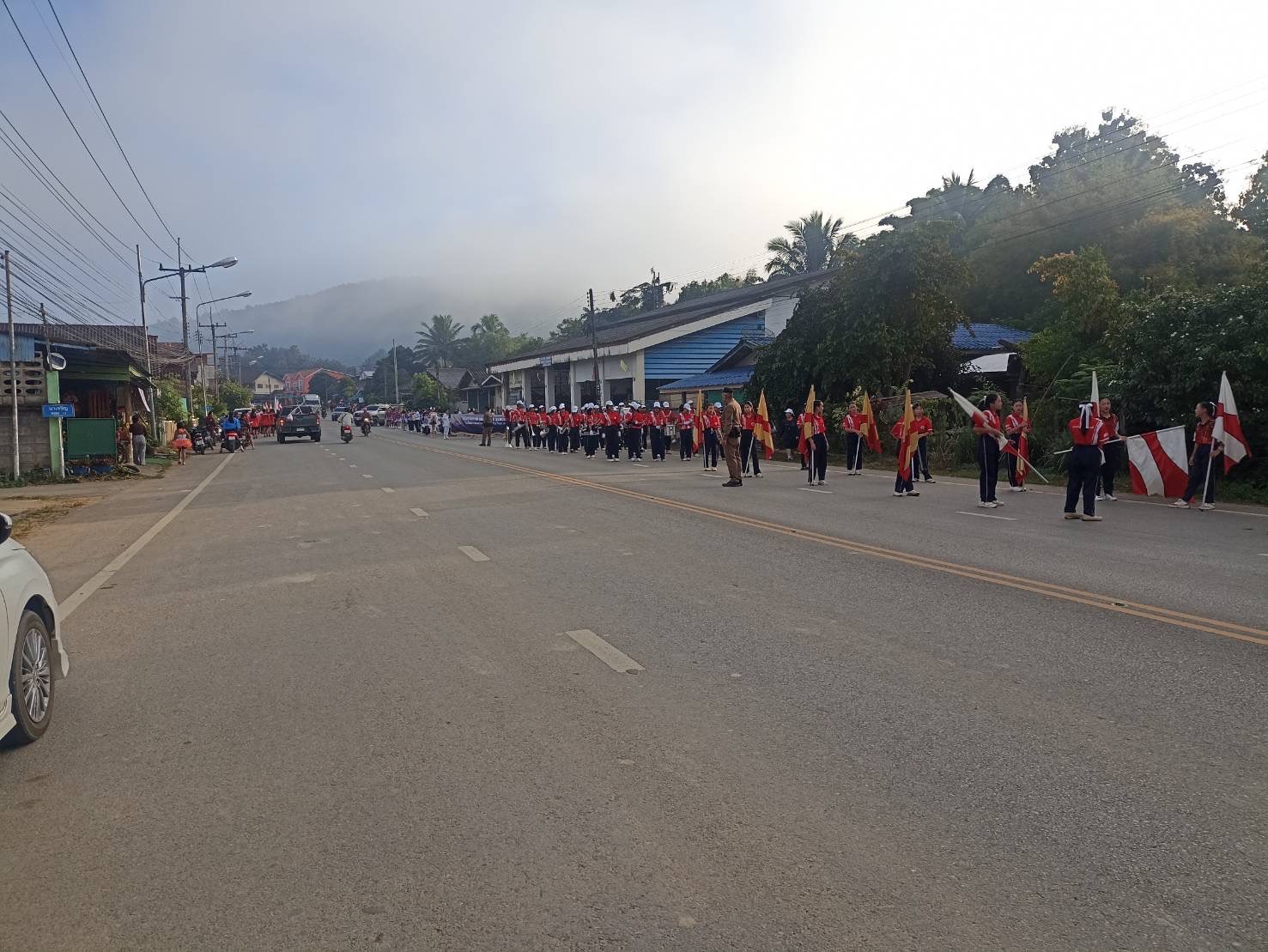 นำขบวนและอำนวยความสะดวกด้านการจราจร กิจกรรมขบวนพาเหรด กีฬานักเรียนกลุ่มโรงเรียนในเขตอำเภอแม่จริม