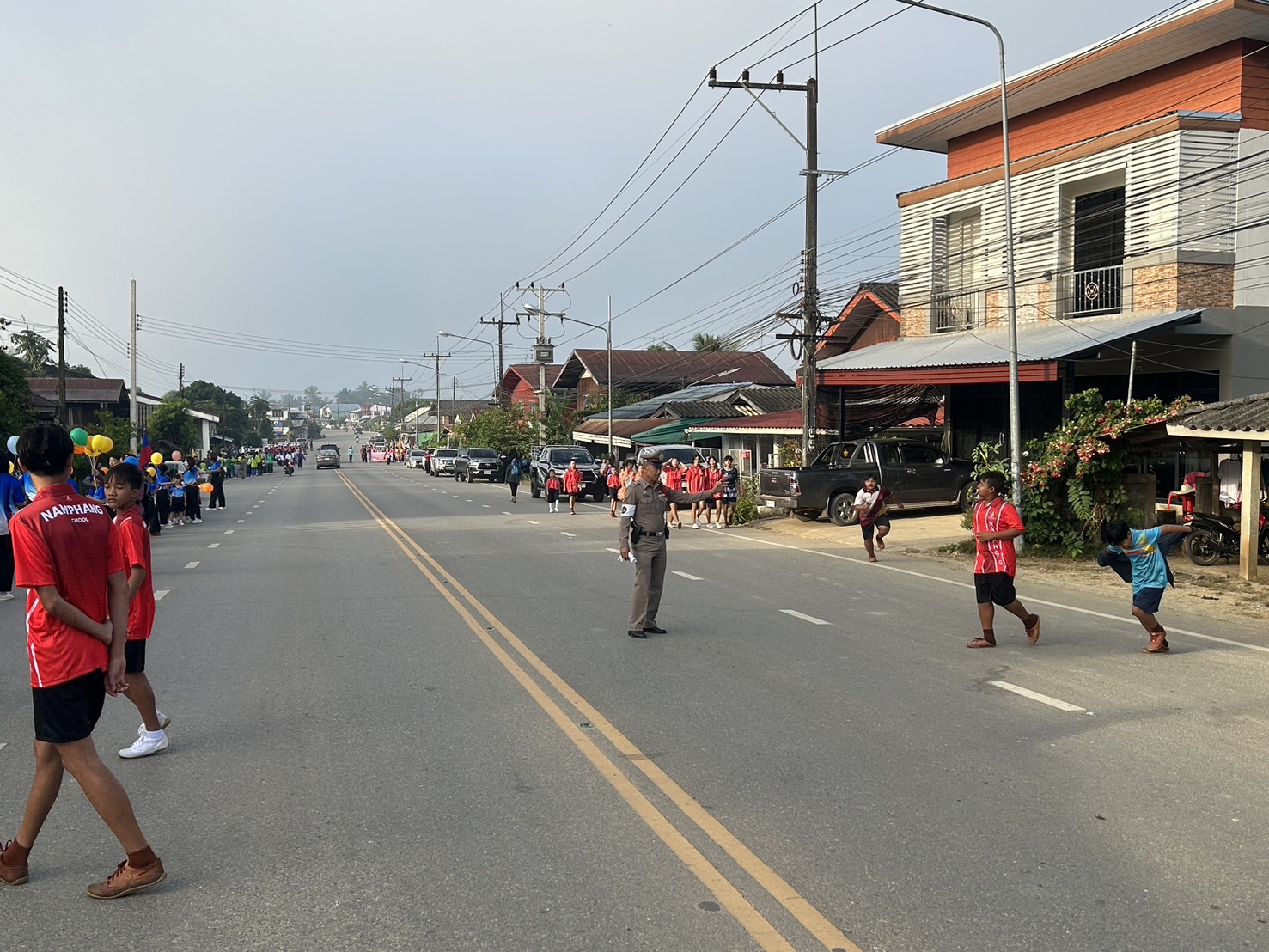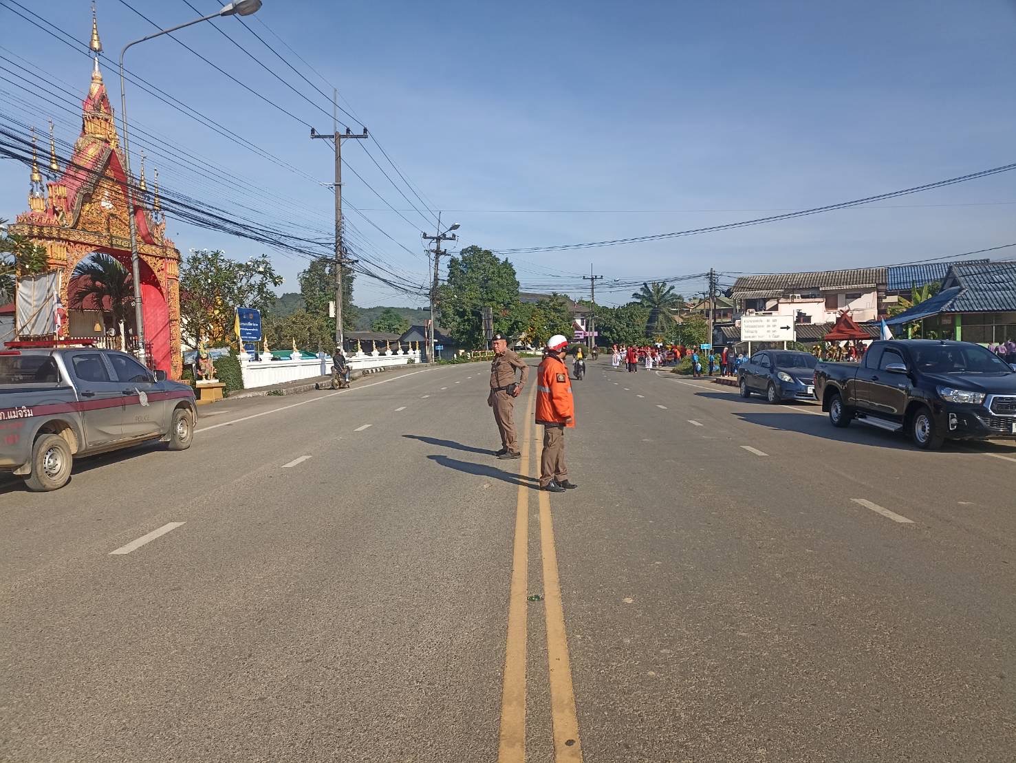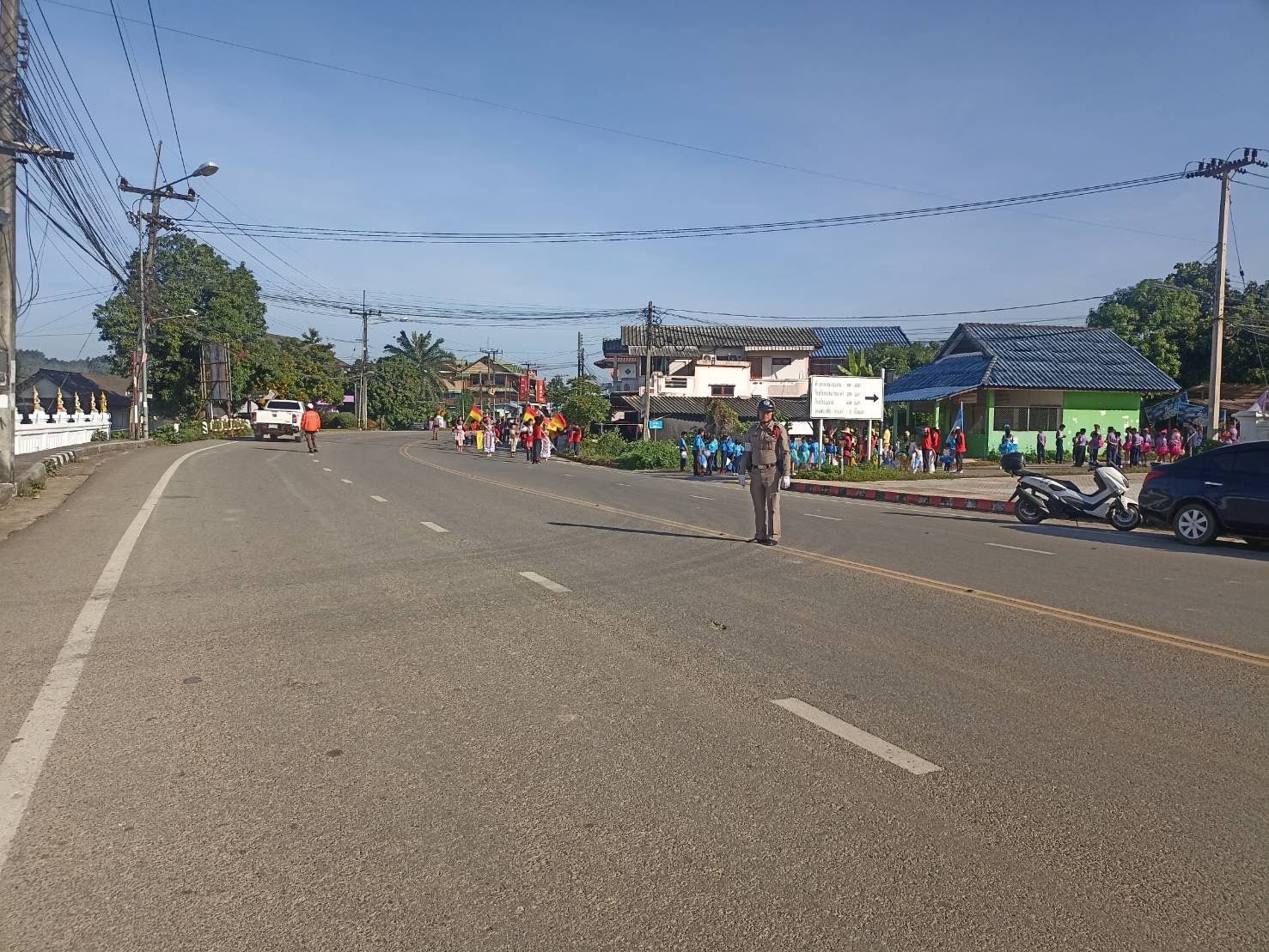 สภ.แม่จริม ภ.จว.น่าน วันนี้ ( 2 ธ.ค.67) เวลา 07.30 น. - 09.00 น. โดยการอำนวยการของ พ.ต.อ.วสันติ์ หมั่นสลุง ผกก.สภ.แม่จริม, พ.ต.ท.วีฬเวชน์ ร้านชิตวงค์ รอง ผกก.ป.สภ.แม่จริม, พ.ต.ท.มนตรี ขอดเตชะ สวป.สภ.แม่จริม มอบหมายให้ ร.ต.อ.ชิดชัย ปานต๊ะระษี รอง สวป.สภ.แม่จริม ปฏิบัติหน้าที่ร้อยเวร 20 พร้อมด้วยสายตรวจรถยนต์ และชุดจราจร นำโดย ร.ต.อ.จิรภาส พูนอรุณโสฬส รอง สว.(ป.) สภ.แม่จริม, ร.ต.อ.สมศักดิ์ สมทรง รอง สว.(ป.) สภ.แม่จริม และ ส.ต.ท.ยุทธพิชัย ณ ลำปาง ผบ.หมู่(ป.) สภ.แม่จริม นำขบวนและอำนวยความสะดวกด้านการจราจร กิจกรรมขบวนพาเหรด กีฬานักเรียนกลุ่มโรงเรียนในเขตอำเภอแม่จริม โดยจัดขบวนตั้งแต่หอประชุมบ้านนาเจริญ - โรงเรียนชุมชนบ้านนา อำเภอแม่จริม จังหวัดน่าน
