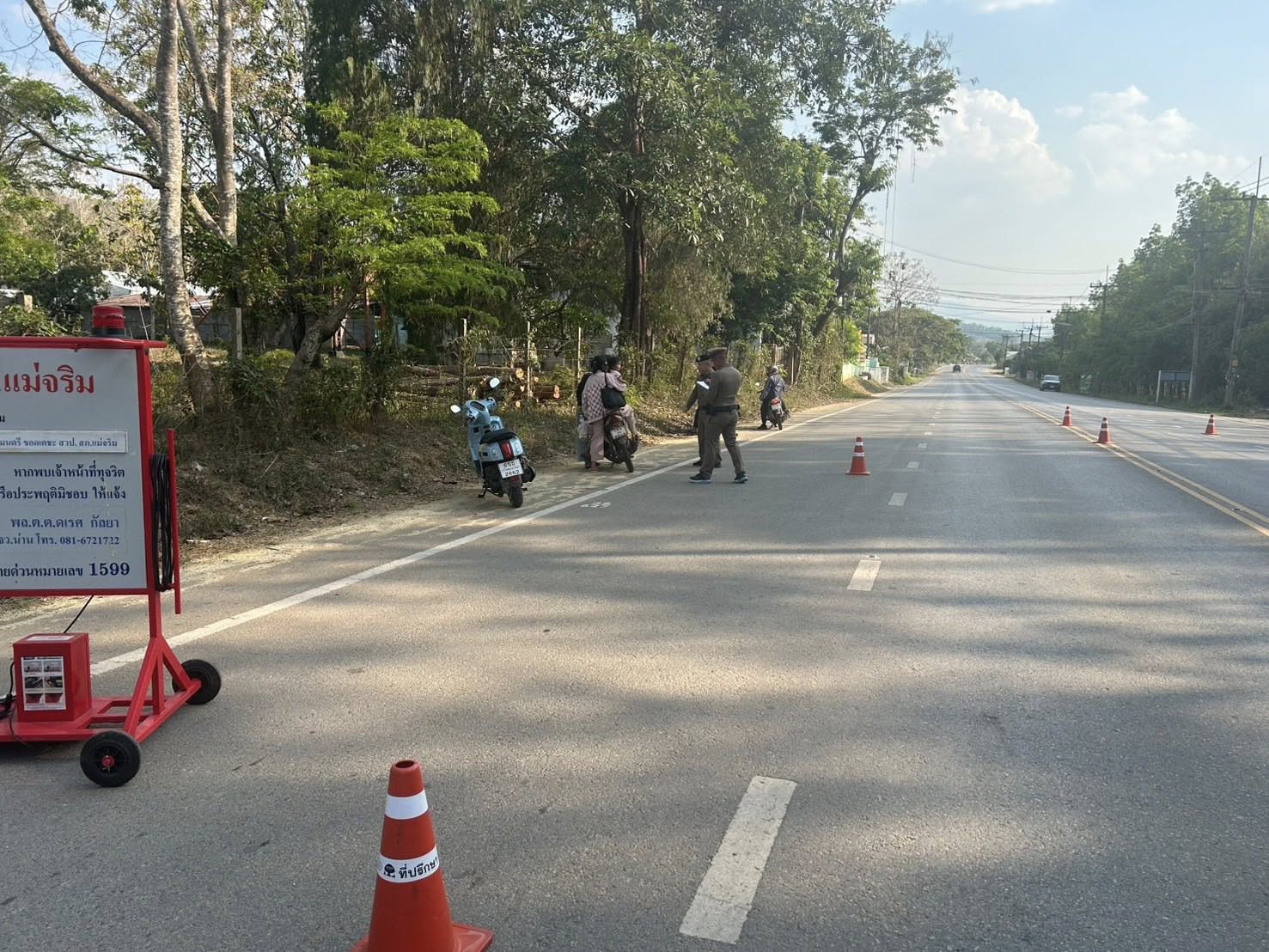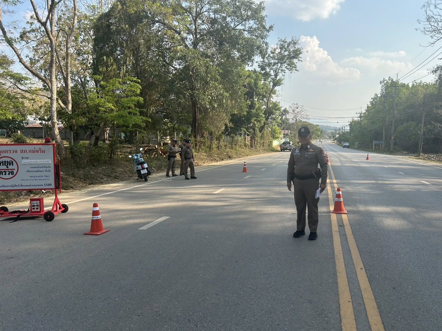 สภ.แม่จริม (งานจราจร) ภ.จว.น่าน วันนี้ (19 มี.ค.2569 เวลา 13.00 - 15.00 น.) โดยการอำนวยการของ พ.ต.อ.วสันติ์ หมั่นสลุง ผกก.สภ.แม่จริม, พ.ต.ท.ประทีป แปงเขียว รอง ผกก.ป.สภ.แม่จริม, พ.ต.ท.มนตรี ขอดเตชะ สวป.สภ.แม่จริม มอบหมายให้ ร.ต.อ.พงษ์พันธ์ุ มีสา รอง สวป.สภ.แม่จริม พร้อมเจ้าหน้าที่สายตรวจรถยนต์ พร้อมด้วยเจ้าหน้าที่ตำรวจจราจร นำโดย ร.ต.อ.สมศักดิ์ สมทรง รอง สว.(ป.) สภ.แม่จริม, ร.ต.ท.กฤตญชญ์ อินตุ้ย รอง สว.(ป.) สภ.แม่จริม และ ส.ต.ท.ยุทธพิชัย ณ ลำปาง ผบ.หมู่ (ป.) สภ.แม่จริม ปฏิบัติหน้าที่ตั้งจุดตรวจเพื่อกวดขันวินัยจราจร ณ จุดตรวจหน้า สภ.แม่จริม ต.หนองแดง อ.แม่จริม ตามแผนการขออนุมัติตั้งจุดตรวจในระบบ TPCC มีผลการปฏิบัติดังนี้ *** ว่ากล่าวตักเตือนใน PTM 1.ไม่มีใบอนุญาตขับขี่ 23 ราย 2.ไม่สวมหมวกนิรภัย 26 ราย 3.ใช้รถมอเตอร์ไซค์ไม่ปลอดภัย 5 ราย รวมทั้งหมด 54 ราย