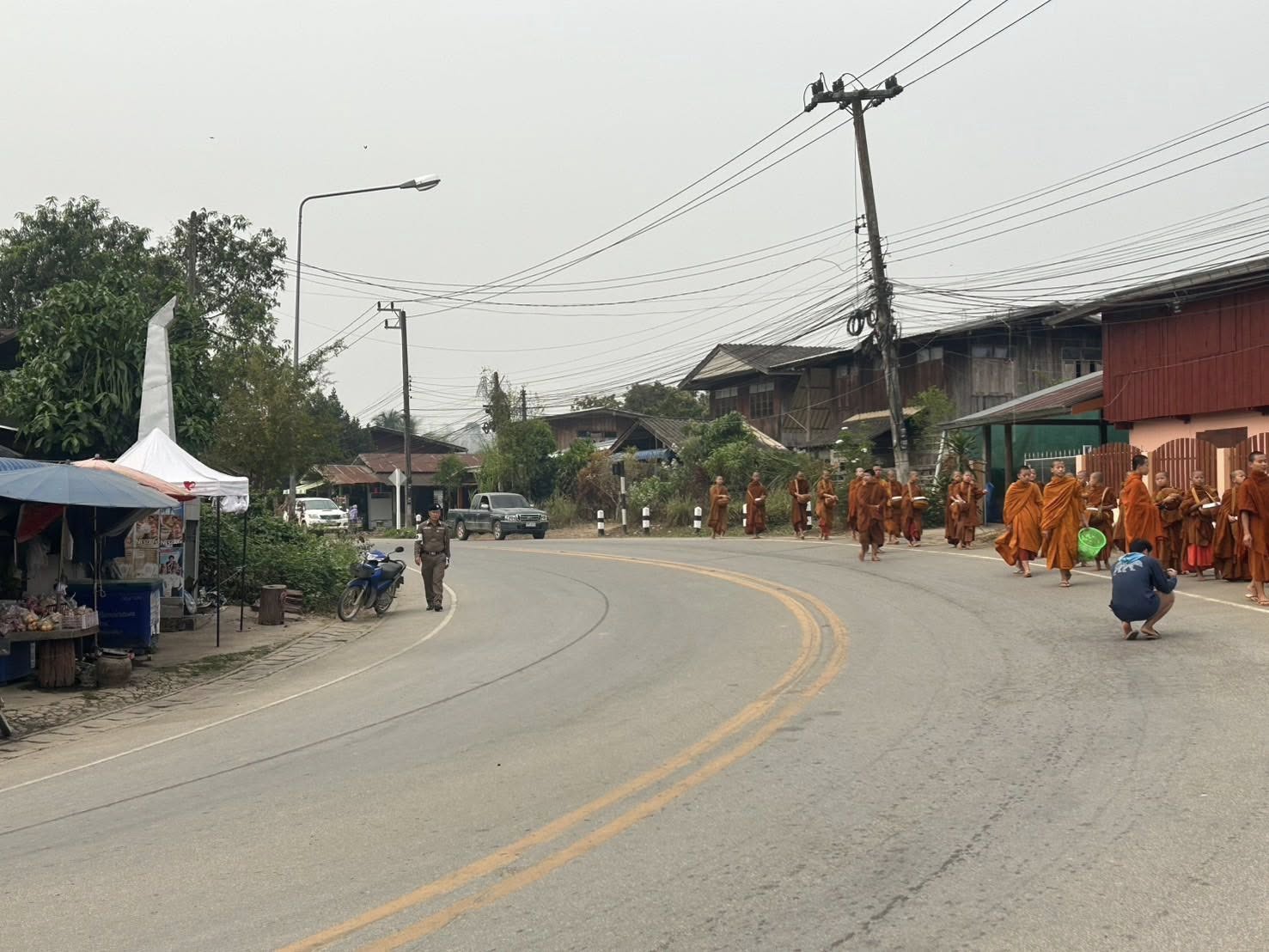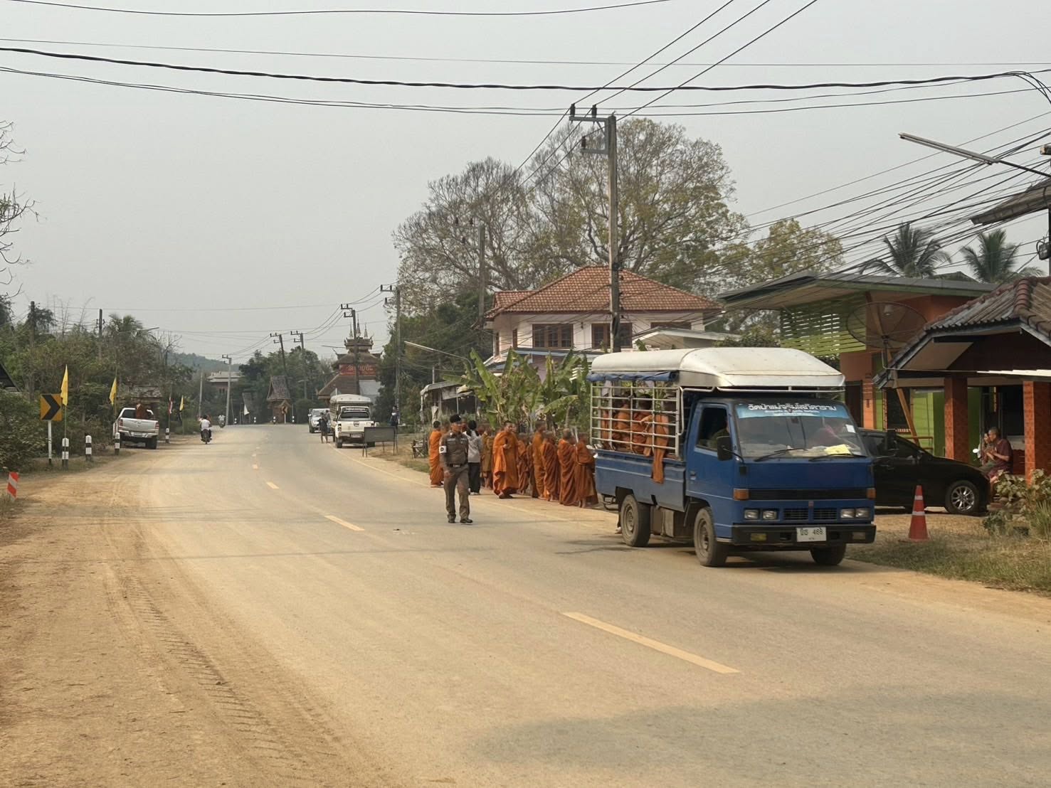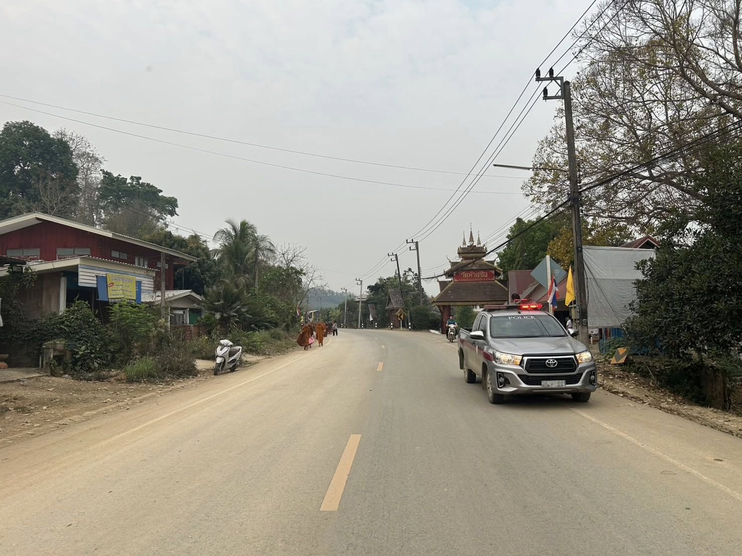 สภ.แม่จริม จว.น่าน วันนี้ (5 เม.ย.2568 เวลา 07.00 น.) โดยการอำนวยการของ พ.ต.อ.วสันติ์ หมั่นสลุง ผกก.สภ.แม่จริม, พ.ต.ท.ธวัชชัย คำชื่น รอง ผกก.ป.สภ.นาหมื่น ช่วยราชการ สภ.แม่จริม, พ.ต.ท.มนตรี ขอดเตชะ สวป.สภ.แม่จริม มอบหมายให้ ร.ต.อ.สมศักดิ์ สมทรง รอง สว.(ป.) สภ.แม่จริม พร้อมด้วย ส.ต.ท.ยุทธพิชัย ณ ลำปาง เจ้าหน้าที่ตำรวจจราจร ปฏิบัติหน้าที่อำนวยความสะดวกด้านการจราจรแก่โรงเรียนวัดป่าแม่จริมโสภิตารา การจัดกิจกรรมบิณฑบาตรของสามเณรภาคฤดูร้อน ประจำปี 2568 ตั้งแต่ บ้านนาเซีย-บ้านห้วยซ้อ ต.หมอเมืองง อ.แม่จริม จ.น่าน เหตุการณ์ทั่วไปปกติ