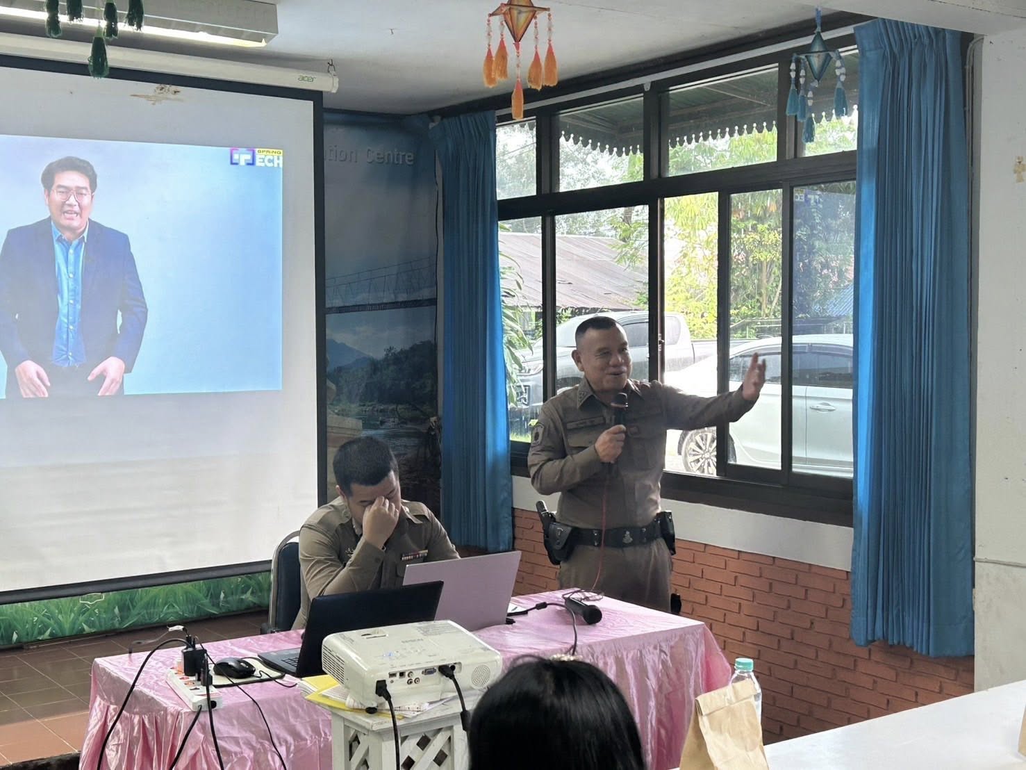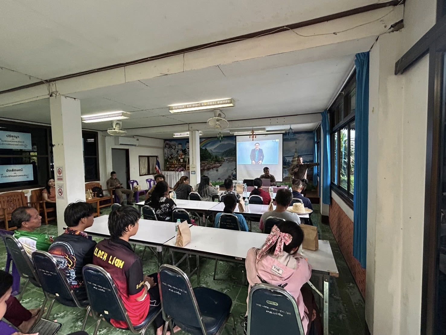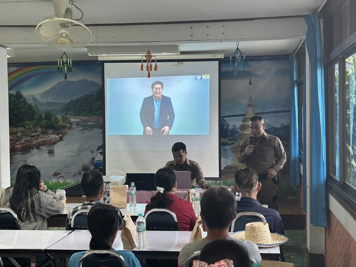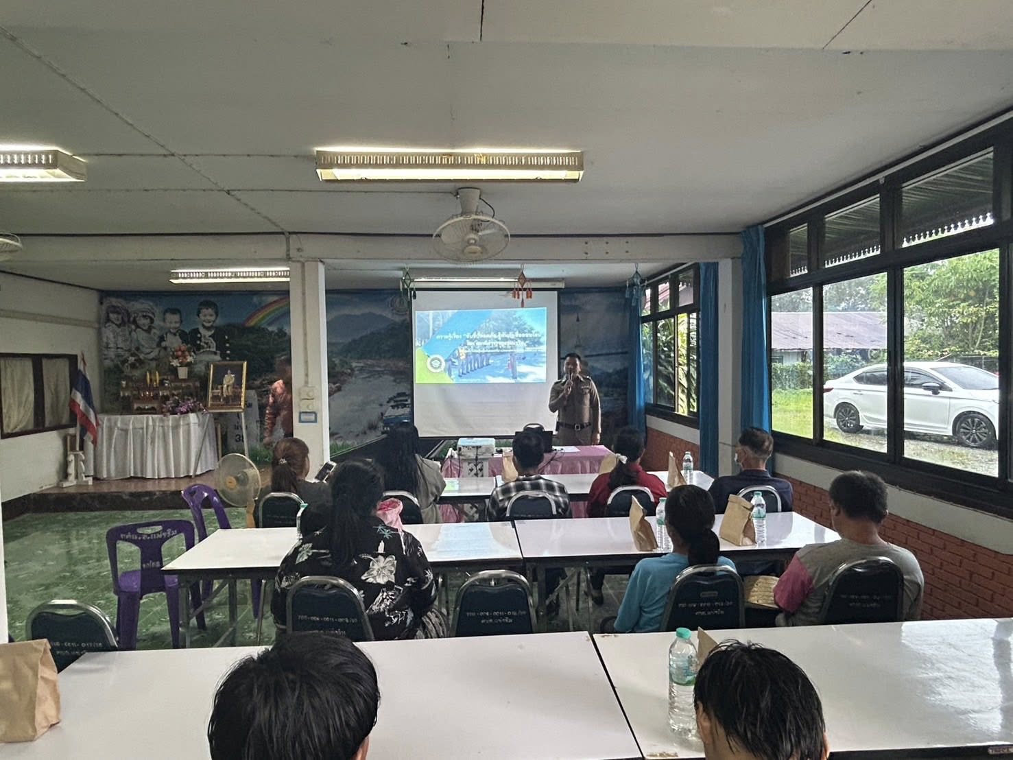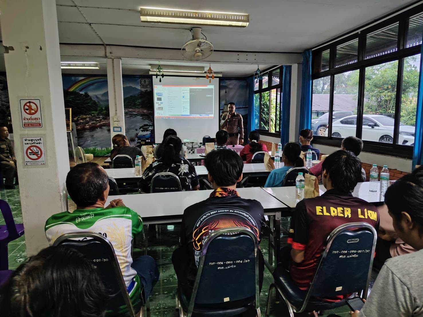 สภ.แม่จริม ภ.จว.น่าน วันนี้( 17 ก.ค.2568 เวลา 09.00 น. - 12.00 น. ) โดยการอำนวยการของ พ.ต.อ.วสันติ์ หมั่นสลุง ผกก.สภ.แม่จริม, พ.ต.ท.ธวัชชัย คำชื่น รอง ผกก.ป.สภ.นาหมื่น ช่วยราชการ สภ.แม่จริม, พ.ต.ท.มนตรี ขอดเตชะ สวป.สภ.แม่จริม, นำโดย พ.ต.ท.ประทีบ ต๊อดแก้ว สว.อก.สภ.แม่จริม, ร.ต.อ.พงศ์พันธุ์ มีสา รอง สวป.สภ.แม่จริม พร้อมด้วยชุดชุมชนและมวลชนสัมพันธ์ และ ส.ต.ท.ยุทธพิชัย ณ ลำปาง ผบ.หมู่ (ป.) สภ.แม่จริม จนท.จราจร เป็นวิทยากรในการอบรมให้ความรู้หัวข้อ ”ขับขี่ปลอดภัย รู้ทันภัยออนไลน์“ แก่นักศึกษาศูนย์การเรียนรู้ระดับอำเภอแม่จริม ณ หอประชุมศูนย์การเรียนรู้ระดับอำเภอแม่จริม ม.5 ต.หนองแดง อ.แม่จริม จ.น่าน