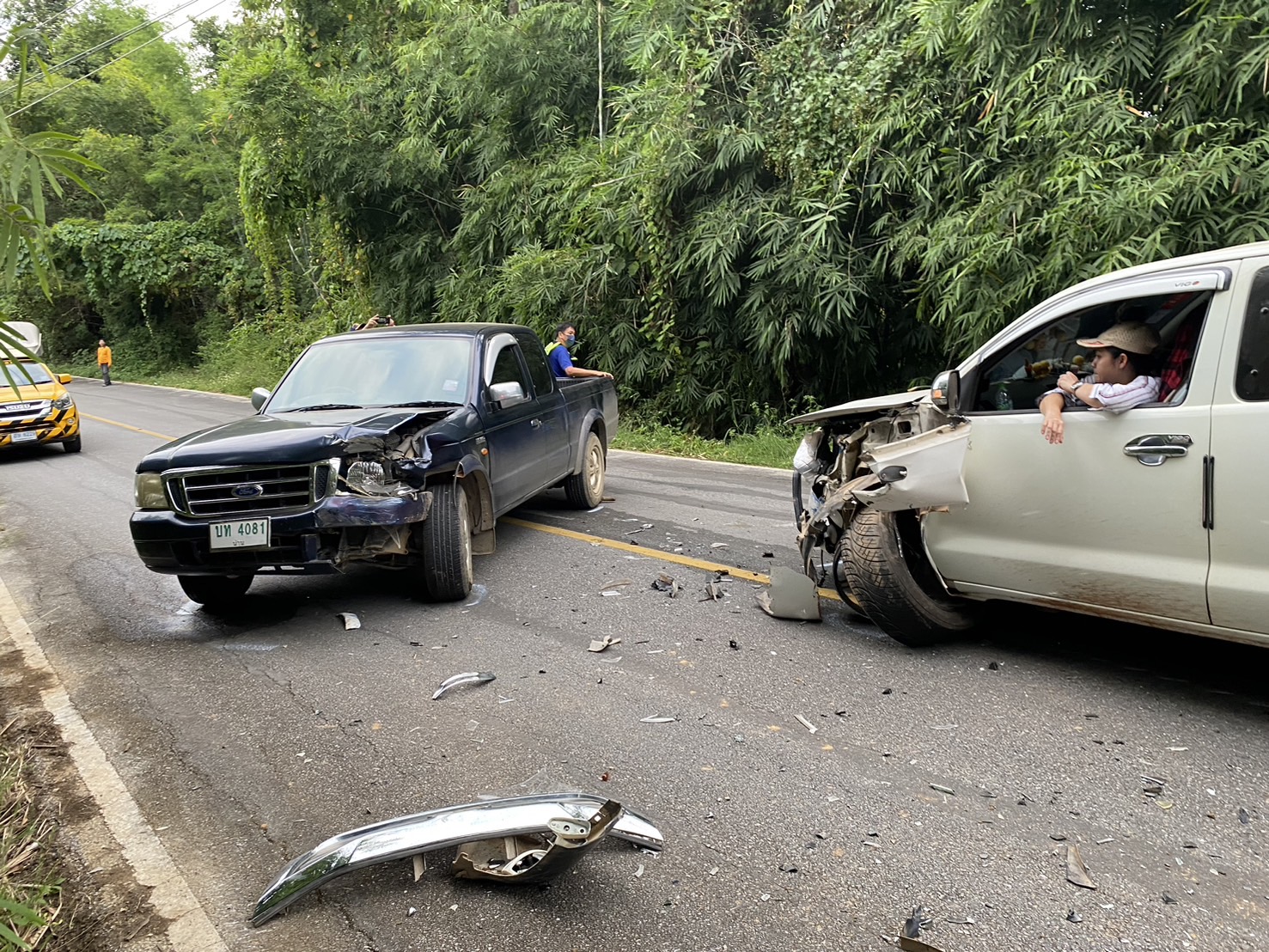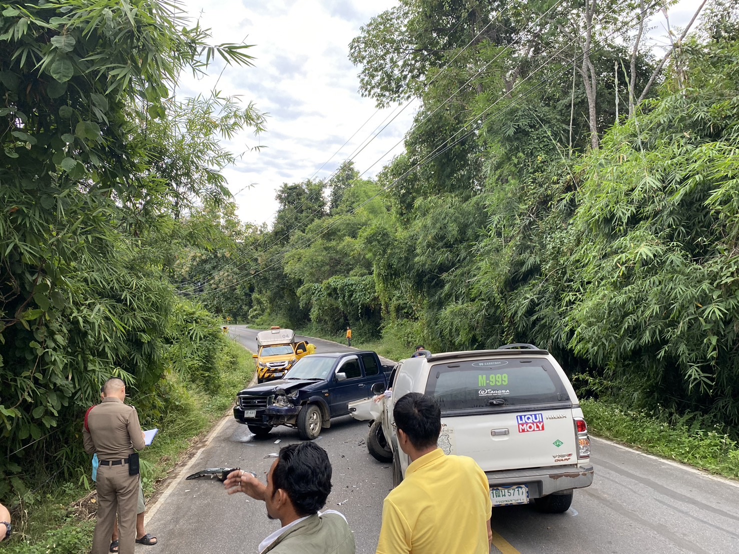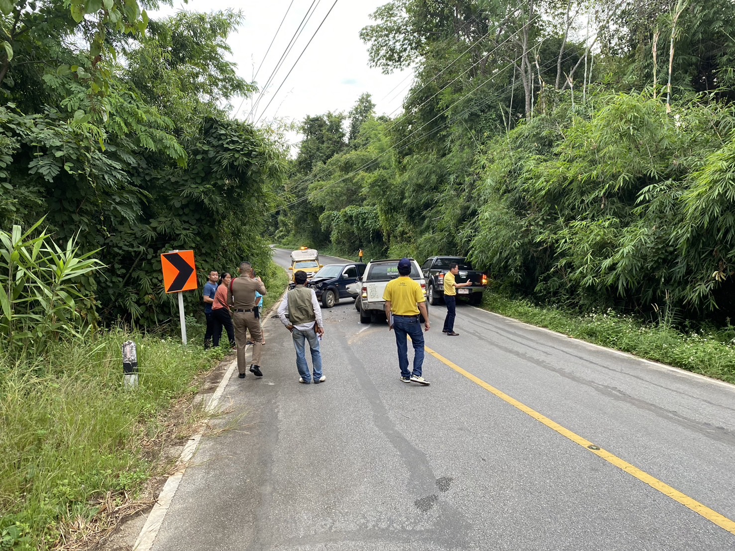 พ.ต.ท.ชัยณวัฒน์ ก้อนแก้ว สว.(สอบสวน) สภ.แม่จริม พร้อมด้วยผู้ช่วยพนักงานสอบสวนเวร ตรวจสอบเหตุรถยนต์ชนกับรถยนต์