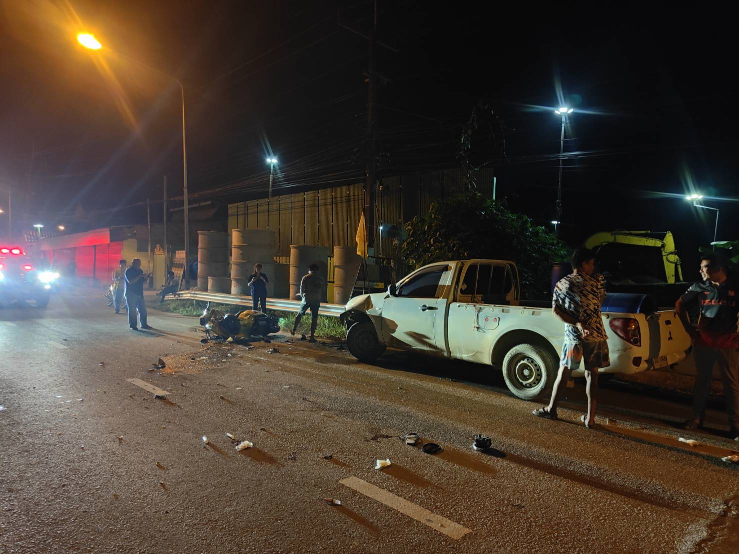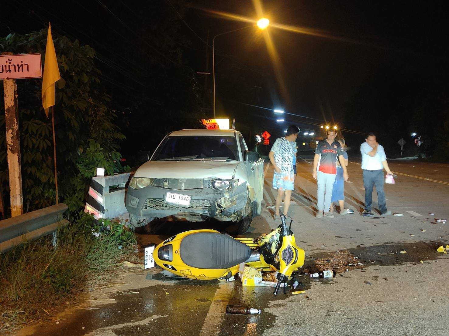 พ.ต.ท.รุ่งโรจน์ มีชัย สว.(สอบสวน) สภ.แม่จริม พร้อมด้วยพนักงานสอบสวนเวร ตรวจสอบเหตุรถจักรยานยนต์ชนกับรถยนต์