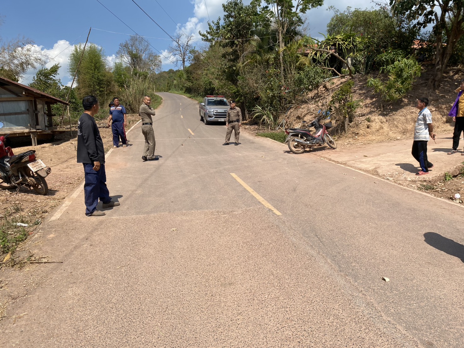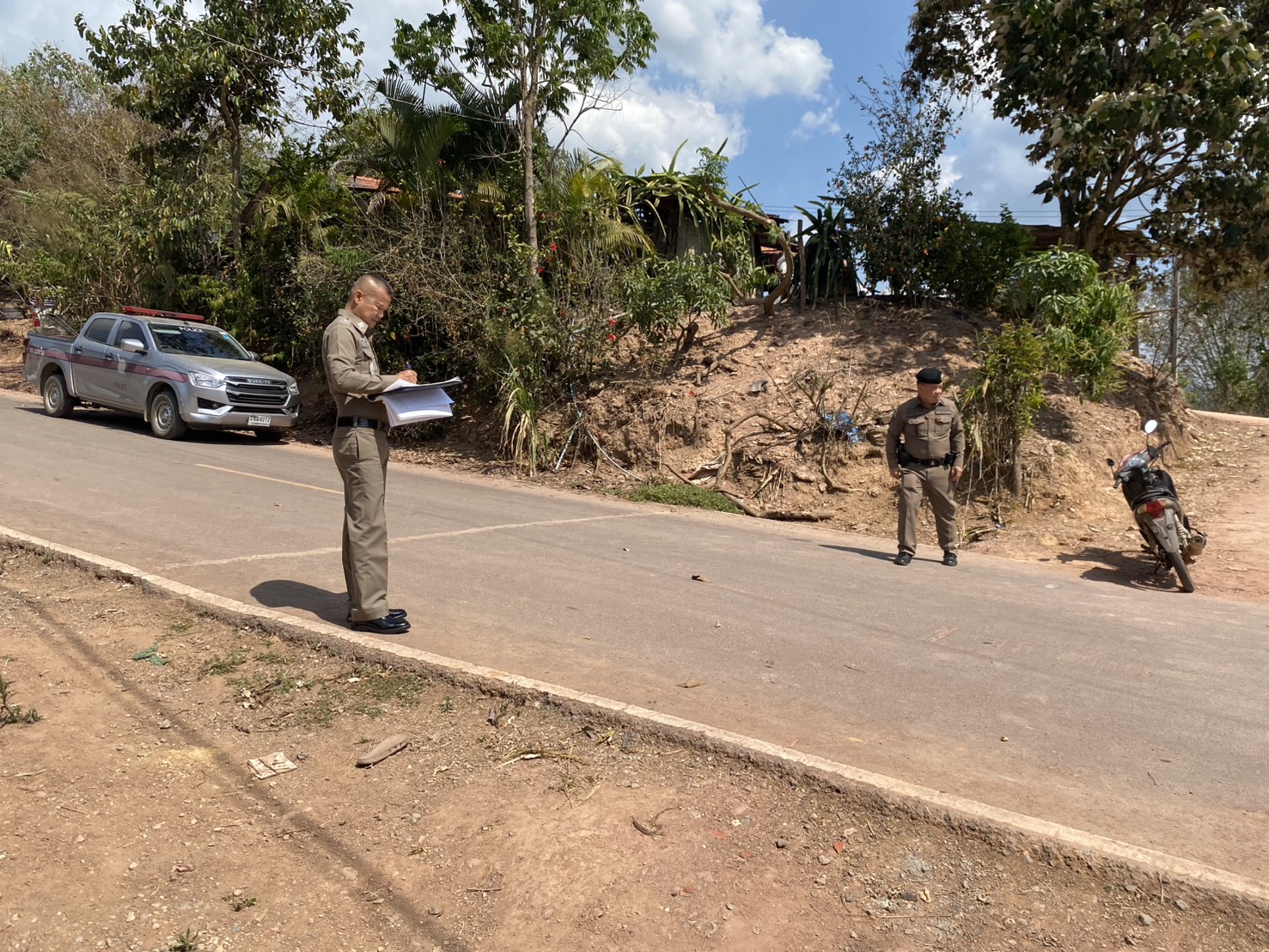 พ.ต.ท.รุ่งโรจน์ มีชัย สว.(สอบสวน) สภ.แม่จริม พร้อมด้วยผู้ช่วย พงส.เวร ตรวจที่เกิดเหตุ ว.40 ถ.บ้านน้ำตวง - กิ่วน้ำ