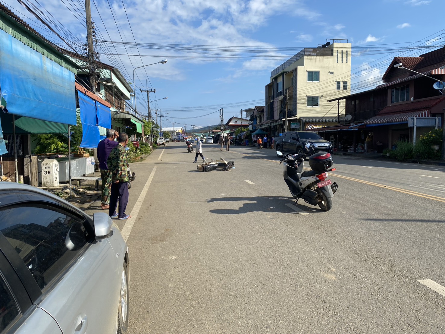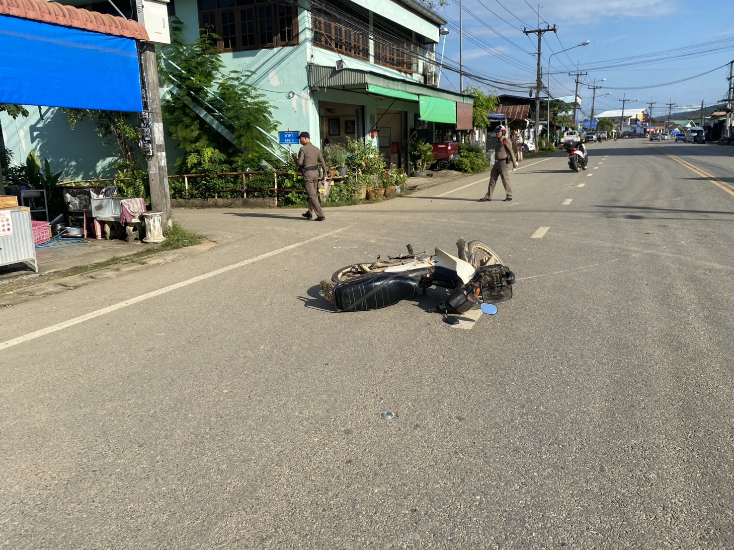 ร่วมกันตรวจที่เกิดเหตุ รถ จยย. ชนกับ รถ จยย.
