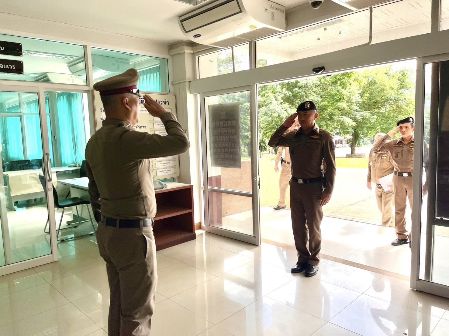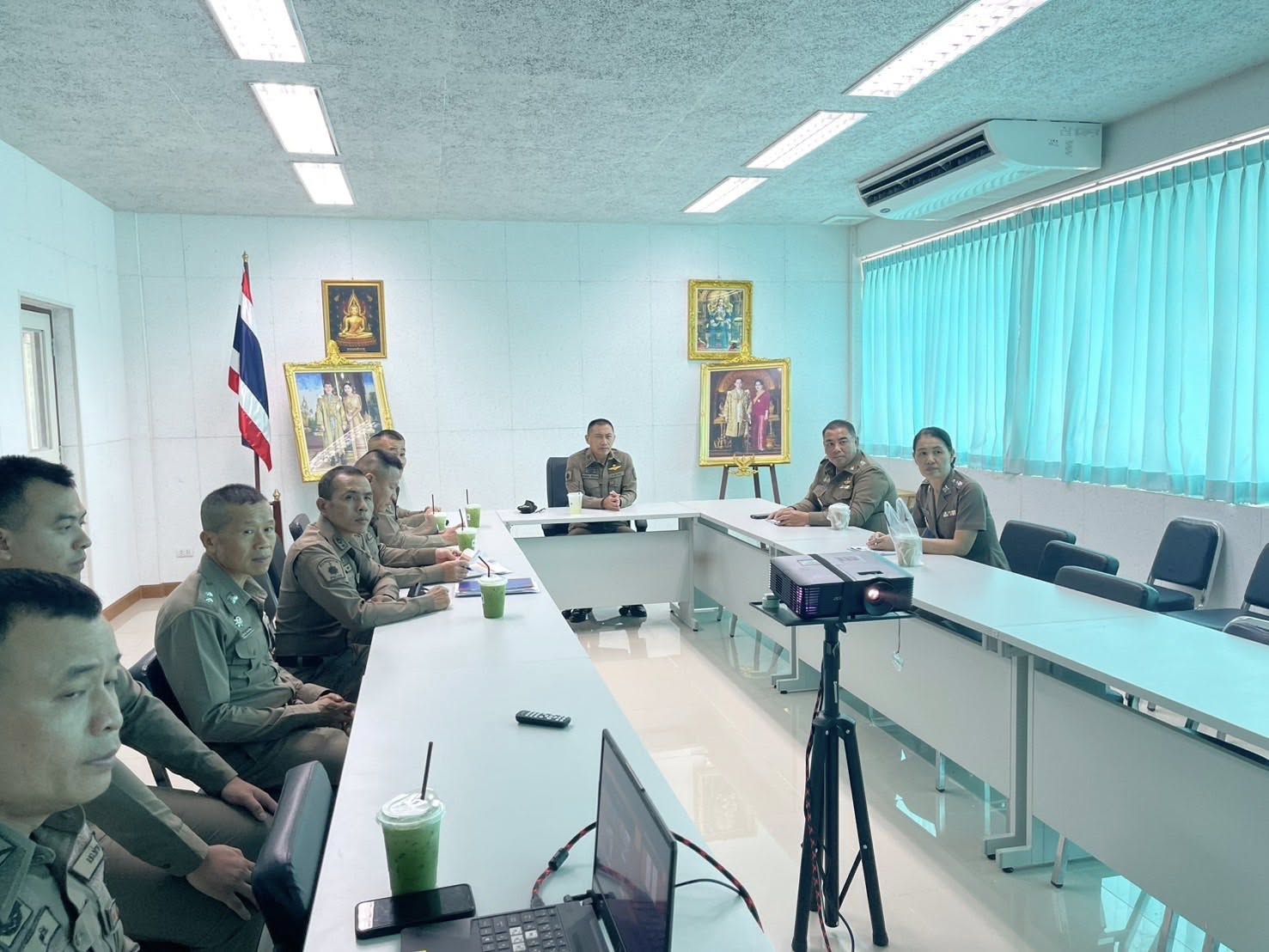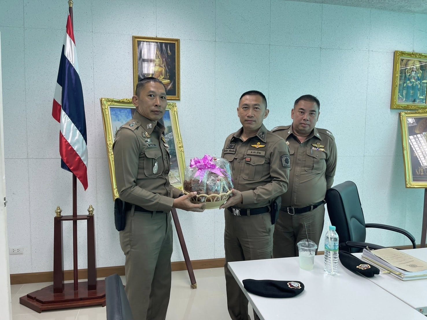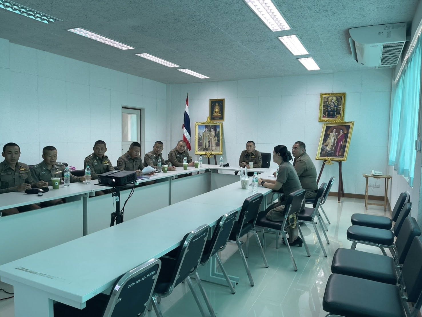 สภ.แม่จริม ภ.จว.น่าน วันนี้ ( 17 มิถุนายน 2568 เวลา 15.00 น. ) พ.ต.อ.เอกณสันต์ ศรีสองเมือง รอง ผบก.ภ.จว.น่าน มาตรวจเยี่ยม สภ.แม่จริม พบ พ.ต.อ.วสันติ์ หมั่นสลุง ผกก.สภ.แม่จริม, พ.ต.ท.ธวัชชัย คำชื่น รอง ผกก.ป.สภ.นาหมื่น ช่วยราชการ สภ.แม่จริม, พ.ต.ท.อธิป คำเงิน รอง ผกก.(สอบสวน) สภ.แม่จริม, พ.ต.ท.มนตรี ขอดเตชะ สวป.สภ.แม่จริม และ พ.ต.ท.ประทีป ต๊อดแก้ว สว.อก.สภ.แม่จริม พร้อมด้วยข้าราชการตำรวจ สภ.แม่จริม ให้การต้อนรับ ได้ประชุมชี้แจงข้อราชการและตรวจประเมินตามโครงการบ้านพัก ตร. น่าอยู่