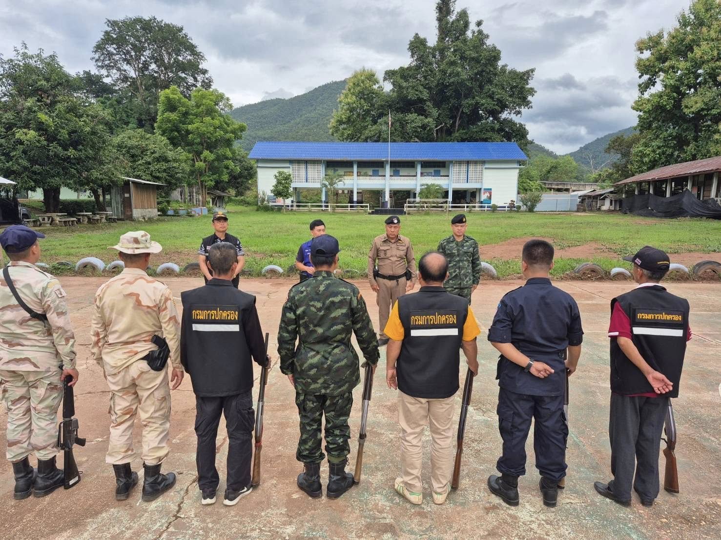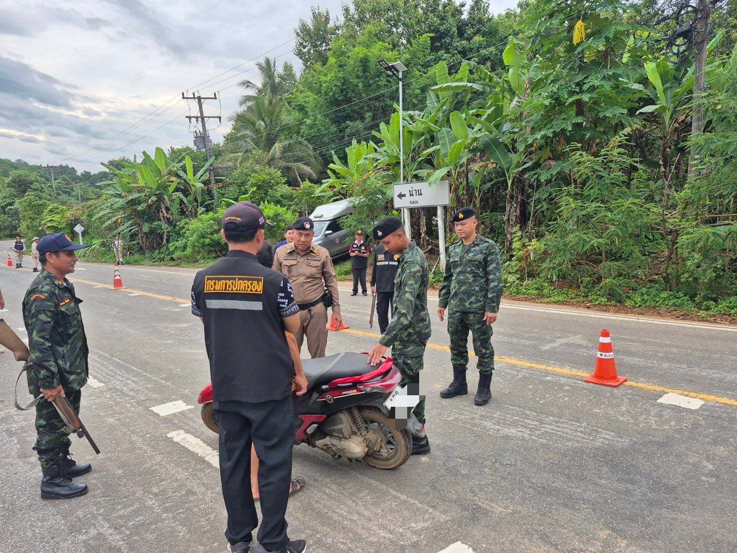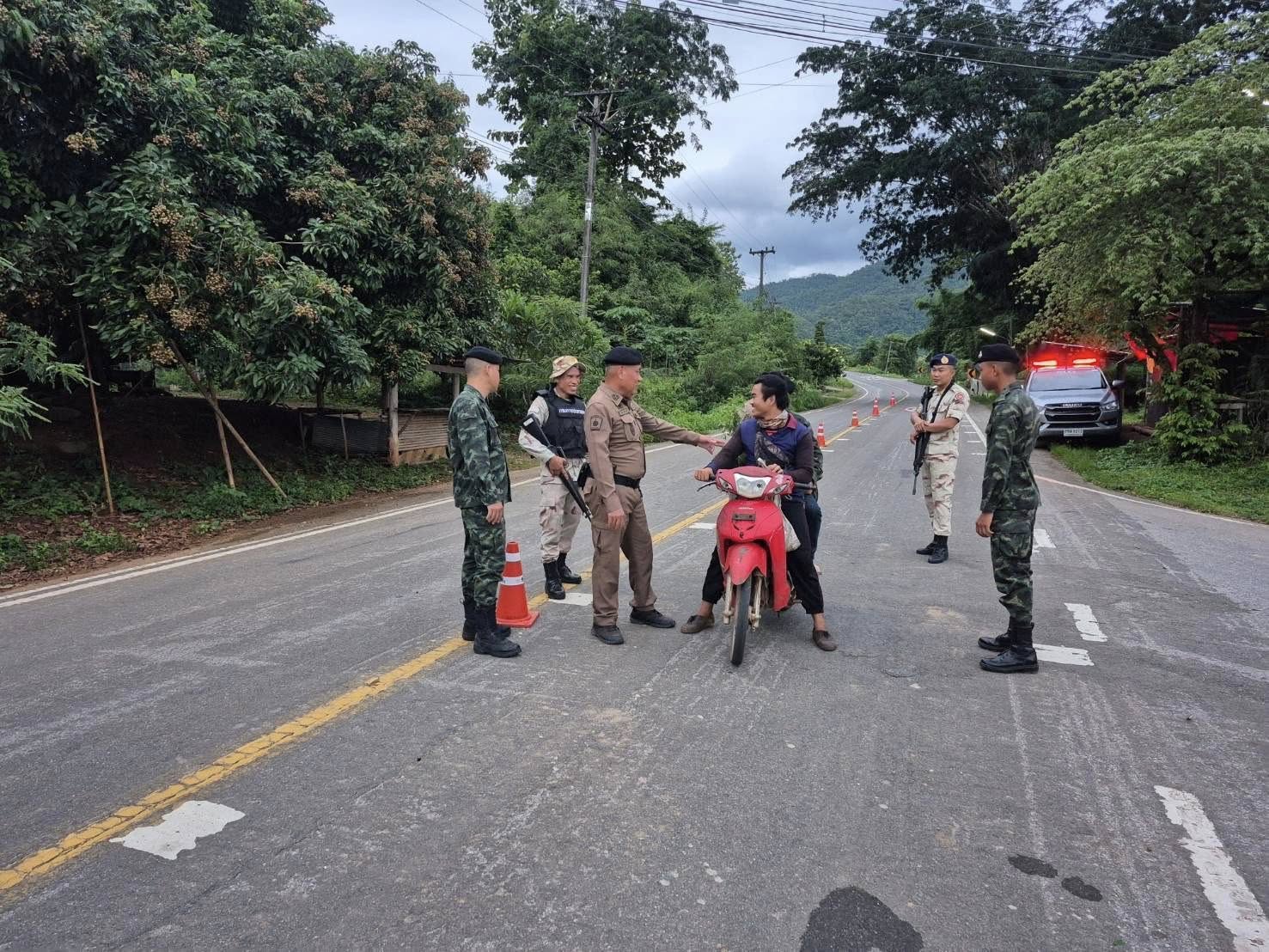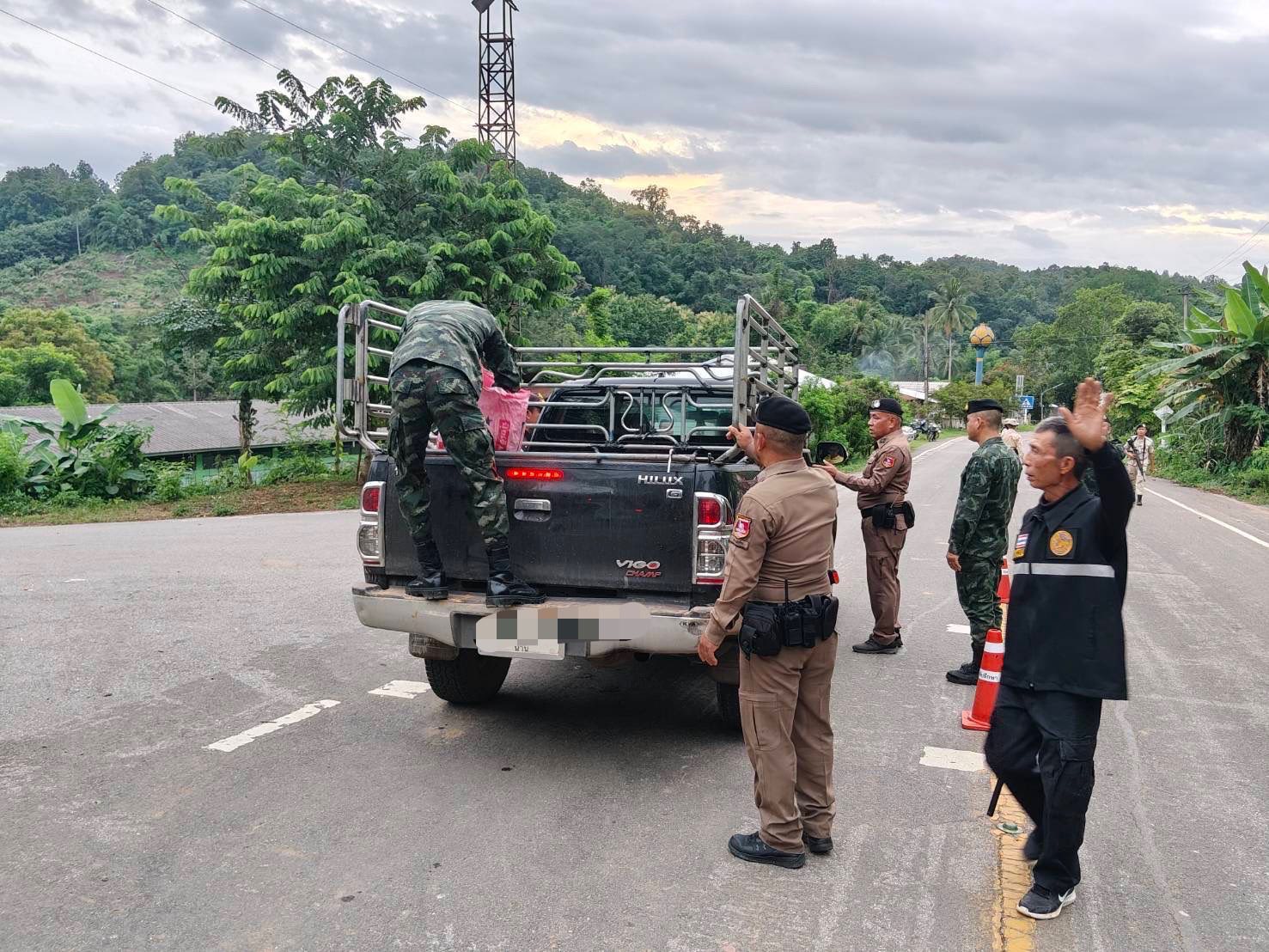 ร่วมกับเจ้าหน้าที่ฝ่ายปกครองอำเภอแม่จริม เจ้าหน้าที่ทหาร กำนันตำบลน้ำพาง และชุดรักษาความปลอดภัยของหมู่บ้านน้ำพาง ตั้งจุดตรวจจุดสกัด บริเวณสามแยกโรงเรียนบ้านน้ำพาง