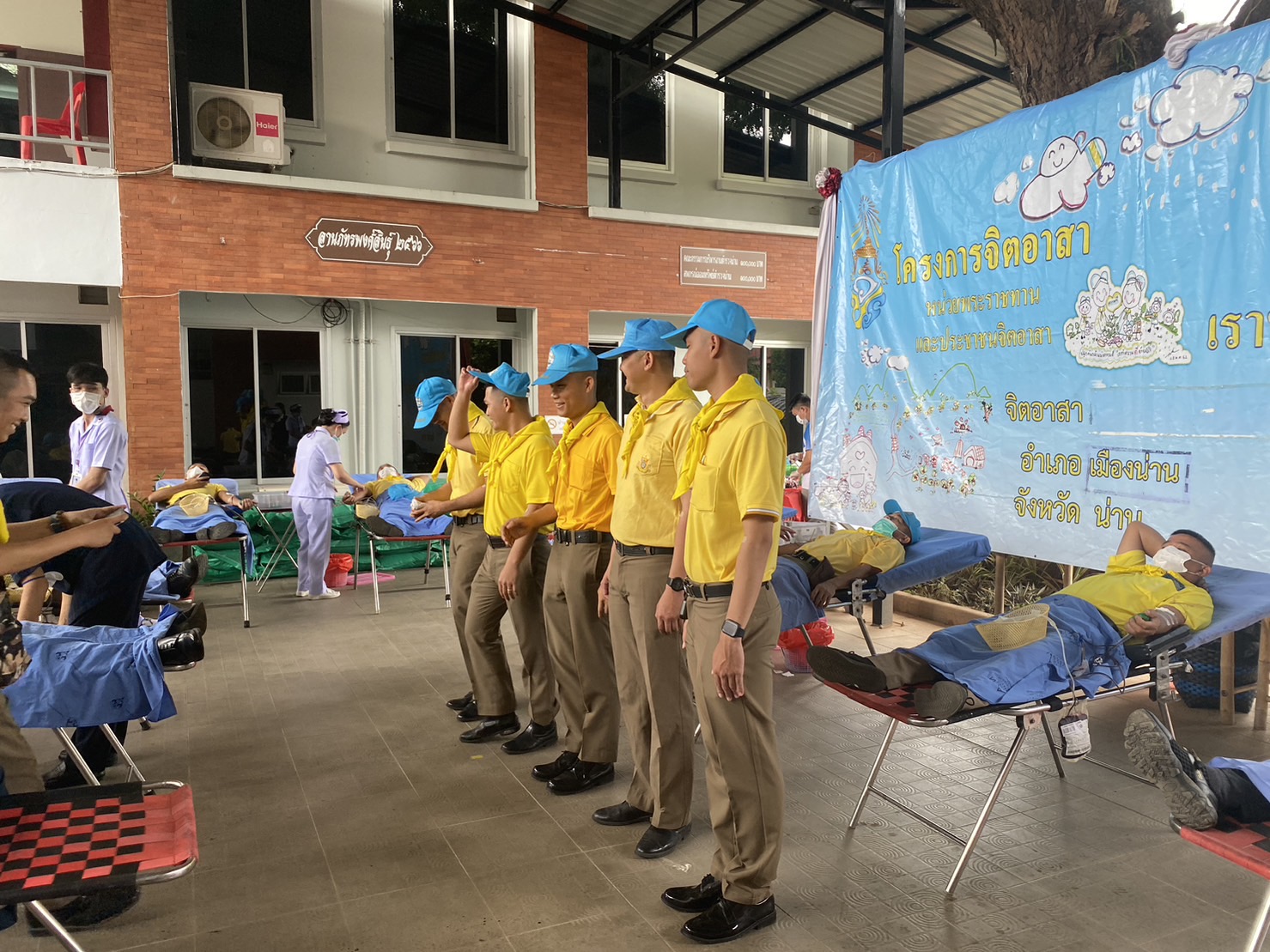 สภ.แม่จริม จว.น่าน วันนี้ (12 ก.ค. 2566) เวลา 09.00 น. โดยการอำนวยการของ พ.ต.อ.ปรีชา เนตรประชา ผกก.สภ.แม่จริม มอบหมายให้ ร.ต.ต.ศิโรฒม์ กันใจมา รอง สว.(สส) สภ.แม่จริม นำข้าราชการตำรวจจิตอาสา สภ.แม่จริม จำนวน 4 นาย ร่วมกิจกรรมจิตอาสา "เราทำความดี ด้วยหัวใจ" บริจาคโลหิต เพื่อถวายเป็นพระราชกุศลเนื่องในโอกาสวันคล้ายวันเฉลิมพระชนมพรรษา พระบาทสมเด็จพระปรเมนทรรามาธิบดีศรีสินทรมหาวชิราลงกรณ พระวชิรเกล้าเจ้าอยู่หัว รัชกาลที่ 10 ร่วมกับโรงพยาบาลน่านและเหล่ากาชาดจังหวัดน่าน ณ ตำรวจภูธรจังหวัดน่าน