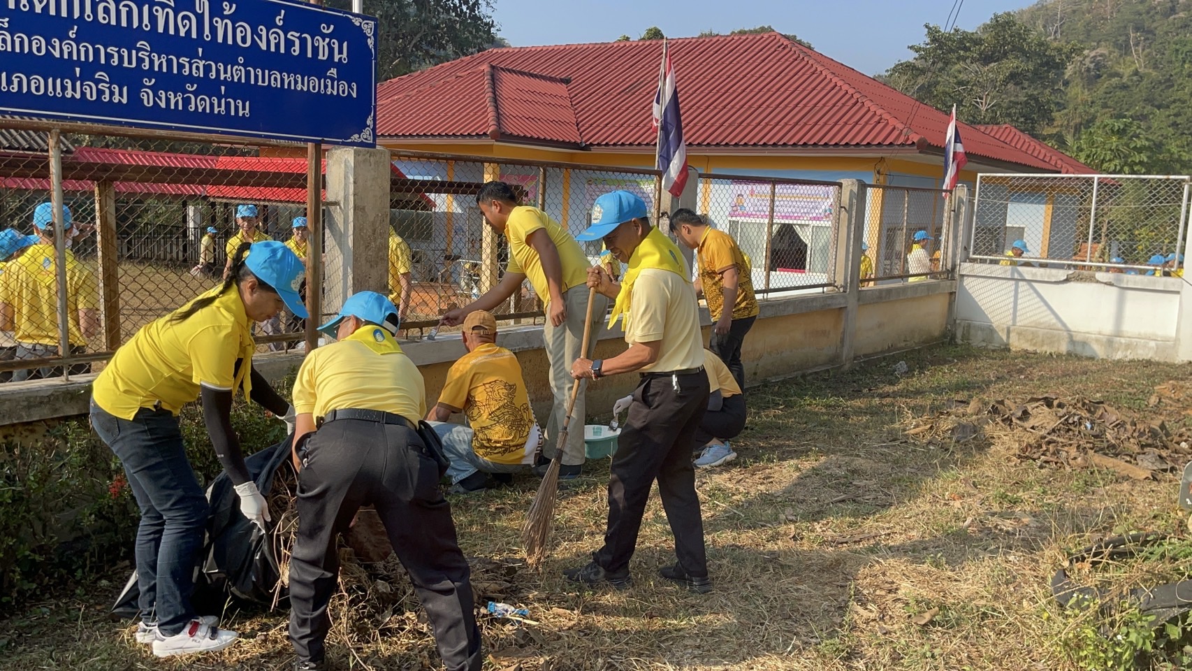 สภ.แม่จริม ภ.จว.น่าน วันนี้ (17 ม.ค.68 เวลา 09.00 น.) โดยการอำนวยการของ พ.ต.อ.วสันติ์ หมั่นสลุง ผกก.สภ.แม่จริม มอบหมายให้ พ.ต.ท.พรเทพ ป่าหวาย รรท.รอง ผกก.(สอบสวน) สภ.แม่จริม นำข้าราชการตำรวจจิตอาสา สภ.แม่จริมร่วมกับฝ่ายปกครองอำเภอแม่จริม, องค์การบริหารส่วนตำบลหมอเมือง จัดกิจกรรมจิตอาสาพระราชทาน “เราทำความดี ด้วยหัวใจ” เนื่องในวันพ่อขุนรามคำแหงมหาราชและวันสมเด็จพระนเรศวรมหาราช (วันยุทธหัตถี วันกองทัพไทย) กิจกรรมทำความสะอาดและทาสีรั้วบริเวณศูนย์พัฒนาเด็กเล็กองค์การบริหารส่วนตำบลหมอเมือง โดยมีหัวหน้าส่วนราชการ, ผู้บริหารท้องถิ่น และเจ้าหน้าที่องค์กรปกครองส่วนท้องถิ่น, กำนัน, ผู้ใหญ่บ้าน และประชาชนจิตอาสาพระราชทานในพื้นที่อำเภอแม่จริมเข้าร่วม จำนวน 150 คน
