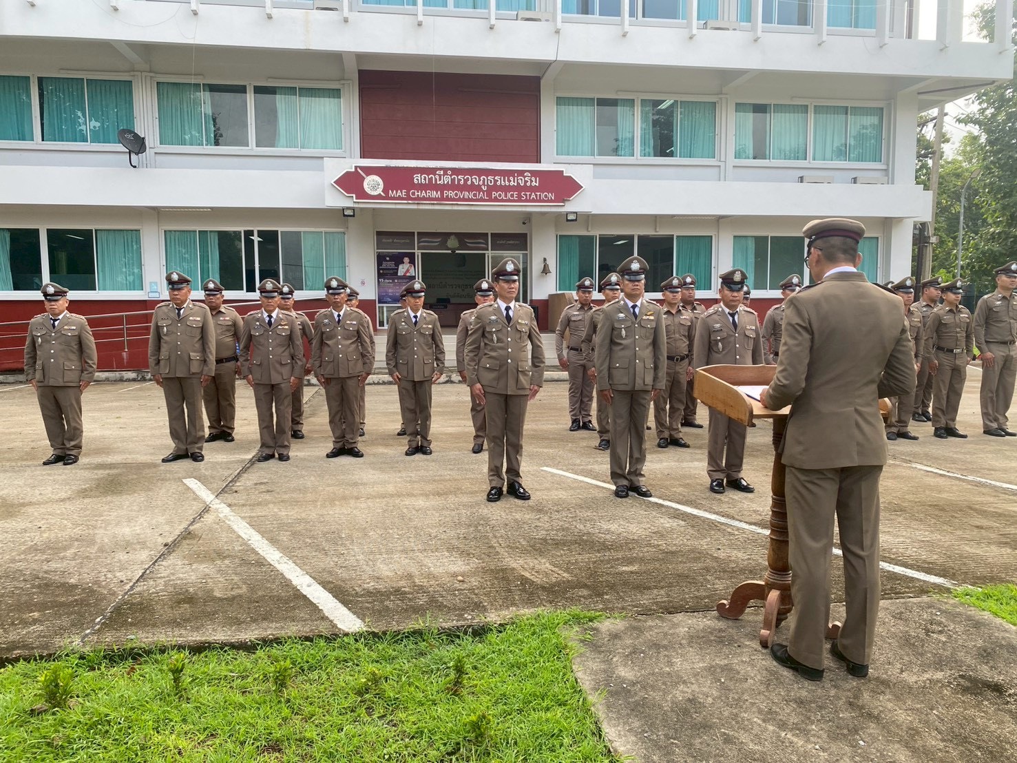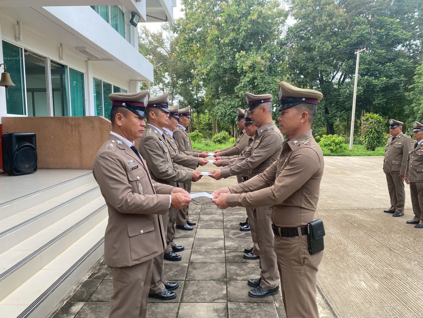 สภ.แม่จริม ภ.จว.น่าน วันนี้ (17 ต.ค.2568 เวลา 07.00 น. ) โดยการอำนวยการของ พ.ต.อ.วสันติ์ หมั่นสลุง ผกก.สภ.แม่จริม มอบหมายให้ พ.ต.ท.ธวัชชัย คำชื่น รอง ผกก ป.สภ.นาหมื่น ช่วยราชการ สภ.แม่จริม พร้อมด้วย พ.ต.ท.อธิป คำเงิน รอง ผกก.(สอบสวน) สภ.แม่จริม, พ.ต.ท.รุ่งโรจน์ มีชัย สว.(สอบสวน) สภ.แม่จริม, พ.ต.ท.ประทีป ต๊อดแก้ว สว.อก.สภ.แม่จริม นำข้าราชการตำรวจ สภ.แม่จริม ร่วมจัดพิธีวันสถาปนาสำนักงานตำรวจแห่งชาติ 17 ตุลาคม 2568 ได้เรียกแถวข้าราชการตำรวจเพื่อเคารพธงชาติ อ่านสาส์น ผบ.ตร. กล่าวคำปฏิญาณตน บทปลงใจ อุดมคติตำรวจ, บวงสรวงไหว้ศาลพระภูมิเจ้าที่ ประจำ สภ.ฯ, ทำพิธีทางศาสนา เลี้ยงเพลพระ เพื่อความเป็นสิริมงคล, มอบทุนการศึกษาให้บุตรธิดาข้าราชการตำรวจในสังกัด