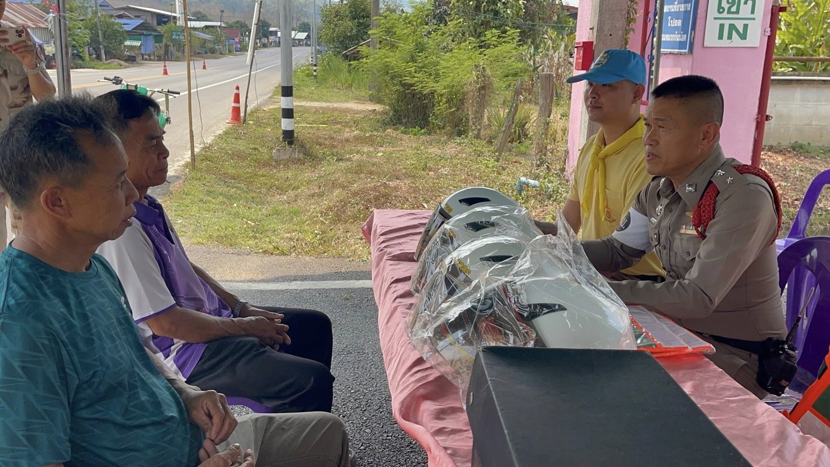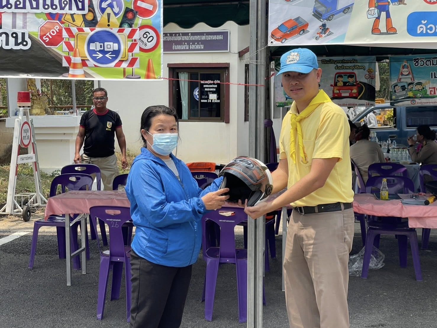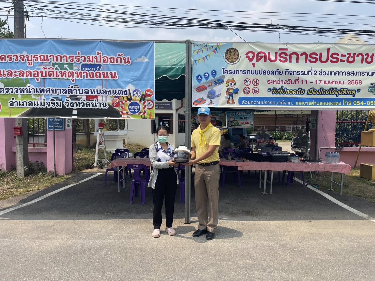 สภ.แม่จริม ภ.จว.น่าน วันนี้ (11 เม.ย.2568 เวลา 10.00 น.) โดยการอำนวยการของ พ.ต.อ.วสันต์ หมั่นสลุง ผกก.สภ.แม่จริม, พ.ต.ท.ธวัชชัย คำชื่น รอง ผกก.ป.สภ.นาหมื่น ช่วยราชการ สภ.แม่จริม พร้อมข้าราชการตำรวจชุดจิตอาสา สภ.แม่จริม ร่วมทำกิจกรรมจิตอาสาช่วงเทศกาลสงกรานต์ ประจำปี 2568 กิจกรรมประชาสัมพันธ์ให้กับนักท่องเที่ยวที่เดินทางเข้ามาในพื้นที่ แจ้งช่องทางในการติดต่อขอความช่วยเหลือ/แจ้งเหตุหมายเลขโทรศัพท์ 191, ประชาสัมพันธ์ Line@191, แจกแผ่นพับ, แนะนำการขับขี่ยานพาหนะให้ขับขี่ด้วยความระมัดระวัง, สวมหมวกกันน็อค 100% เมาไม่ขับ พร้อมกันนี้ได้ดำเนินการโครงการจิตอาสาจราจร รณรงค์การขับขี่ปลอดภัย สวมหมวกนิรภัย เพื่อลดอุบัติเหตุจราจร โดยได้มีการอบรมให้ความรู้แก่ประชาชนที่ไม่สวมหมวกนิรภัย และได้มอบหมวกนิรภัยให้แก่ผู้รับการอบรม ตลอดจนให้ขยายผลการรณรงค์ให้คนในครอบครัว บุคคลใกล้ชิด คนในชุมชนได้ตระหนักถึงความสำคัญของหมวกนิรภัยต่อไป ณ จุดตรวจบูรณาการร่วมจุดตรวจหน้าเทศบาลตำบลหนองแดง ต.หนองแดง อ.แม่จริม จว.น่าน