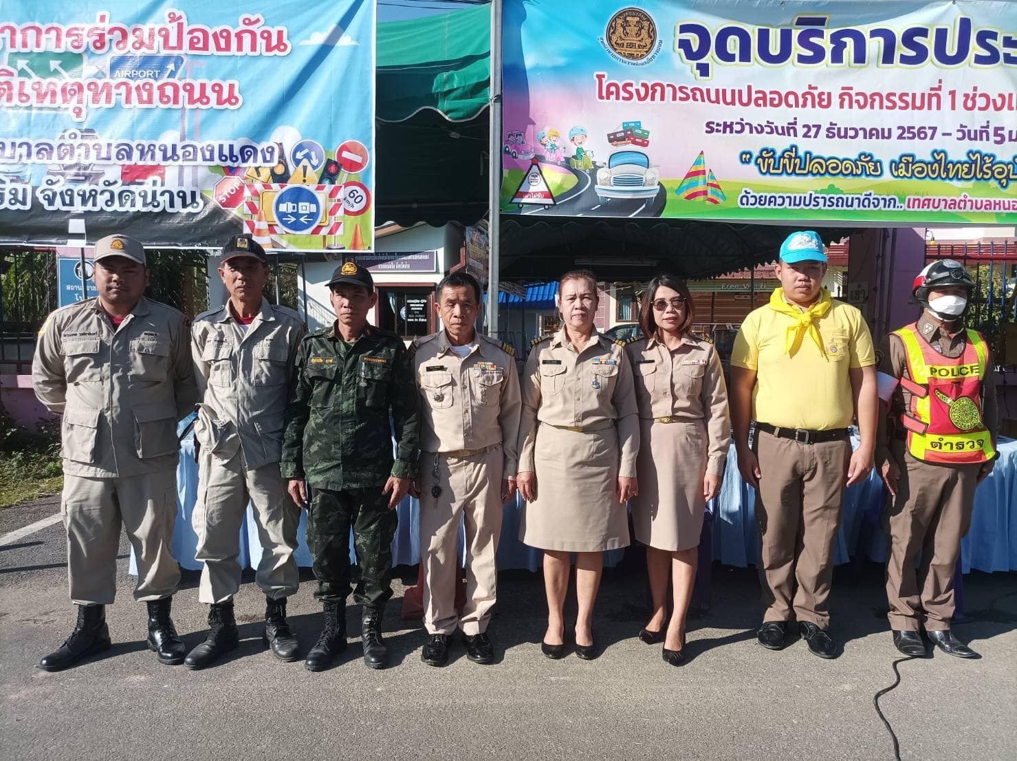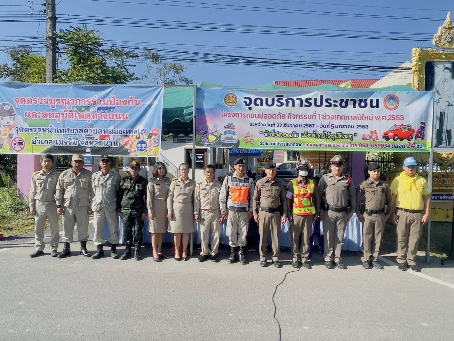 สภ.แม่จริม วันนี้ ( 28 ธ.ค.67 เวลา 09.00 น. โดยการอำนวยการของ พ.ต.อ.วสันต์ หมั่นสลุง ผกก.สภ.แม่จริม, พ.ต.ท.วีฬเวชน์ ร้านชิตวงค์ รอง ผกก.ป.สภ.แม่จริม พร้อมข้าราชการตำรวจจิตอาสา สภ.แม่จริม ร่วมทำกิจกรรมจิตอาสาช่วงเทศกาลปีใหม่ 2568 กิจกรรมประชาสัมพันธ์ให้กับนักท่องเที่ยวที่เดินทางเข้ามาในพื้นที่ แจ้งช่องทางในการติดต่อขอความช่วยเหลือ/แจ้งเหตุหมายเลขโทรศัพท์ ๑๙๑ ประชาสัมพันธ์ Line@191, แจกแผ่นพับ, แนะนำการขับขี่ยานพาหนะให้ขับขี่ด้วยความระมัดระวัง, สวมหมวกกันน็อค 100% เมาไม่ขับ พร้อมกันนี้ได้ดำเนินการโครงการจิตอาสาจราจร รณรงค์การขับขี่ปลอดภัย สวมหมวกนิรภัย เพื่อลดอุบัติเหตุจราจร โดยได้มีการอบรมให้ความรู้แก่ประชาชนที่ไม่สวมหมวกนิรภัย และได้มอบหมวกนิรภัยให้แก่ผู้รับการอบรม ตลอดจนให้ขยายผลการรณรงค์ให้คนในครอบครัว บุคคลใกล้ชิด คนในชุมชนได้ตระหนักถึงความสำคัญของหมวกนิรภัยต่อไป ณ จุดตรวจบูรณาการร่วมจุดตรวจหน้าเทศบาลตำบลหนองแดง ต.หนองแดง อ.แม่จริม จว.น่าน