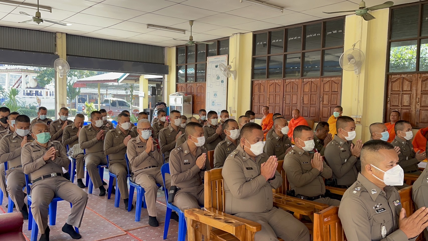 สภ.แม่จริม วันนี้ (19 ธ.ค.2565) เวลา 08.15 น. พ.ต.อ.สุวัฒน์ จินดาวรรณ ผกก.(สอบสวน) กลุ่มงานสอบสวน ภ.จว.น่าน รรท.ผกก.สภ.แม่จริม นำข้าราชการตำรวจ สภ.แม่จริม ร่วมประกอบพิธีสวดมนต์ ด้วยบทสวดโพชฌังคปริตร ถวายพระพรแด่ สมเด็จพระเจ้าลูกเธอ เจ้าฟ้าพัชรกิติยาภา นเรนทิราเทพยวดี กรมหลวงราชสาริณีสิริพัชร มหาวัชรราชธิดา ถวายพระพรให้พระองค์ทรงหายจากพระอาการประชวรในเร็ววัน ณ วัดนาคา ต.หนองแดง อ.แม่จริม จ.น่าน