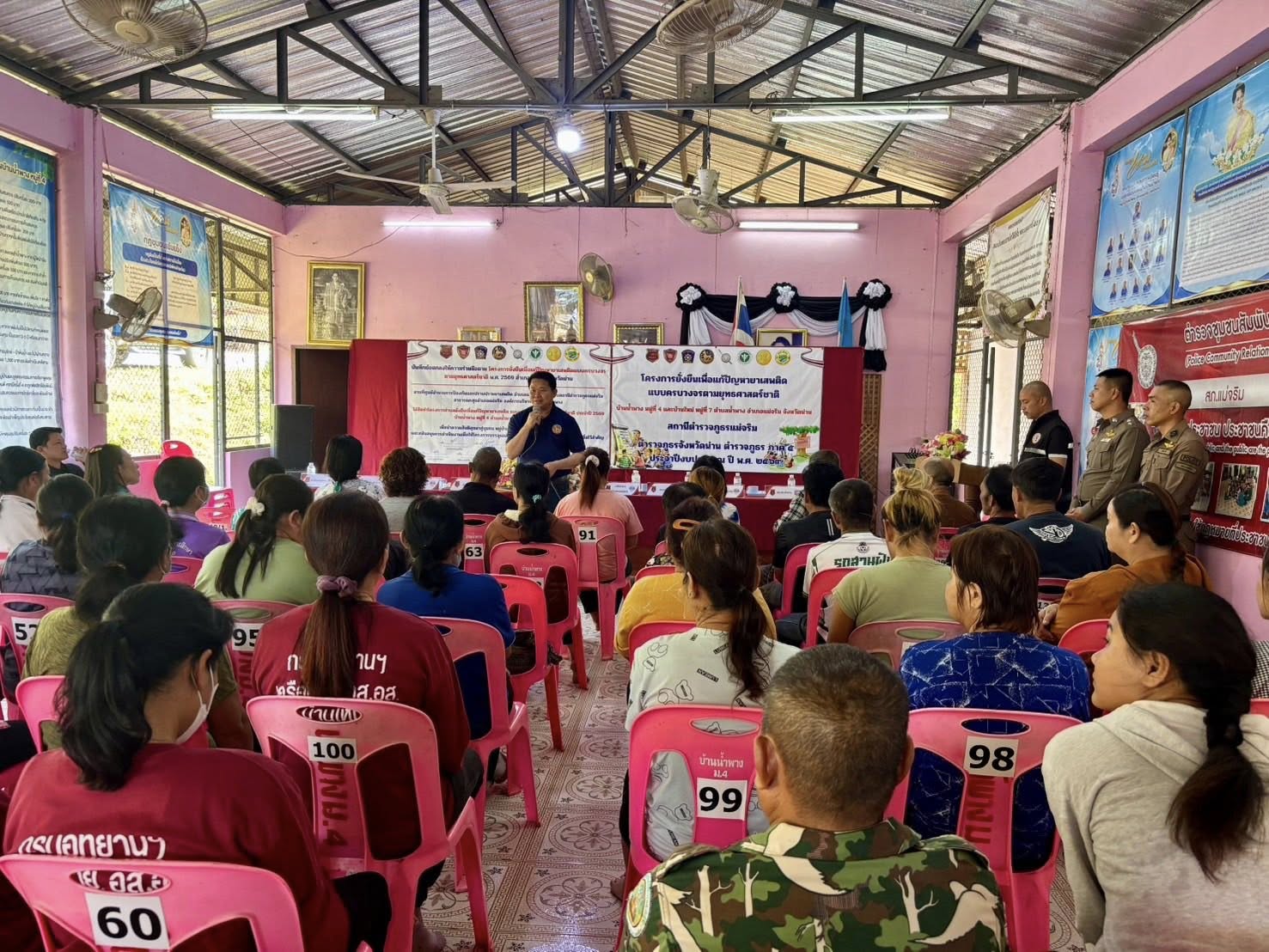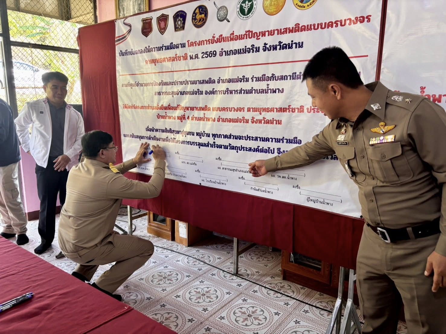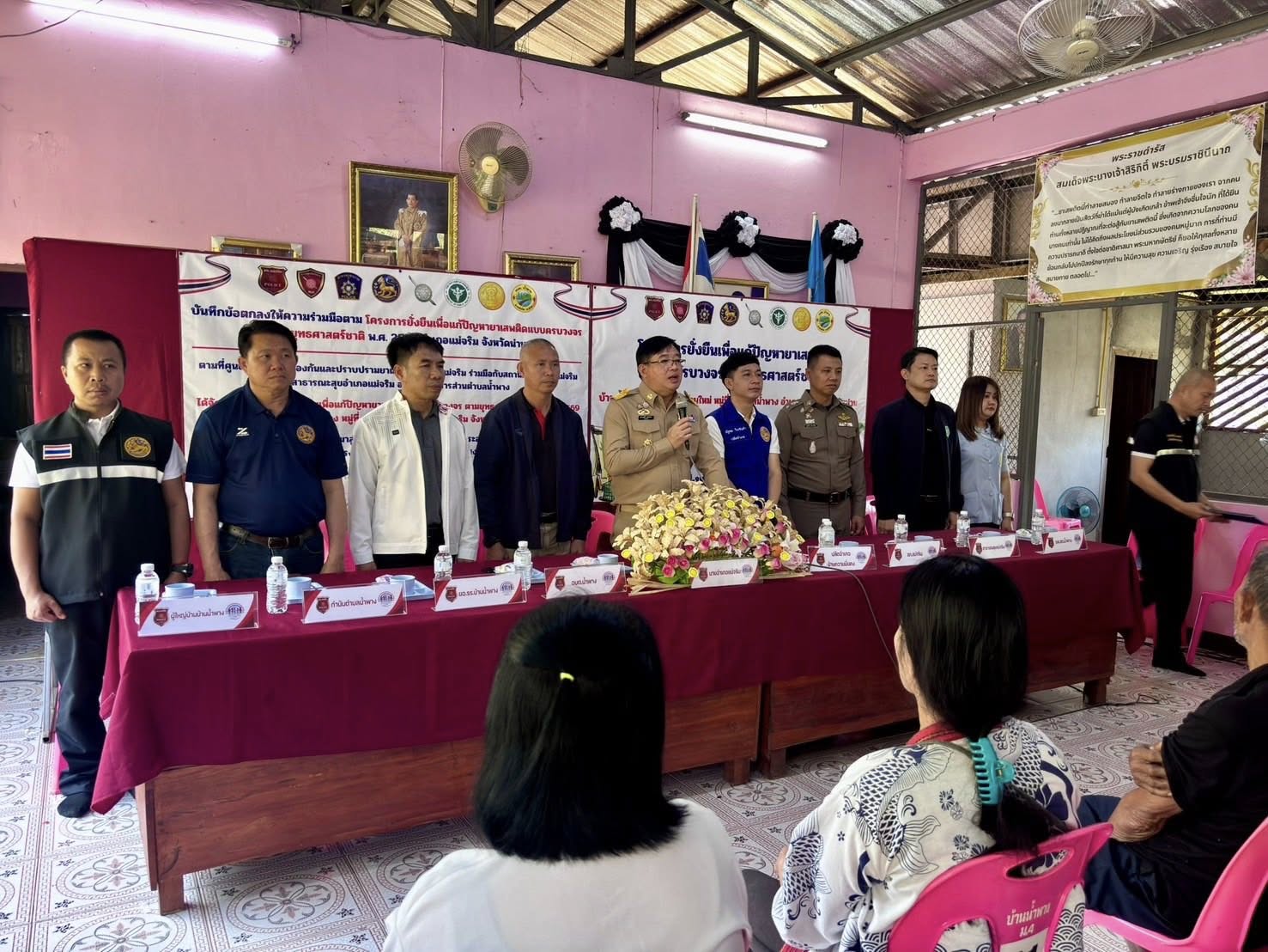 สภ.แม่จริม ภ.จว.น่าน วันนี้ ( 11 ก.พ. 2569 เวลา 10.00 น. ) นายเชาวฤทธิ์ บุตรดาสา นายอำเภอแม่จริม ประธานพิธีเปิดโครงการตำบลยั่งยืนเพื่อแก้ไขปัญหายาเสพติดแบบครบวงจรตามยุทธศาสตร์ชาติ ประจำปีงบประมาณ พ.ศ.2569 โดยมี พ.ต.ท.สุรศักดิ์ มีเสาเรือน รอง ผกก.สส.สภ.แม่จริม, พ.ต.ท.มนตรี ขอดเตชะ สวป.สภ.แม่จริม พร้อมชุดปฏิบัติการตำบลยั่งยืนฯ ของ สภ.แม่จริม พร้อมด้วยส่วนราชการภาคีเครือข่ายฯ ร่วมพิธีเปิดและลงนามบันทึกข้อตกลงให้ความร่วมมือ (MOU) โครงการตำบลยั่งยืนเพื่อแก้ไขปัญหายาเสพติดแบบครบวงจรตามยุทธศาสตร์ ประจำปีงบประมาณ พ.ศ.2569 โดยได้กำหนดหมู่บ้านเป้าหมายที่จะเข้าดำเนินการ ได้แก่ บ้านน้ำพาง ม.4 และ บ้านใหม่ ม.7 ต.น้ำพาง อ.แม่จริม จ.น่าน ณ หอประชุมประจำหมู่บ้านน้ำพาง ต.น้ำพาง อ.แม่จริม จ.น่าน
