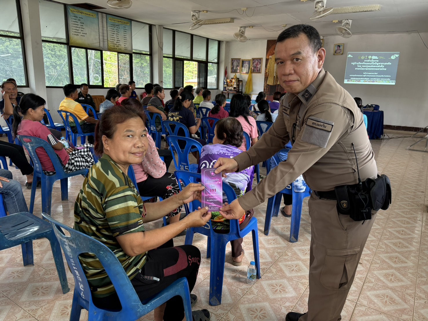 สภ.แม่จริม ภ.จว.น่าน วันนี้ (23 พ.ค.2567) เวลา 13.00 น. โดยการอำนวยการของ พ.ต.อ.วสันติ์ หมั่นสลุง ผกก.สภ.แม่จริม มอบหมายให้ ร.ต.อ.พงศ์พันธุ์ มีสา รอง สวป.สภ.แม่จริม พร้อมด้วยชุดตำรวจชุมชนและมวลชนสัมพันธ์ สภ.แม่จริม ร่วมเป็นวิทยากรตามโครงการแม่ของแผ่นดิน บรรยายให้ความรู้เรื่องยาเสพติด พร้อมทั้งได้ประชาสัมพันธ์โครงการศูนย์รับแจ้งเหตุฉุกเฉิน เหตุด่วน เหตุร้าย 191 ภ.จว.น่าน ให้กับประชาชนในพื้นที่ บ้านหนองแดง ต.หนองแดง อ.แม่จริม จ.น่าน มีประชาชนเข้ารับการรับฟังประมาณ 60 คน พร้อมทั้งได้แจกแผ่นพับประชาสัมพันธ์ แจ้งเหตุฉุกเฉิน เหตุด่วนเหตุร้าย 191