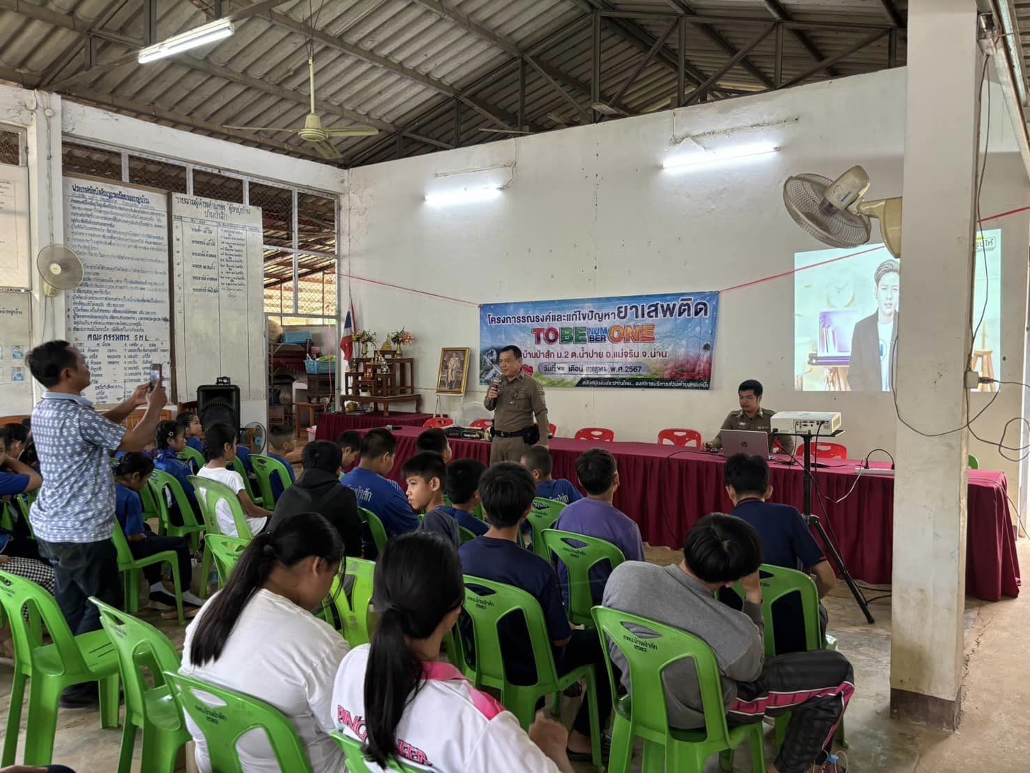 สภ.แม่จริม ภ.จว.น่าน วันนี้ ( 22 ก.ค.67 ) เวลา 09.00 น. โดยการอำนวยการของ พ.ต.อ.วสันติ์ หมั่นสลุงผกก.สภ.แม่จริม, พ.ต.ท. วีฬเวชน์ ร้านชิตวงศ์ รองผกก.ป. สภ.แม่จริม, พ.ต.ท.มนตรี ขอดเตชะ สวป.สภ.แม่จริม มอบหมายให้ ร.ต.อ.พงศ์พันธุ์ มีสา รองสวป.สภ.แม่จริม พร้อมด้วย ตำรวจชุดชุมชนและมวลชนสัมพันธ์ สภ.แม่จริม ร่วมเป็นวิทยากรบรรยายให้ความรู้เด็กนักเรียนโรงเรียนบ้านป่าสักและชาวบ้านป่าสัก เรื่องยาเสพติดและภัยออนไลน์ ณ หอประชุมบ้านป่าสัก ม.2 ต.น้ำปาย อ.แม่จริม จ.น่าน