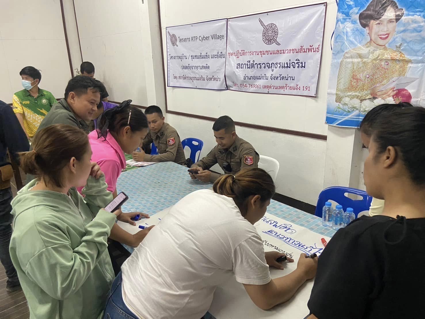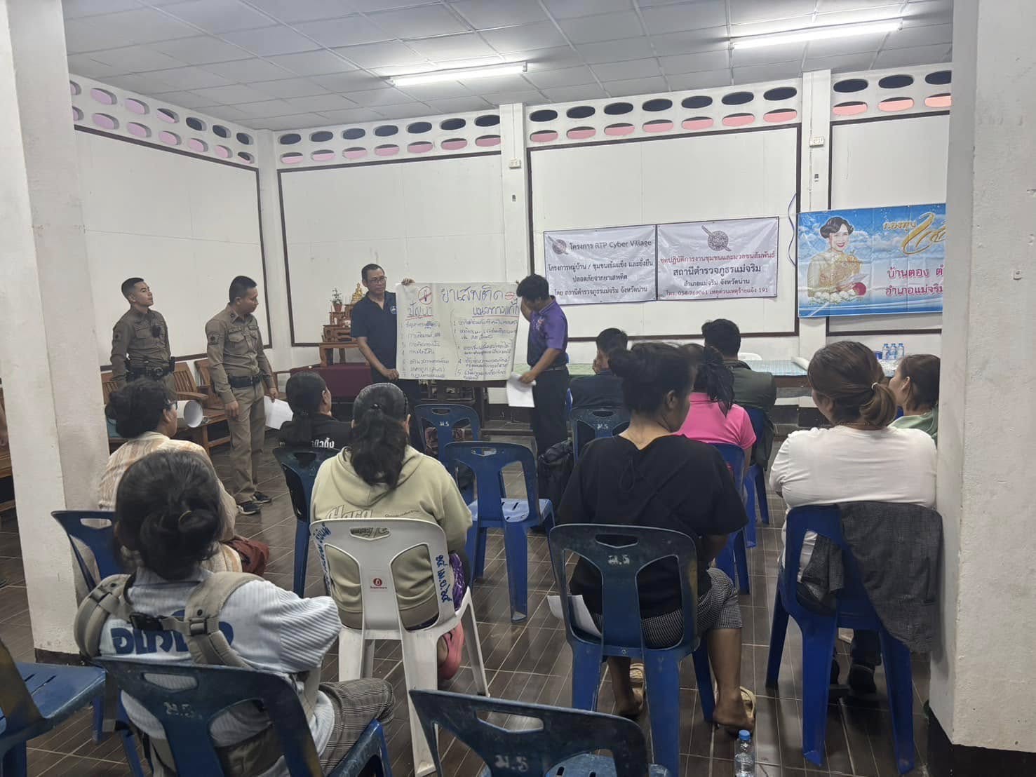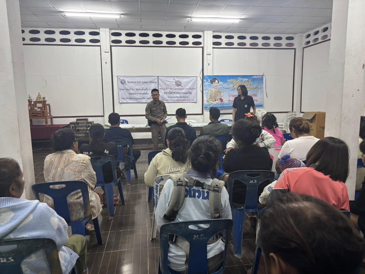 สภ.แม่จริม ภ.จว.น่าน วันนี้ (21 ม.ค.68 เวลา 17.00 น.) โดยการอำนวยการของ พ.ต.อ.วสันติ์หมั่นสลุง ผกก.สภ.แม่จริม, พ.ต.ท. วีฬเวชน์ ร้านชิตวงค์ รองผกก.ป.สภ.แม่จริม, พ.ต.ท.มนตรี ขอดเตชะ สวป.สภ.แม่จริม มอบหมายให้ ร.ต.อ.พงศ์พันธุ์ มีสา รอง สวป.สภ.แม่จริม พร้อมด้วย เจ้าหน้าที่ชุดปฏิบัติการงานชุมชนและมวลชนสัมพันธ์ (ชมส.) ร่วมโครงการดำเนินงานชุมชนสัมพันธ์และการมีส่วนร่วมของประชาชนในการป้องกันอาชญากรรม เพื่อขับเคลื่อนไทยไปด้วยกัน (Stronger Together) และตามโครงการ RTP Cyber Villag ประจำปีงบระมาณ 2568 ในพื้นที่หมู่บ้าน/ชุมชนเป้าหมาย ณ หอประชุมประจำหมู่บ้านตอง ม.5 ต.แม่จริม อ.เเม่จริม จว.น่าน ดำเนินการดังนี้ 1.การประชาสัมพันธ์เกี่ยวการมีส่วนร่วมของประชาชนในการป้องกันอาชญากรรมและการสร้างกลุ่มไลน์หมู่บ้าน 2.ประชาสัมพันธ์การรับแจ้งเหตุฉุกเฉินหมายเลข 191และป้องกันการโทรก่อกวน ฯลฯ 3.ดำเนินการประชาสัมพันธ์การปฏิบัติตามกฎจราจรเพื่อป้องกันและลดอุบัติเหตุทางท้องถนน การสวมหมวกนิรภัย 100% 4.การปฏิบัติตามกฎหมายจราจรโดยเคร่งครัด เมาไม่ขับ ห้ามดื่มสุราในขณะขับรถ 5.ประชาสัมพันธ์เพื่อป้องกันตนเองจาก 18 กลโกงของมิจฉาชีพ ที่ใช้หลอกตกเป็นเหยื่อ บนโลกออนไลน์ ผลการปฏิบัติเป็นไปด้วยความเรียบร้อย โดยได้รับความร่วมมือจากผู้นำชุมชน,คณะกรรมการหมู่บ้านและประชาชนเป็นอย่างดี
