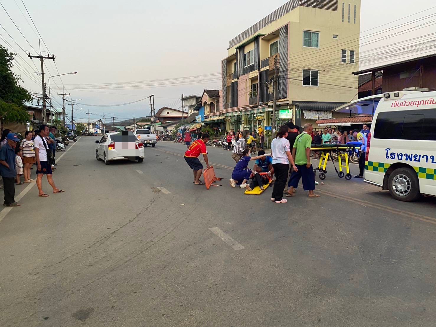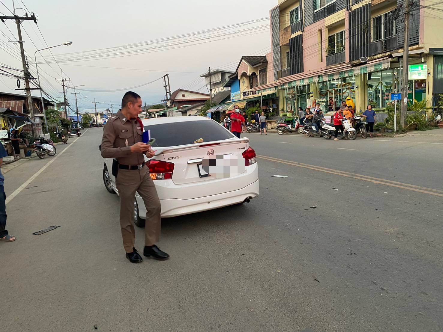 ร้อยเวร 30 พร้อมผู้ช่วยพนักงานสอบสวนเวร ออกปฏิบัติหน้าที่ตรวจสอบที่เกิดเหตุพบรถเก๋งชนกับรถจักรยานยนต์