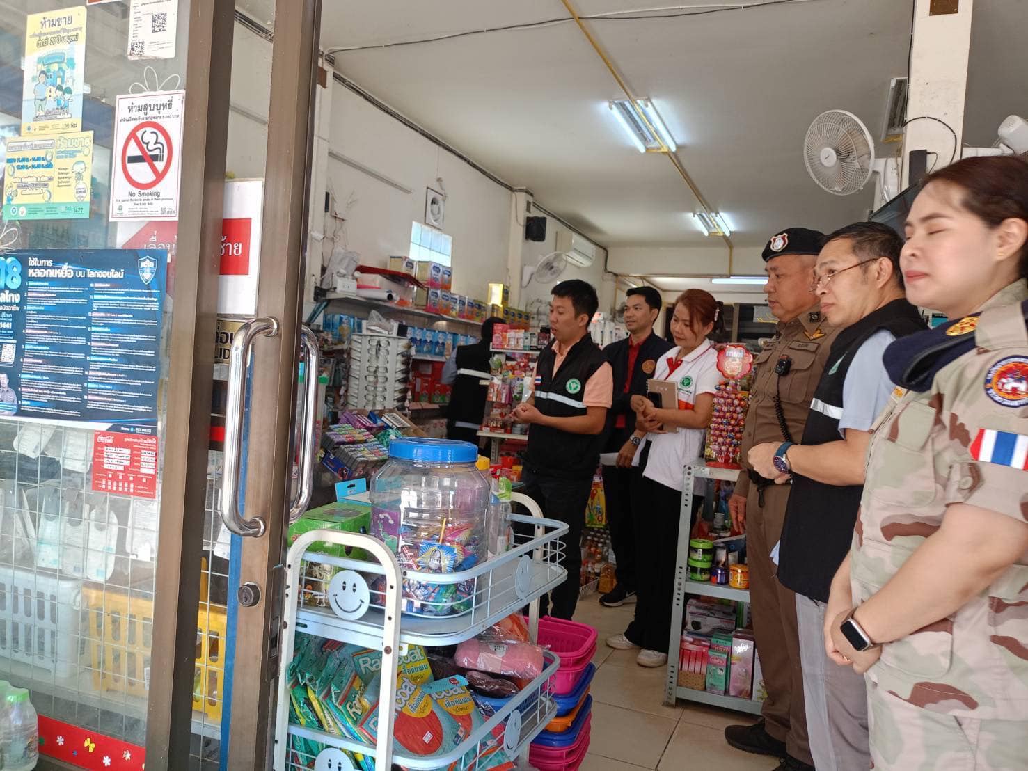 สภ.แม่จริม ภ.จว.น่าน วันนี้ (19 พ.ย.67) เวลาประมาณ 09.30 น. โดยการอำนวยการของ พ.ต.อ.วสันต์ หมั่นสลุง ผกก.สภ.แม่จริม, พ.ต.ท.วีฬเวชน์ ร้านชิตวงศ์ รอง ผกก.ป.สภ.แม่จริม, พ.ต.ท.มนตรี ขอดเตชะ สวป.สภ.แม่จริม มอบหมายให้ ร.ต.อ.ชิดชัย ปานต๊ะระษี รอง สวป.สภ.แม่จริม ปฎิบัติหน้าที่ร้อยเวร 20 พร้อมสายตรวจรถยนต์ ออกตรวจร่วมกับเจ้าหน้าที่สาธารณสุขจังหวัดน่าน, เจ้าหน้าที่สาธารณสุขอำเภอแม่จริม, เจ้าหน้าที่โรงพยาบาลแม่จริม และเจ้าหน้าที่ฝ่ายปกครองอำเภอแม่จริม ลงพื้นที่ตรวจเตือนประชาสัมพันธ์ เฝ้าระวังและบังคับใช้กฎหมายตามพระราชบัญญัติควบคุมเครื่องดื่มแอลกอฮอล์ พ.ศ.2551 และพระราชบัญญัติควบคุมผลิตภัณฑ์ยาสูบ พ.ศ.2560 เหตุการณ์ทั่วไปปกติ