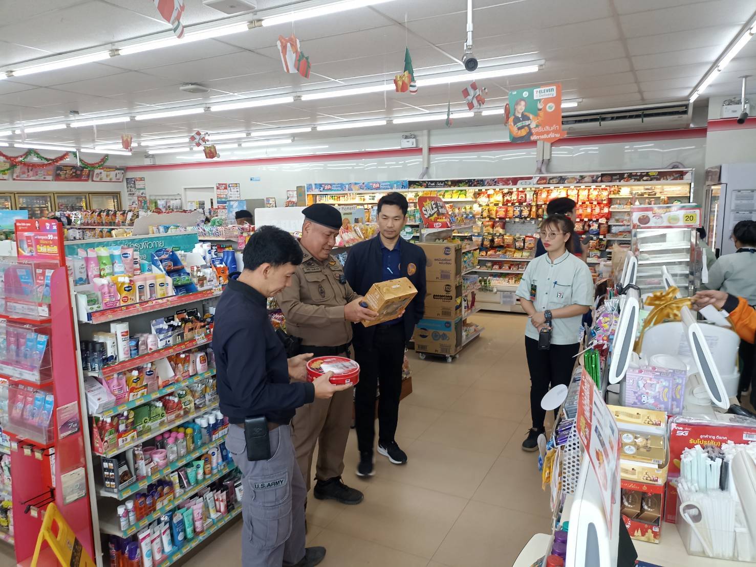 🚨 สภ.แม่จริม ภ.จว.น่าน วันนี้ (20 ธ.ค.67) เวลา 13.00 น. โดยการอำนวยการของ พ.ต.อ.วสันติ์ หมั่นสลุง ผกก.สภ.แม่จริม, พ.ต.ท.วีฬเวชน์ ร้านชิตวงศ์ รอง ผกก.ป.สภ.แม่จริม, พ.ต.ท.มนตรี ขอดเตชะ สวป.สภ.แม่จริม มอบหมายให้ ร.ต.อ.ชิดชัย ปานต๊ะระษี รอง สวป.สภ.แม่จริม ปฏิบัติหน้าที่ร้อยเวร 20 พร้อมด้วยสายตรวจ ร่วมกับเจ้าหน้าที่ฝ่ายปกครองอำเภอแม่จริม,เจ้าหน้าที่กองสาธารณสุข เทศบาลตำบลหนองแดง, เจ้าหน้าที่สาธารณสุขอำเภอแม่จริม ลงพื้นที่ตรวจสอบผู้ประกอบธุรกิจจำหน่ายกระเช้าของขวัญปีใหม่ เพื่อเป็นการคุ้มครองสิทธิของผู้บริโภคที่เลือกซื้อกระเช้าของขวัญในเทศกาลปีใหม่ได้รับสินค้าที่ได้มาตรฐานและปลอดภัย ตาม พ.ร.บ.คุ้มครองผู้บริโภค พ.ศ.2522 และประชาสัมพันธ์แจ้งเตือนเฝ้าระวังและบังคับใช้กฎหมายตามพระราชบัญญัติควบคุมเครื่องดื่มแอลกอฮอล์ พ.ศ.2551 และ พระราชบัญญัติควบคุมผลิตภัณฑ์ยาสูบ พ.ศ.2550 ในเขตพื้นที่รับผิดชอบ