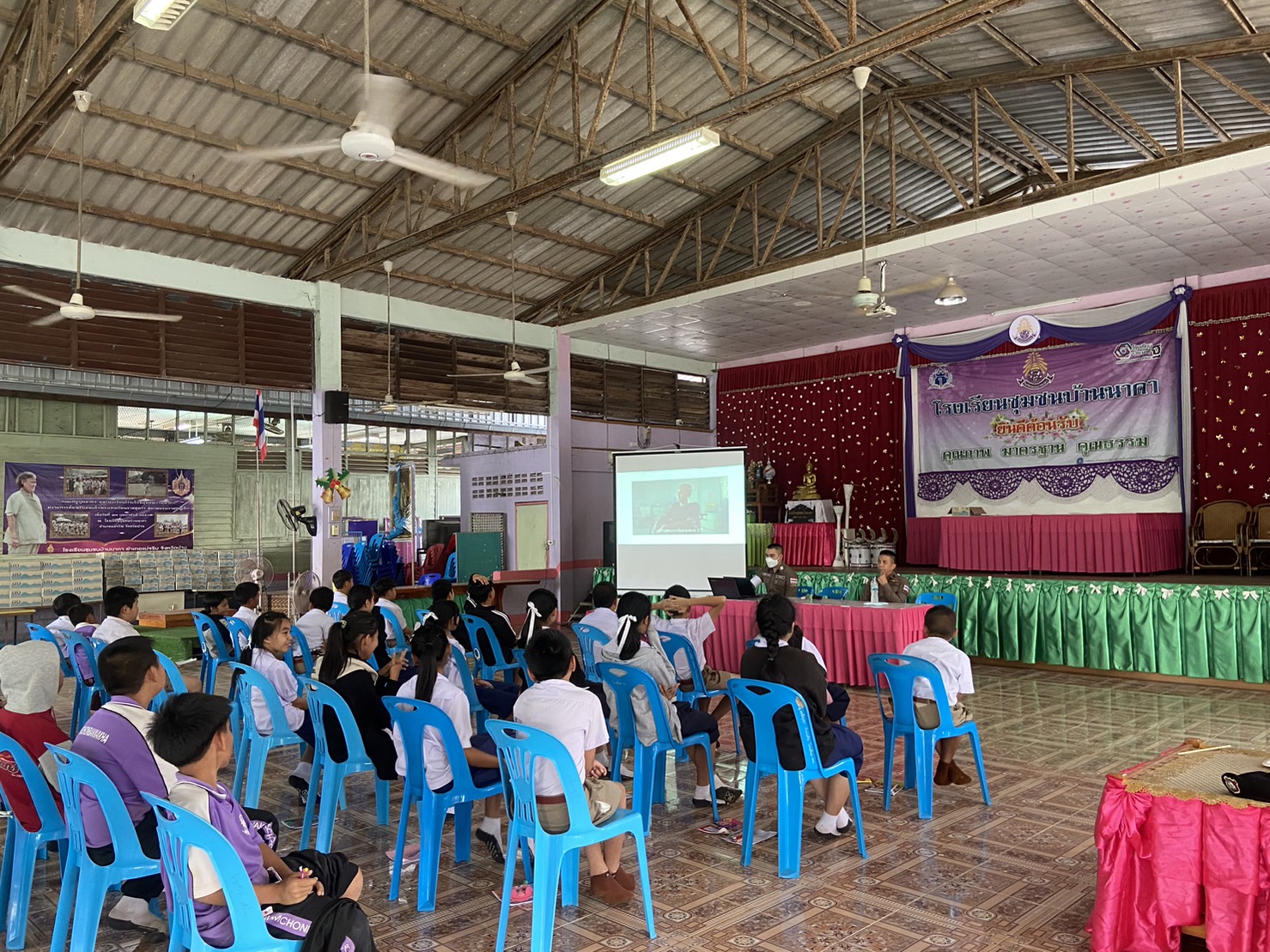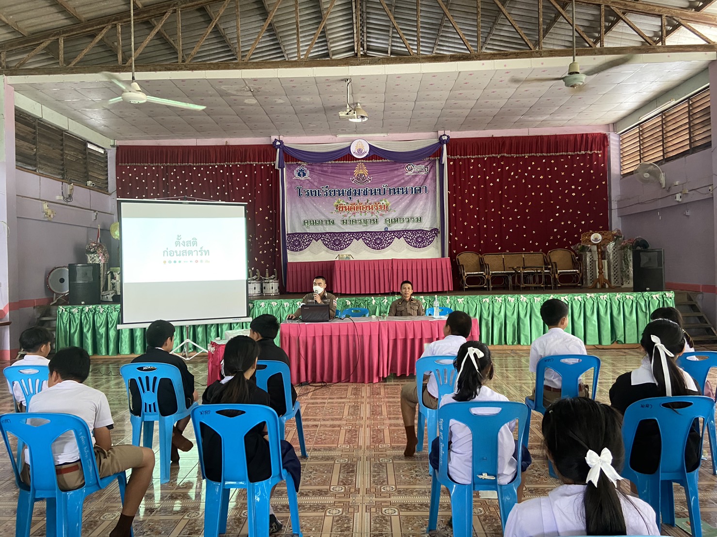 สภ.แม่จริม ภ.จว.น่าน วันนี้ (25 มกราคม 2567) เวลา 13.30 - 15.30 น. โดยการอำนวยการของ พ.ต.อ.วสันติ์ หมั่นสลุง ผกก.สภ.แม่จริม , พ.ต.ท.วีฬเวชน์ ร้านชิตวงศ์ รอง ผกก.ป.สภ.แม่จริม , พ.ต.ท.มนตรี ขอดเตชะ สวป.สภ.แม่จริม มอบหมายให้ ร.ต.อ.วิชาญ ชินายศ รอง สวป.สภ.แม่จริม พร้อมด้วยสายตรวจรถยนต์ , ชุดมวลชนสัมพันธ์ และเจ้าหน้าที่ตำรวจจราจร เป็นวิทยากร โครงการ “สถานศึกษาสีขาวปลอดยาเสพติดและอบายมุข” อบรมให้ความรู้โทษและพิษภัยของยาเสพติดและกฏหมายจราจรเบื่องต้น ให้แก่นักเรียน โรงเรียนชุมชนบ้านนาคา ต.หนองแดง อ.แม่จริม จ.น่าน
