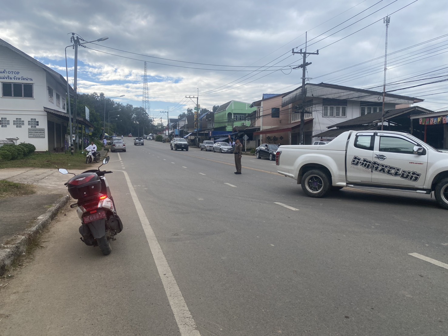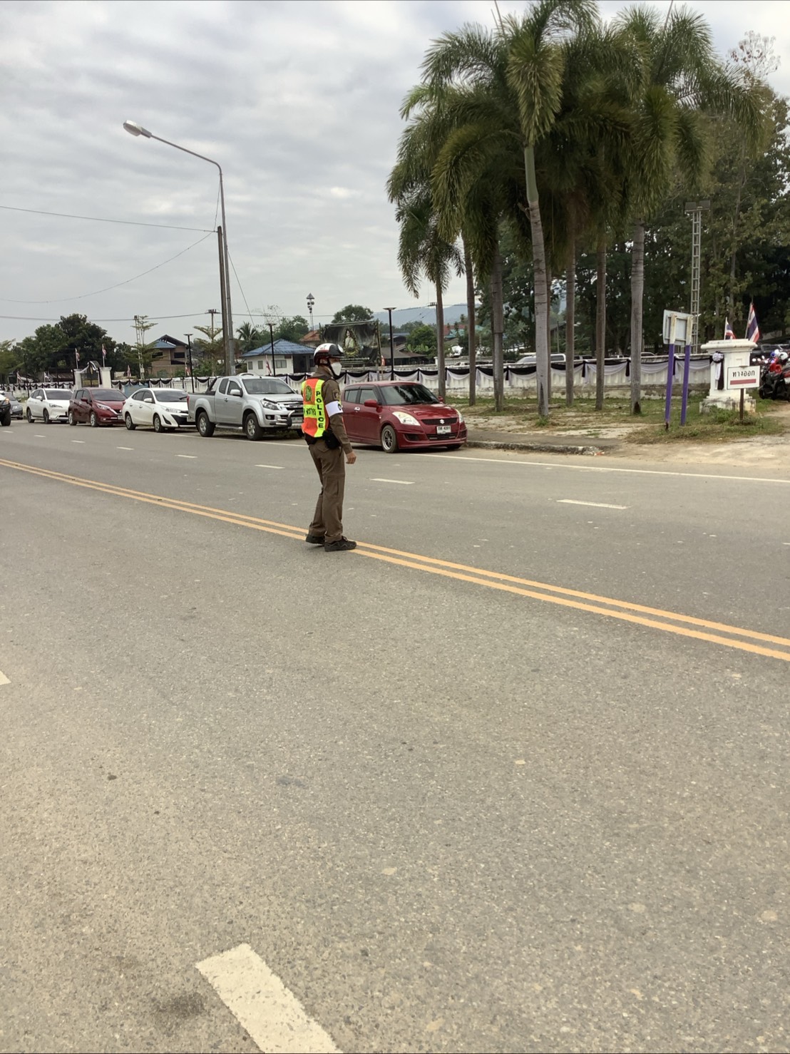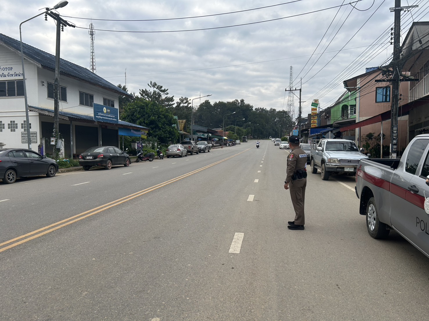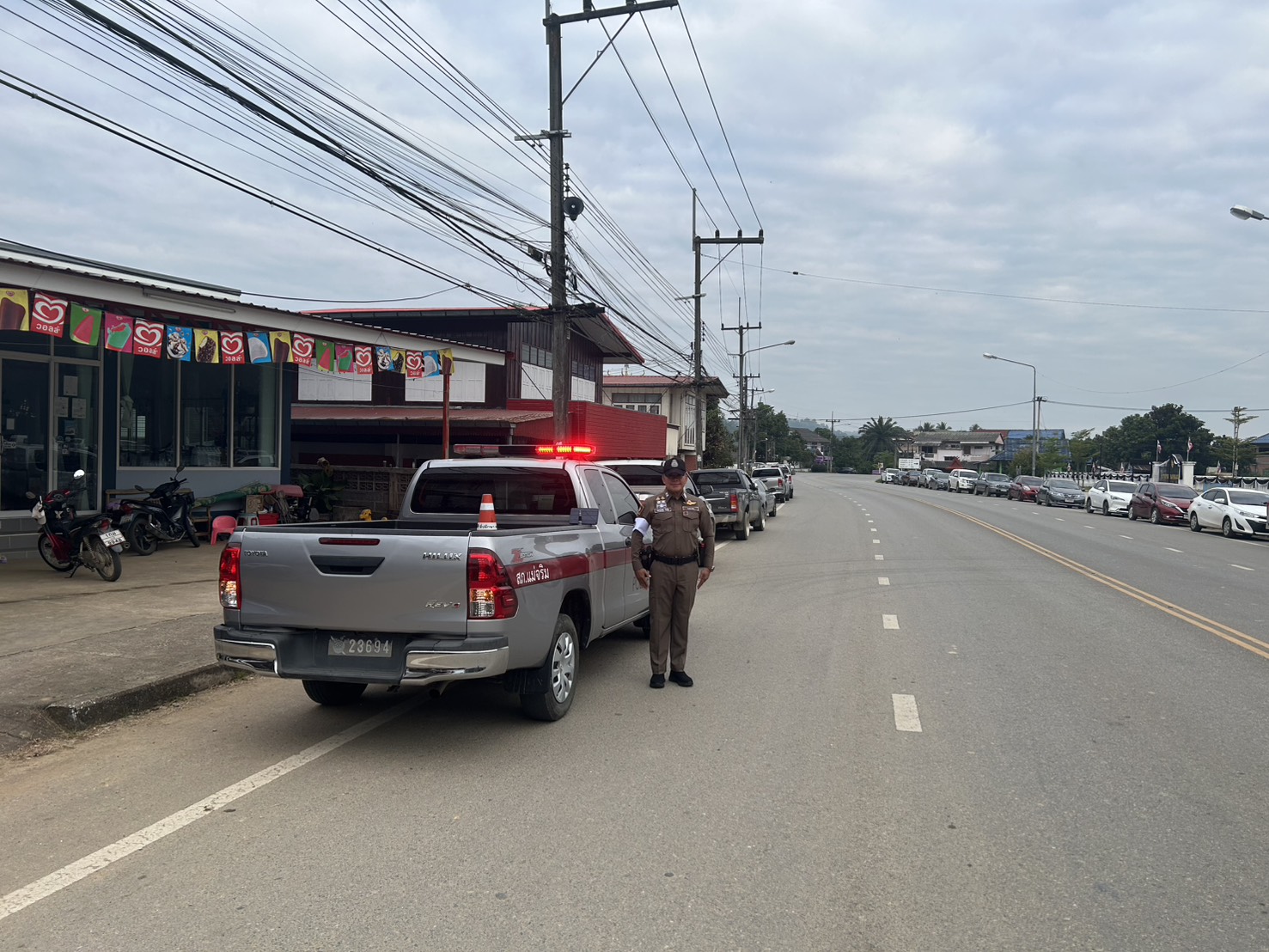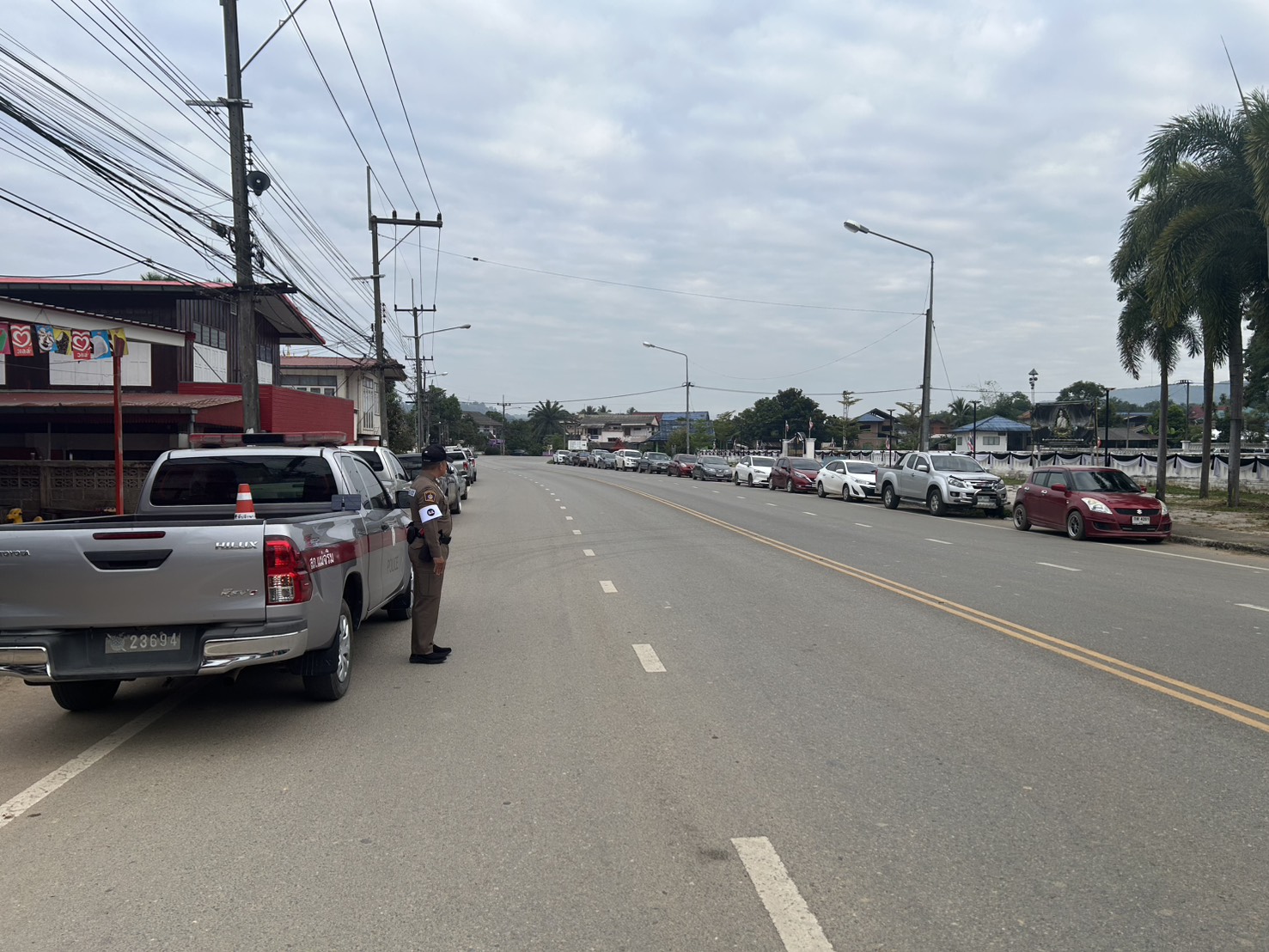 สภ.แม่จริม ภ.จว.น่าน วันนี้ ( 5 ธ.ค. 68 เวลา 07.30 น. ) โดยการอำนวยการของ พ.ต.อ.วสันติ์ หมั่นสลุง ผกก.สภ.แม่จริม, พ.ต.ท.ประทีป แปงเขียว รอง ผกก.ป.สภ.แม่จริม, พ.ต.ท.มนตรี ขอดเตชะ สวป.สภ.แม่จริม มอบหมายให้ ร.ต.อ.สมศักดิ์ สมทรง รอง สว.(ป.) สภ.แม่จริม, ร.ต.ท.กฤตญชญ์ อินตุ้ย รอง สว.(ป.) สภ.แม่จริม และ ส.ต.ท.ยุทธพิชัย ณ ลำปาง ผบ.หมู่ (ป.) สภ.แม่จริม จนท.จราจร อำนวยความสะดวกจราจร แก่ผู้เข้าร่วมกิจกรรมเนื่องในวันคล้ายวันเฉลิมพระชนมพรรษาพระบาทสมเด็จพระบรมชนกาธิเบศร มหาภูมิพลอดุลยเดชมหาราช บรมนาถบพิตร วันชาติ และวันพ่อแห่งชาติ ( พิธีเจริญพระพุทธมนต์ พิธีทำบุญตักบาตรถวายพระระราชกุศลและพิธีวางพานพุ่มดอกไม้ถวายราชสักการะ ) ใ ณ หอประชุมอำเภอแม่จริม จังหวัดน่าน