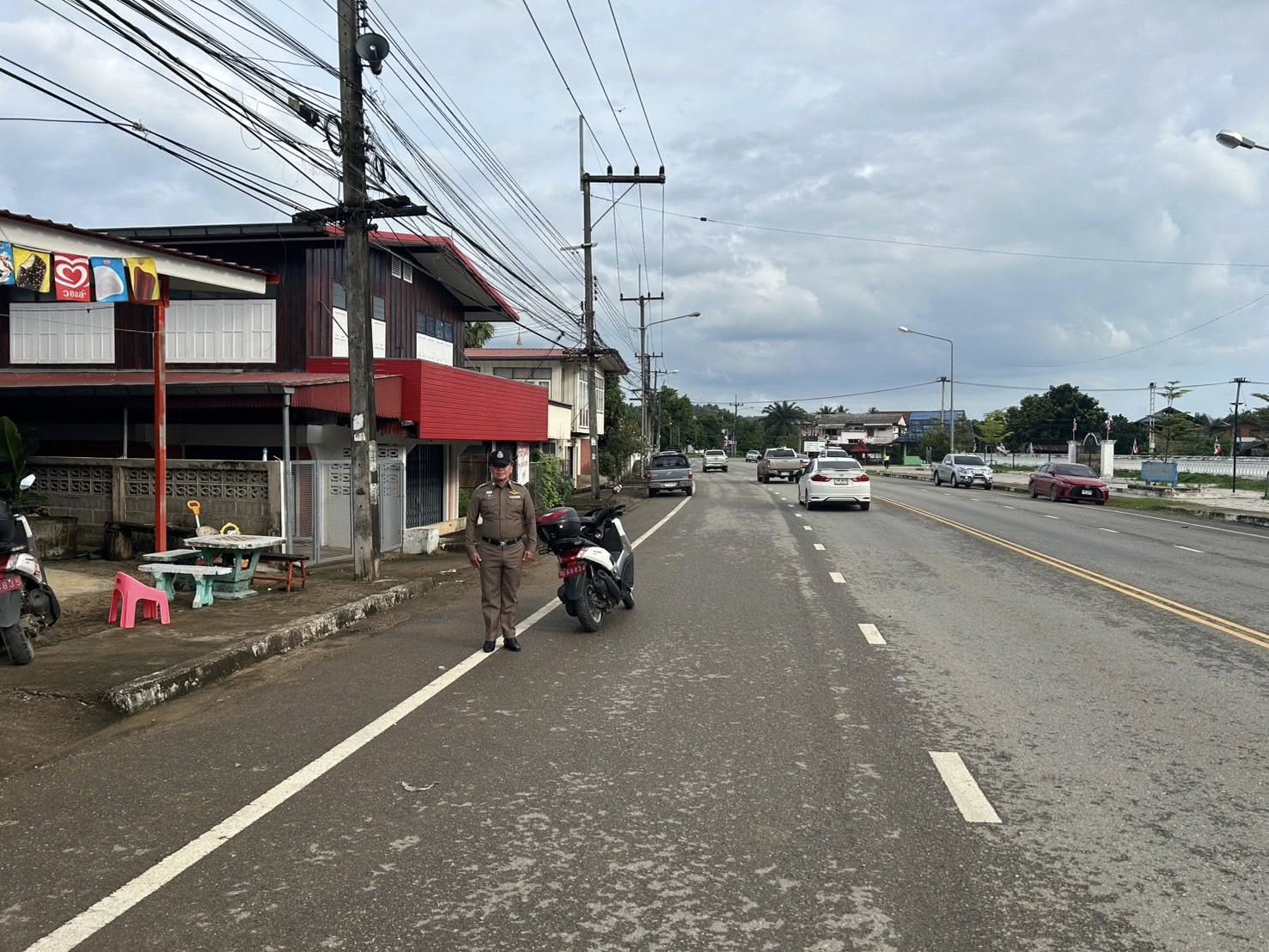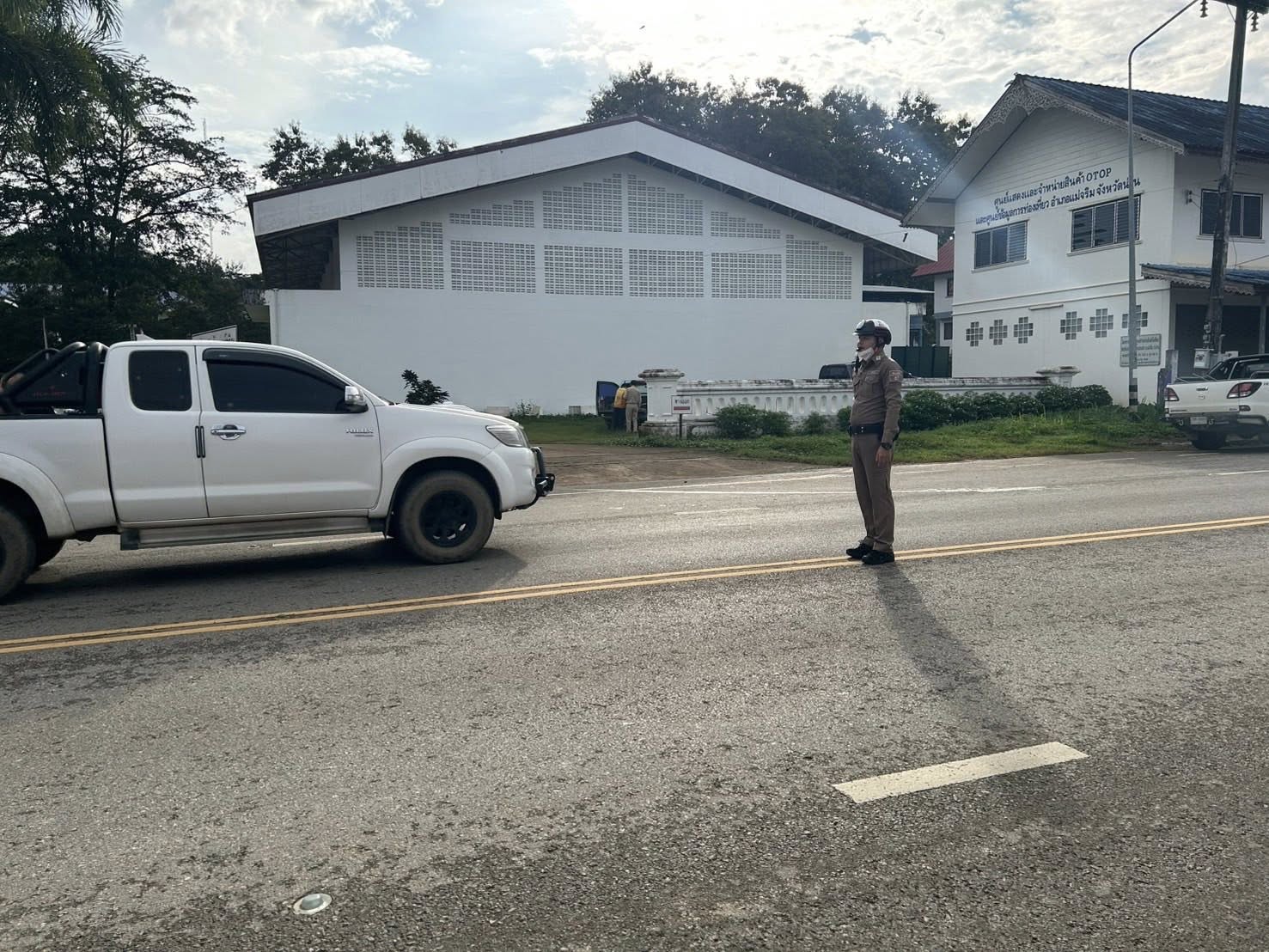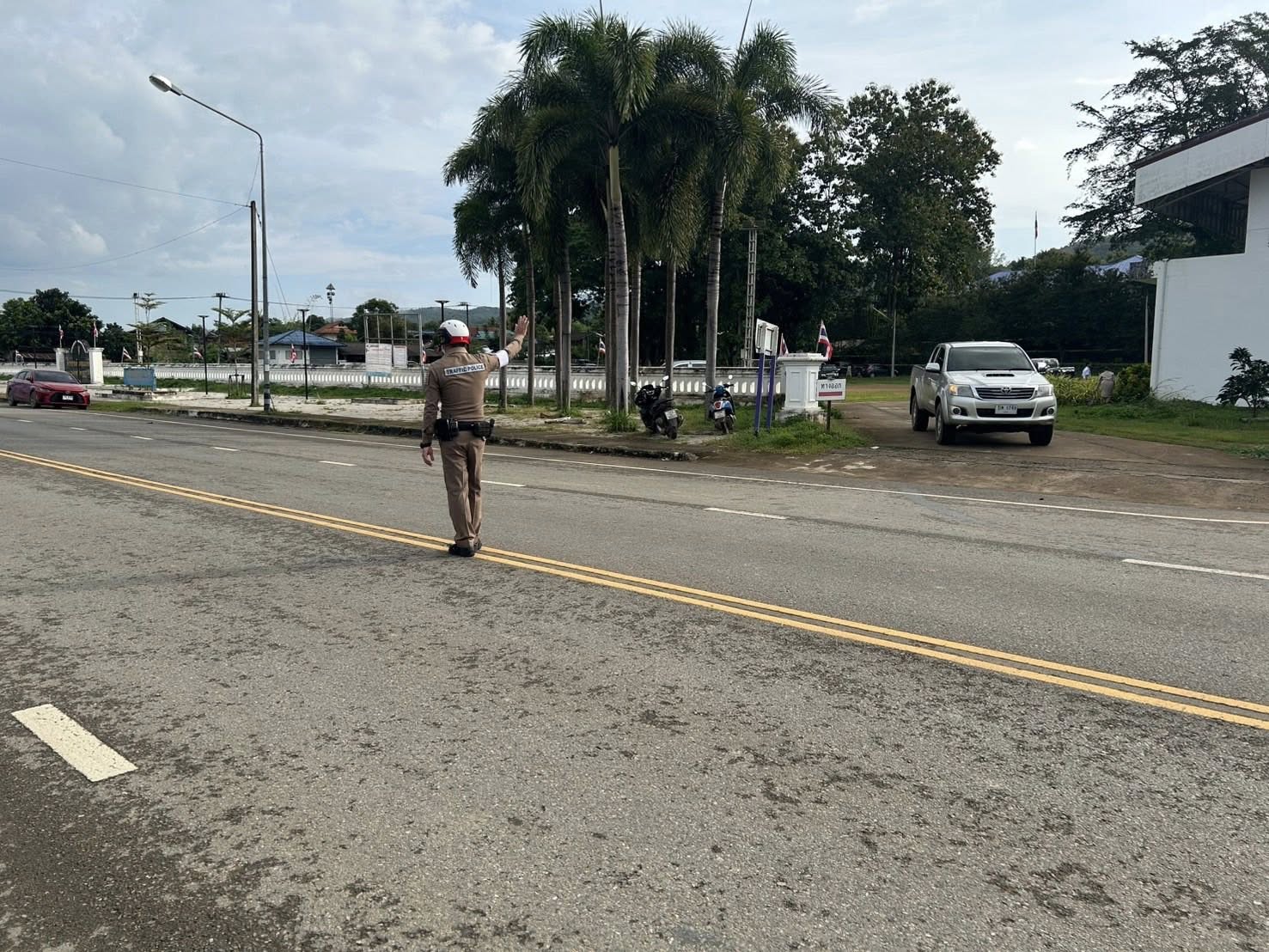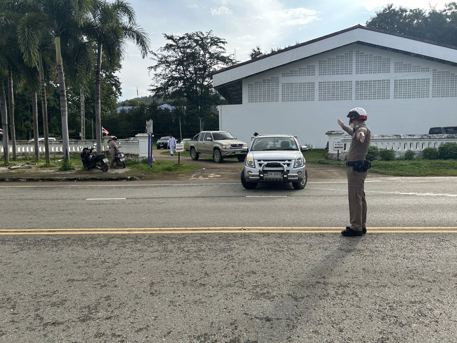 สภ.แม่จริม ภ.จว.น่าน วันนี้ (13 ต.ค. 2568 เวลา 07.30 น.) โดยการอำนวยการของ พ.ต.อ.วสันติ์ หมั่นสลุง ผกก.สภ.แม่จริม, พ.ต.ท.ธวัชชัย คำชื่น รอง ผกก.ป.สภ.นาหมื่น ช่วยราชการ สภ.แม่จริม, พ.ต.ท.มนตรี ขอดเตชะ สวป.สภ.แม่จริม มอบหมายให้ ร.ต.ท.กฤตญชญ์ อินตุ้ย รอง สว.(ป.) สภ.แม่จริม และ ส.ต.ท.ยุทธพิชัย ณ ลำปาง ผบ.หมู่ (ป.) สภ.แม่จริม จนท.จราจร อำนวยความสะดวกด้านการจราจร แก่ผู้เข้าร่วมกิจกรรมรัฐพิธีวางพวงมาลาและถวายราชสดุดี เนื่องในวันนวมินทรมหาราช 13 ตุลาคม 2568 ณ หอประชุมอำเภอแม่จริม จังหวัดน่าน