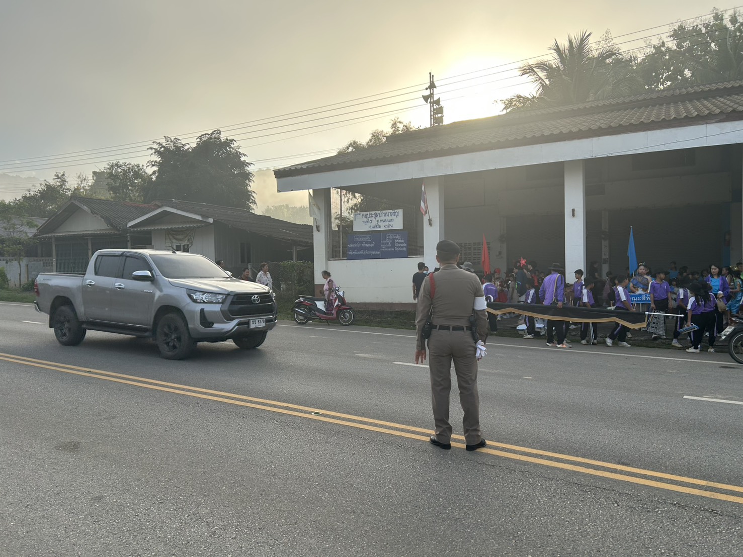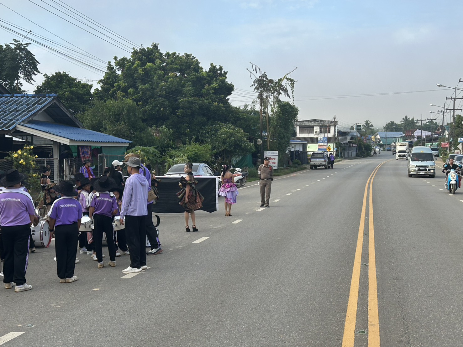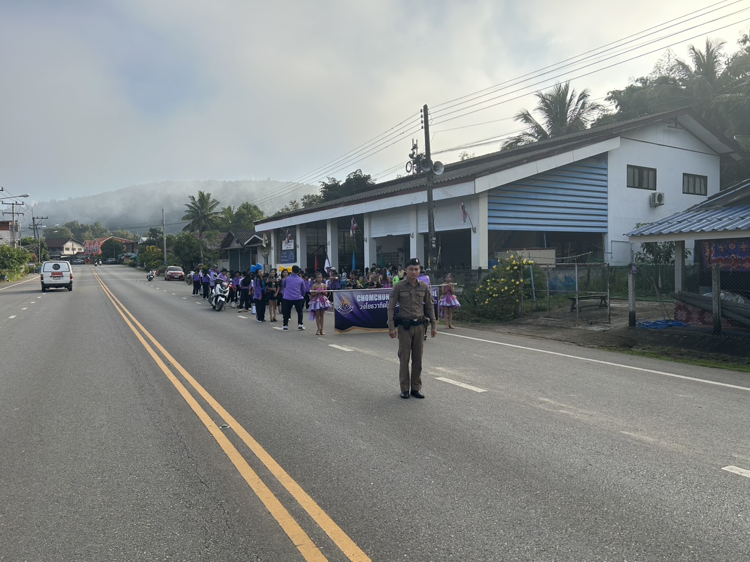 อำนวยความสะดวกด้านการจราจร ให้กับกิจกรรมเดินขบวนกีฬานักเรียน โรงเรียนชุมชนบ้านนาคา ต.หนองแดง อ.แม่จริม จ.น่าน