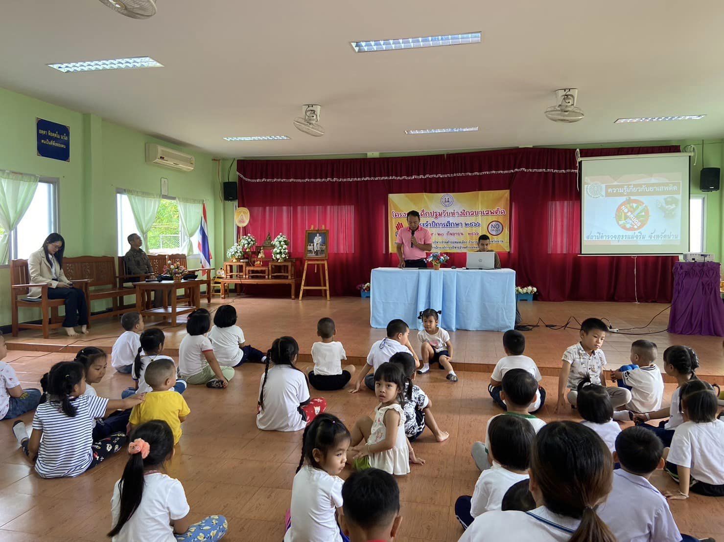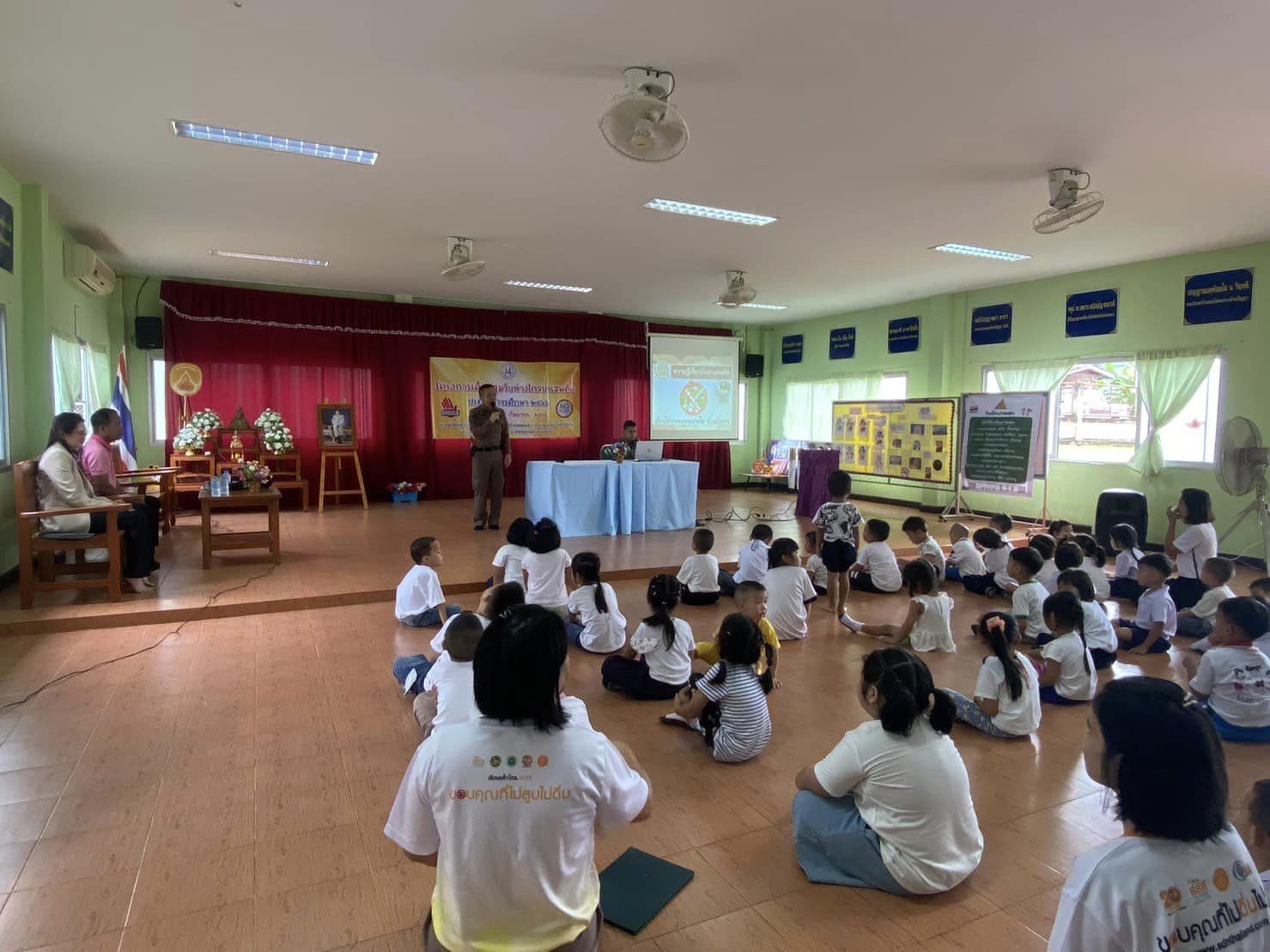 สภ.แม่จริม ภ.จว.น่าน วันนี้ (19 กันยายน 2566) เวลา 09.00 น. - 10.30 น. โดยการอำนวยการของ พ.ต.อ.ปรีชา เนตรประชา ผกก.สภ.แม่จริม มอบหมายให้ ร.ต.อ.วิชาญ ชินายศ รอง สวป.สภ.แม่จริม พร้อมด้วย ชุดปฏิบัติการมวลชนสัมพันธ์ สภ.แม่จริม เข้าร่วมกิจกรรมโครงการเด็กปฐมวัยห่างไกลยาเสพติด ประจำปีงบประมาณ 2566 ได้เป็นวิทยากรบรรยายให้ความรู้เกี่ยวกับโทษและพิษภัยยาเสพติดและเตือนภัยอาชญากรรมออนไลน์จากแก๊งคอลเซ็นเตอร์ ณ ศูนย์พัฒนาเด็กเล็กองค์การบริหารส่วนตำบลหมอเมือง