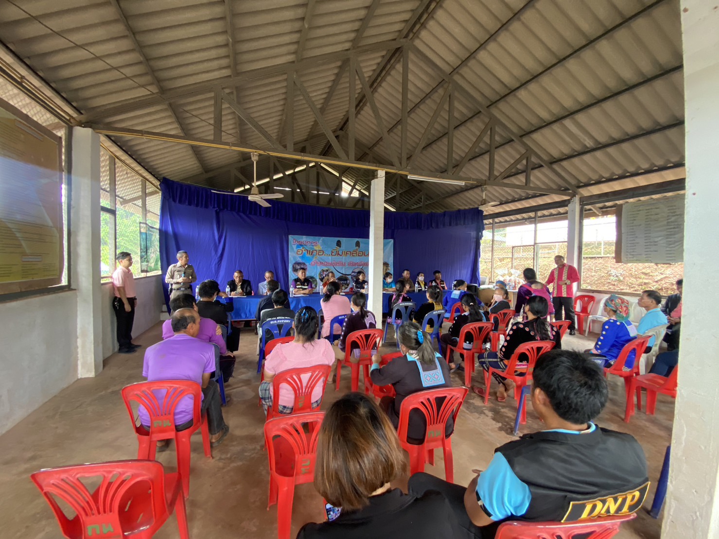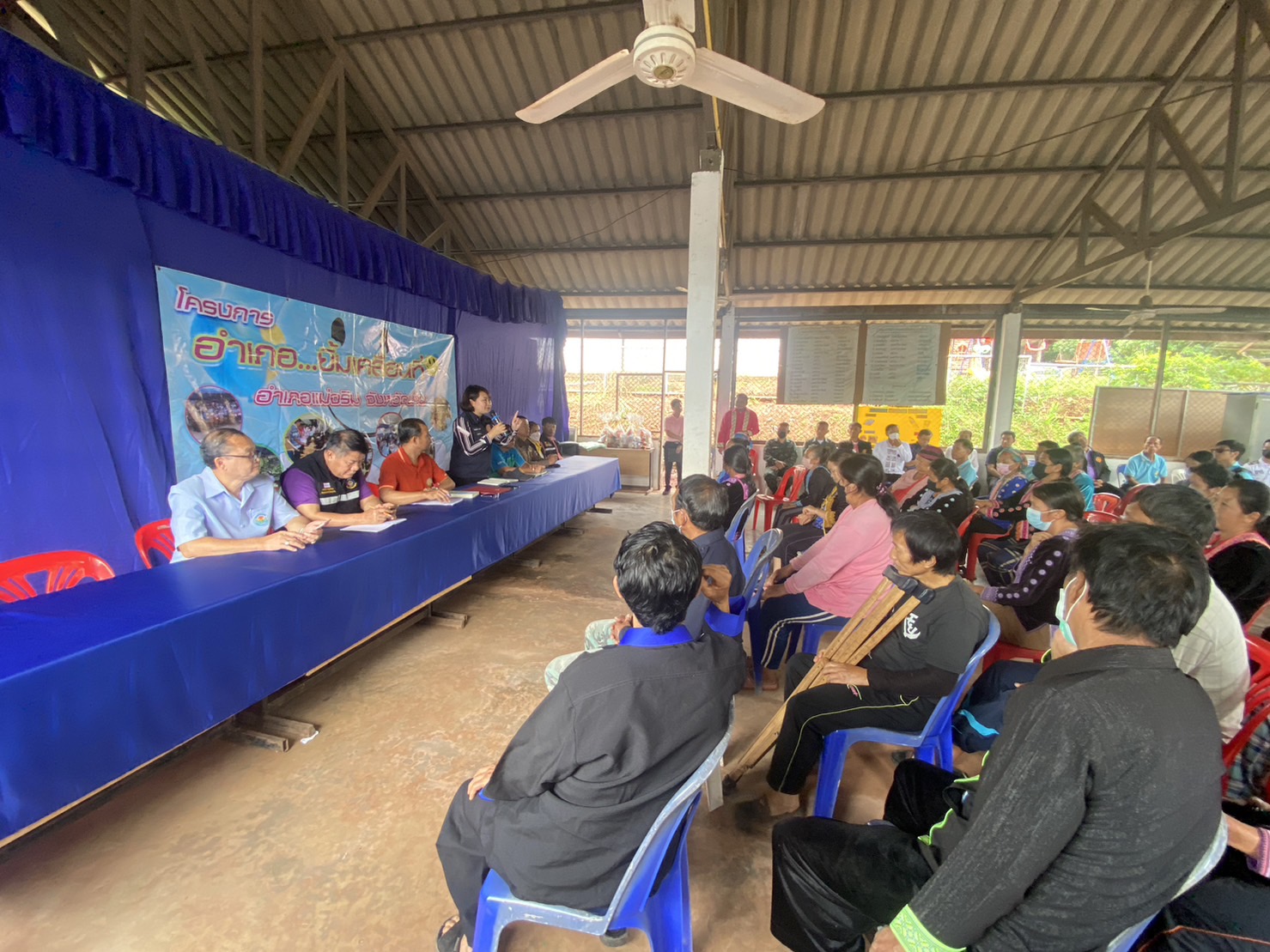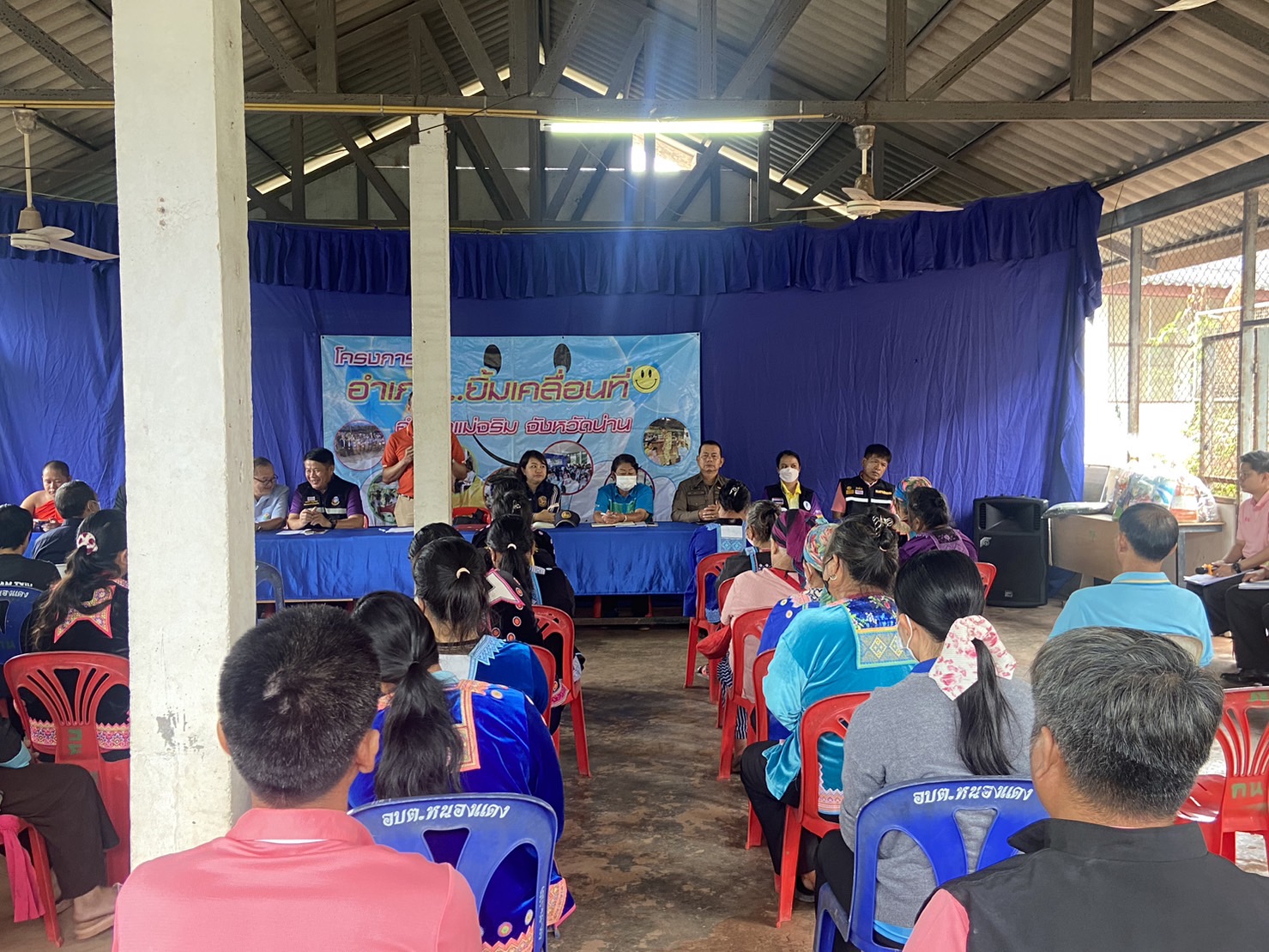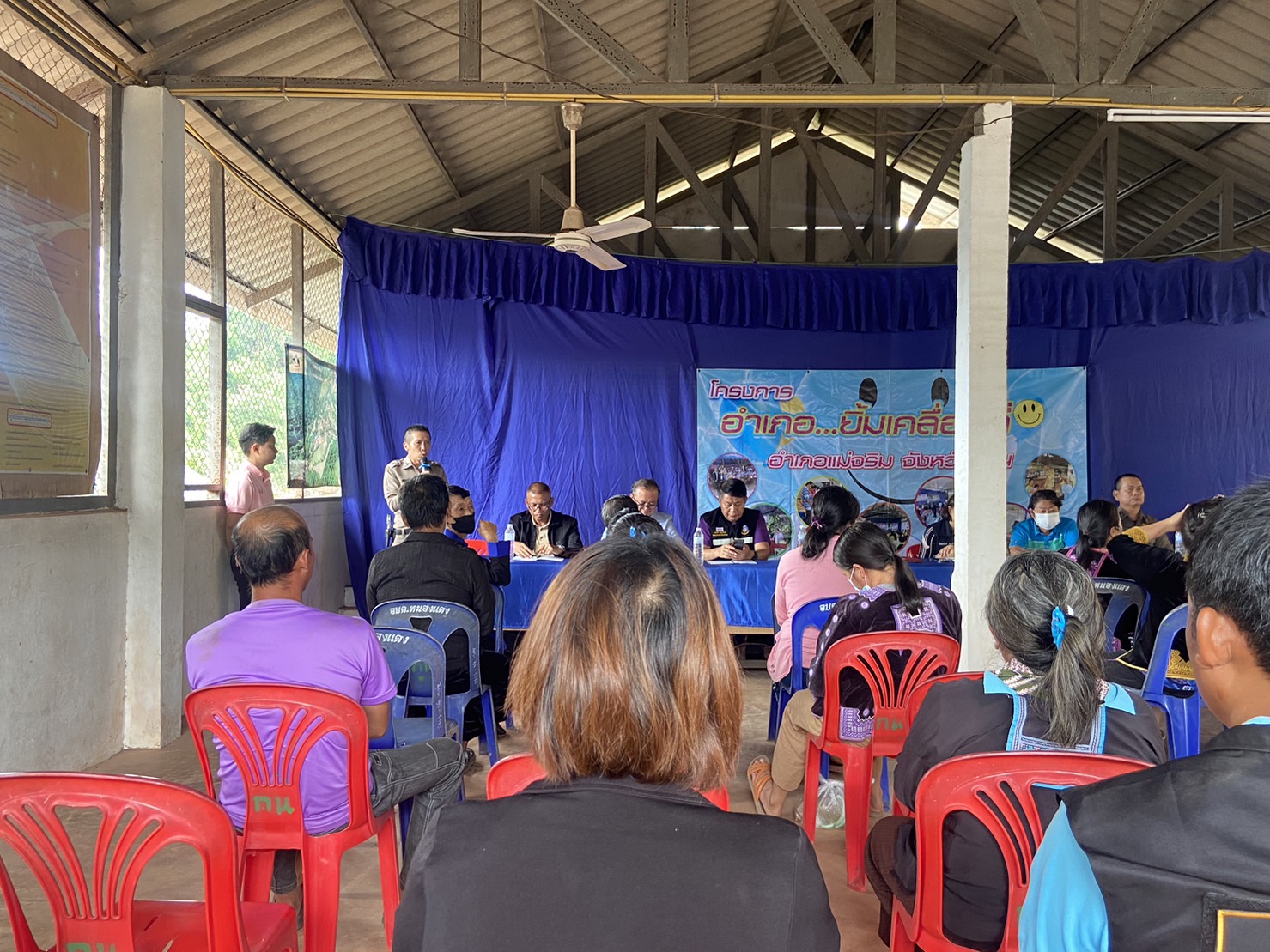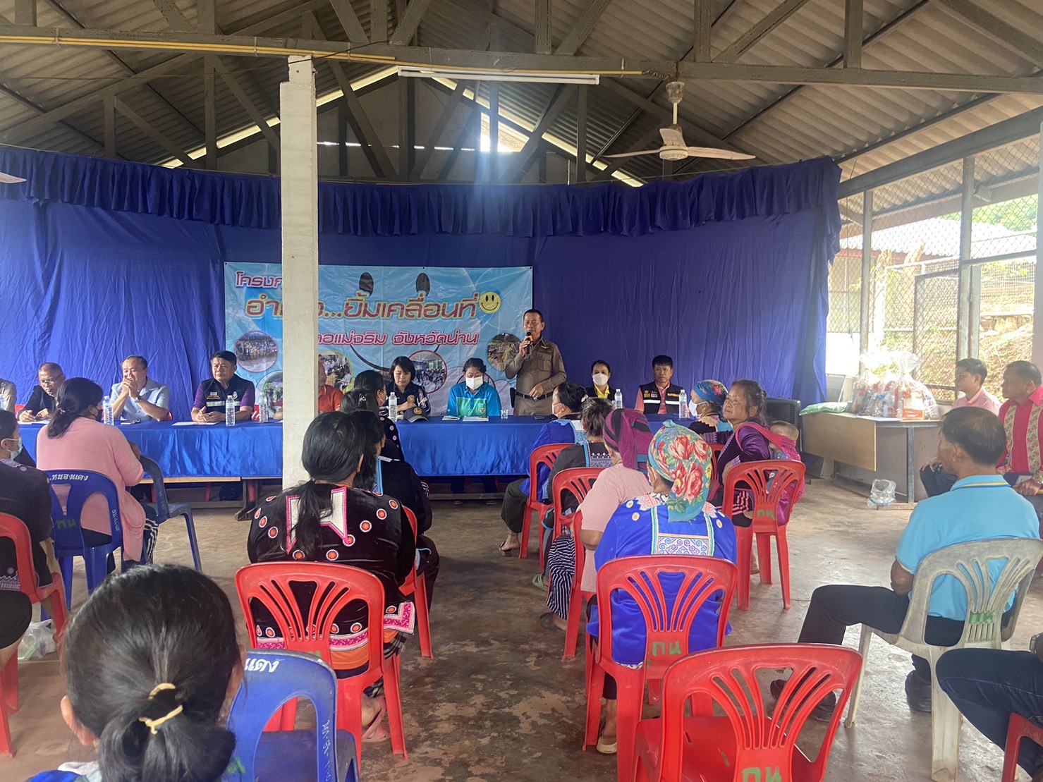 สภ.แม่จริม ภ.จว.น่าน วันนี้ (17 สิงหาคม 2566) เวลา 09:00 น. โดยการอำนวยการของ พ.ต.อ.ปรีชา เนตรประชา ผกก.สภ.แม่จริม มอบหมายให้ พ.ต.ท.อนันต์ พรมมา รอง.ผกก.ป.สภ.แม่จริม , ร.ต.อ.วิชาญ ชินายศ รอง สวป.สภ.แม่จริม พร้อมด้วยชุดปฏิบัติการมวลชนสัมพันธ์ เข้าร่วมกิจกรรมโครงการอำเภอ...ยิ้มเคลื่อนที่ และพบปะประชาชนในพื้นที่ ประจำปีงบประมาณ 2566 ณ หอประชุมประจำหมู่บ้าน บ้านกิ่วน้ำ ม.9 ต.หนองแดง อ.แม่จริม จ.น่าน โดยมี นางสาวพัทธนันท์ พิทาคำ นายอำเภอแม่จริม เป็นประธาน ฯ