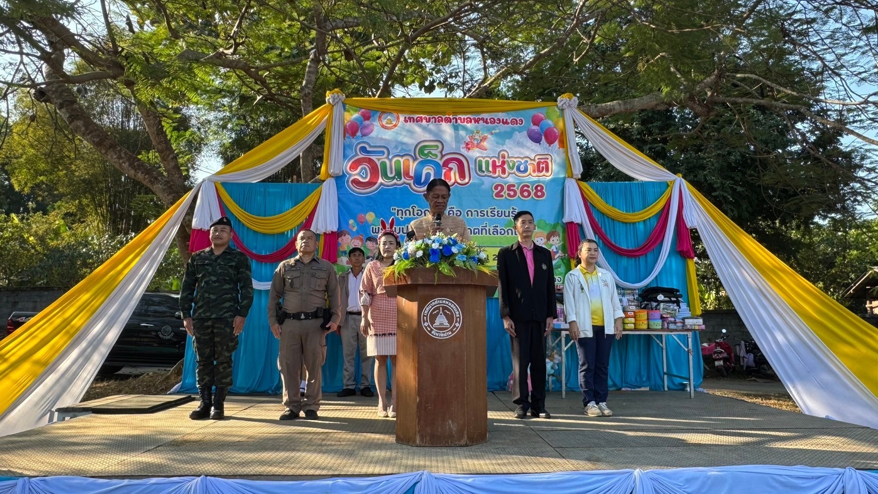 สภ.แม่จริม ภ.จว.น่าน วันนี้ (11 ม.ค.2567) เวลา 08.30 น. โดยการอำนวยการของ พ.ต.อ.วสันต์ หมั่นสลุง ผกก.สภ.แม่จริม, พ.ต.ท.วีฬเวชน์ ร้านชิตวงศ์ รอง ผกก.ป.สภ.แม่จริม, พ.ต.ท.มนตรี ขอดเตชะ สวป.สภ.แม่จริม มอบหมายให้ ร.ต.อ.พงศ์พันธุ์ มีสา รอง สวป.สภ.แม่จริม พร้อมด้วยชุดชุมชนและมวลชนสัมพัน์ เข้าร่วมกิจกรรมการให้ความรู้และพัฒนาทักษะให้กับเด็ก เพื่อให้เด็กได้แสดงออกทางความคิดสร้างสรรค์ อาทิ การแสดงบนเวที การตอบคำถาม เกมส์ ฯลฯ และรักษาความสงบเรียบร้อย ความปลอดภัยและอำนวยความสะดวก ให้กับเด็ก เยาวชน และผู้เข้าร่วมกิจกรรม ในการจัดกิจกกรมวันเด็กแห่งชาติ ประจำปี พ.ศ.2568 ณ ศูนย์เด็กเล็กเทศบาลตำบลหนองแดง บ้านหนองแดง ต.หนองแดง อ.แม่จริม จว.น่าน