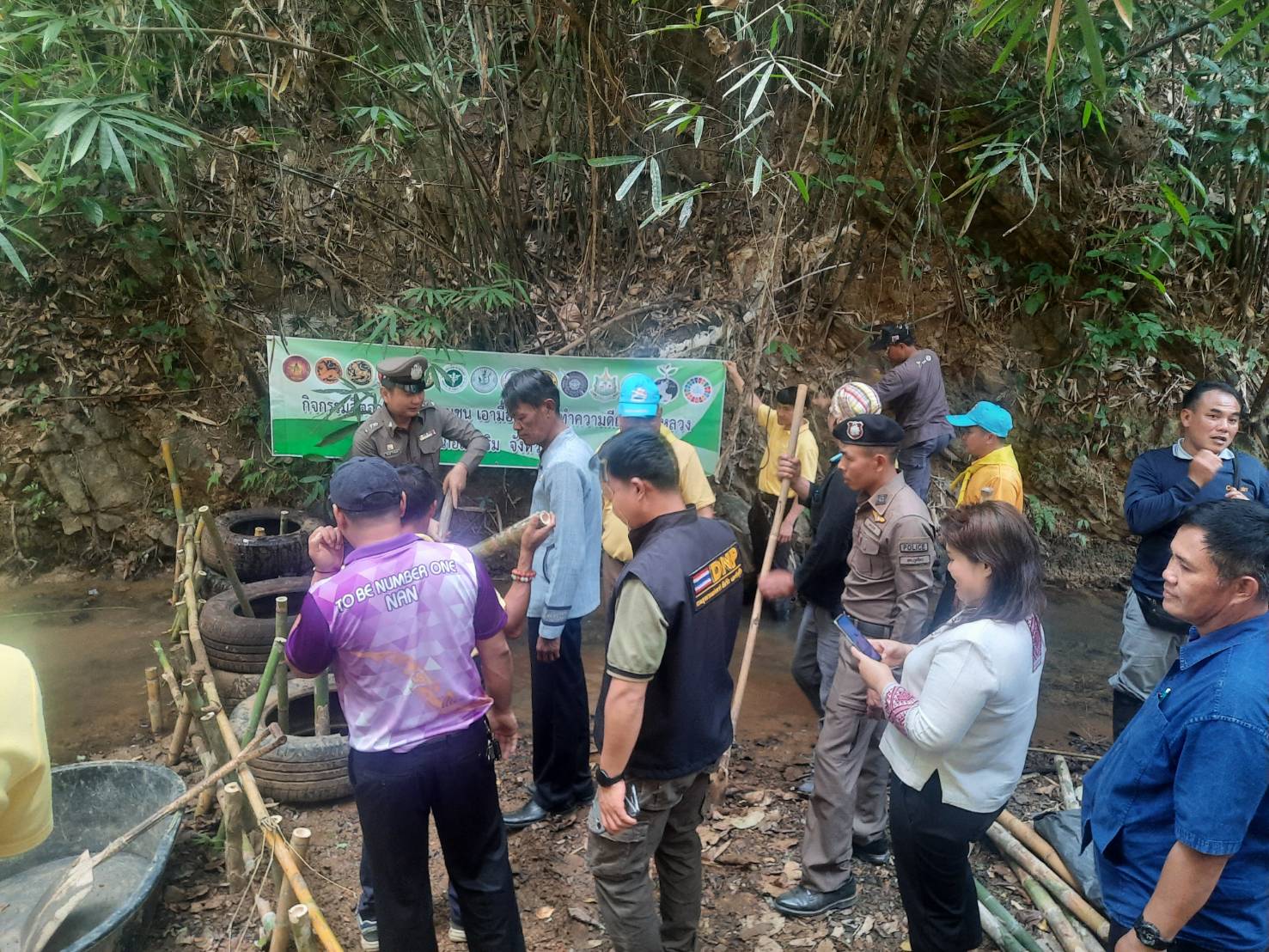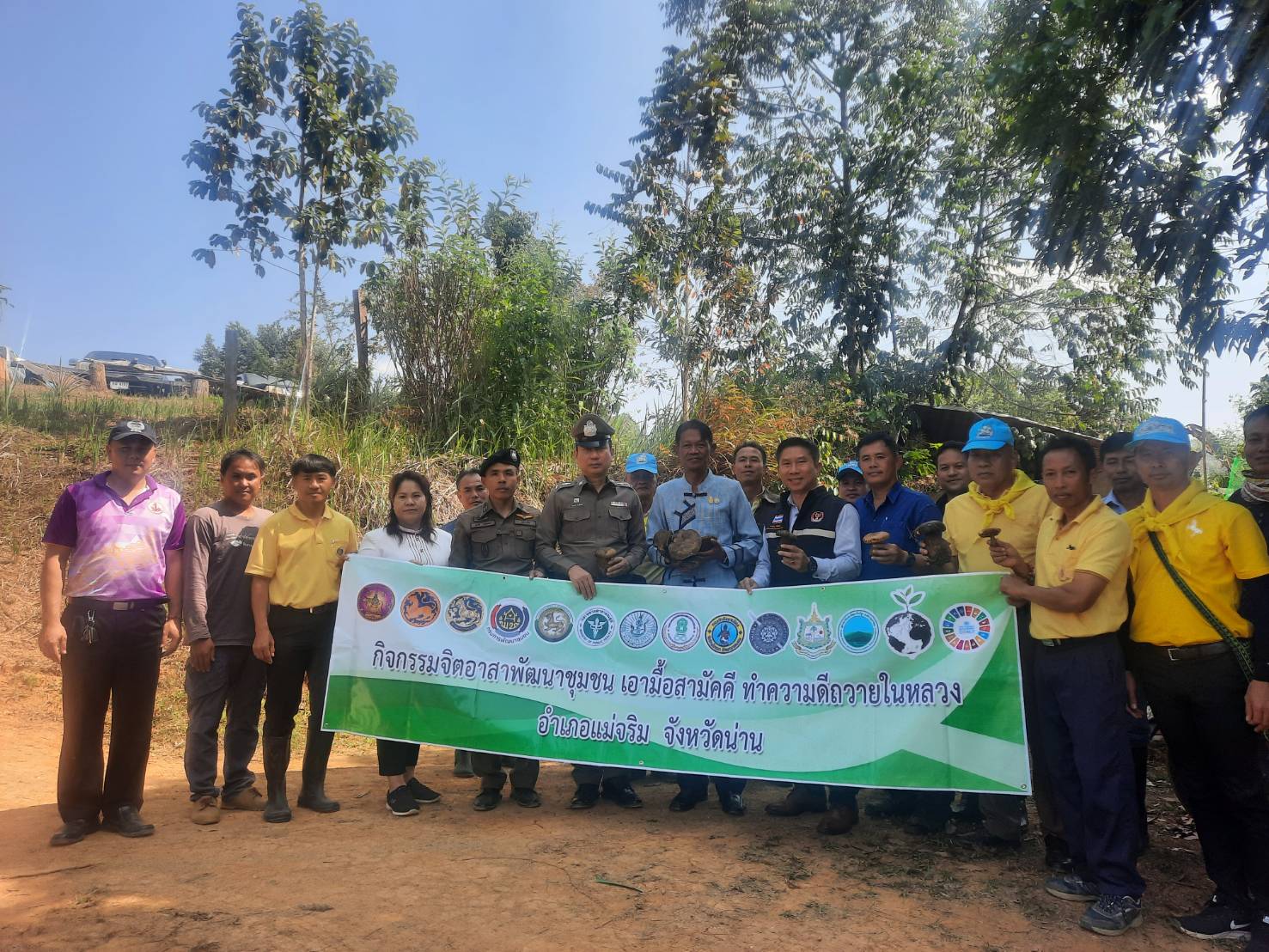การปฏิบัติด้านการส่งเสริมพัฒนาคุณภาพชีวิตของประชาชนในท้องถิ่น ในการมีส่วนร่วมของ กต.ตร.สภ.แม่จริม สภ.แม่จริม ภ.จว.น่าน วันนี้ (13 ก.พ.2567) เวลา 13.30 น. โดยการอำนวยการของ พ.ต.อ.วสันติ์ หมั่นสลุง ผกก.สภ.แม่จริม, นายสามารถ วงค์เลียบ นายกเทศมนตรีตำบลหนองแดง ประธาน กต.ตร.สภ.แม่จริม มอบหมายให้ พ.ต.ท.วีฬเวชน์ ร้านชิตวงศ์ รอง ผกก.ป.สภ.แม่จริม , พ.ต.ท.มนตรี ขอดเตชะ สวป.สภ.แม่จริม พร้อมด้วย ร.ต.อ.ชิดชัย ปานต๊ะระษี รอง สวป.สภ.แม่จริม (ร้อยเวร 20) พร้อมด้วยข้าราชการตำรวจสายงานอำนวยการ (ชุดจิตอาสา) สภ.แม่จริม และคณะกรรมการ กต.ตร.สภ.แม่จริม เข้าร่วมกิจกรรม "เอามื้อสามัคคี ทำความดี ถวายเป็นพระราชกุศล" การดำเนินโครงการขยายผลการพัฒนาพื้นที่ต้นแบบการพัฒนาคุณภาพชีวิตตามหลักทฤษฏีใหม่ ประยุกต์สู่ "โคก หนอง นา" เฉลิมพระเกียรติพระบาทสมเด็จพระเจ้าอยู่หัว และเพื่อขยายผลการพัฒนาคุณภาพชีวิตของประชาชน ด้วยการบูรณาการขับเคลื่อนการน้อมนำหลักปรัชญาของเศรษฐกิจพอเพียงและหลักทฤษฏีใหม่สู่การปฏิบัติจนเป็นวิถีชีวิต สอดคล้องกับสภาพพื้นที่และภูมิสังคม ณ ศูนย์การเรียนรู้ โคก หนอง นา วิถีพุทธอารยเกษตร แปลงของนายธนทรัพย์ ชัยพรวัตน์ บ้านฝาย หมู่ที่ 2 ต.แม่จริม อ.แม่จริม จ.น่าน กิจกรรมเอามื้อฯ ได้แก่ การทำฝายชะลอน้ำ การปลูกผักสวนครัว การทำน้ำยาเอนกประสงค์