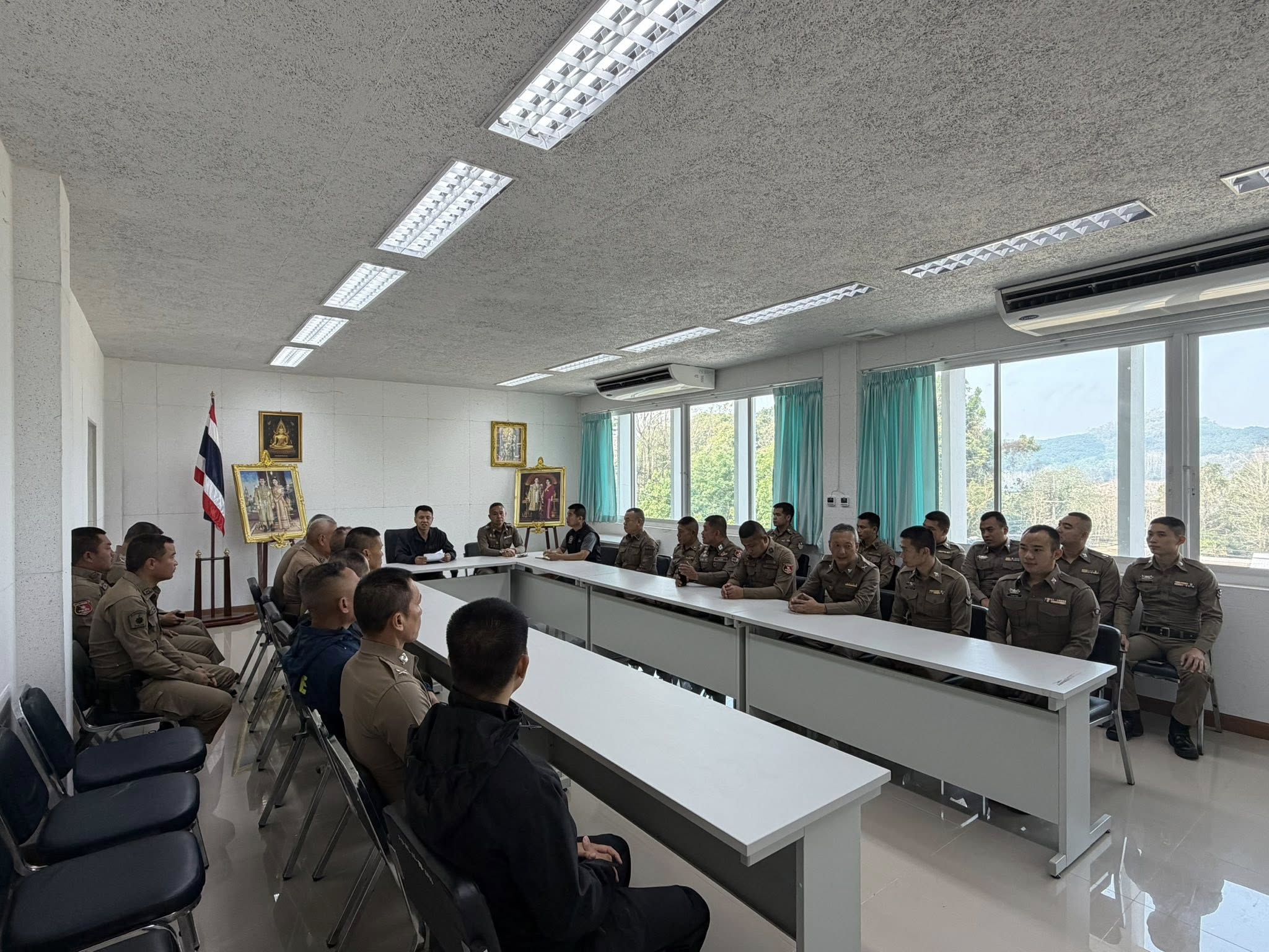 สภ.แม่จริม ภ.จว.น่าน วันนี้ ( 25 มี.ค.69 เวลา 10.00 น. ) โดยการอำนวยการของ พ.ต.อ.วสันติ์ หมั่นสลุงผกก.สภ.แม่จริม มอบหมายให้ พ.ต.ท.สุรศักดิ์ มีเสาเรือน รอง ผกก.สส.สภ.แม่จริม, พ.ต.ท.ประทีป แปงเขียว รอง ผกก.ป.สภ.แม่จริม, พ.ต.ท.เมธาสิทธ์ พันธ์อิทธิโรจ รอง ผกก.(สอบสวน) สภ.แม่จริม, พ.ต.ท.อวิรุทธิ์ ยอดยา สว.สส.สภ.แม่จริม, พ.ต.ท.อดุลย์ศักดิ์ ทานะ สว.อก.สภ.แม่จริม เข้าร่วมประชุมชี้แจงข้อราชการ ประจำเดือน มีนาคม พ.ศ.2569 ให้แก่ข้าราชการตำรวจในสังกัด ทุกสายงาน